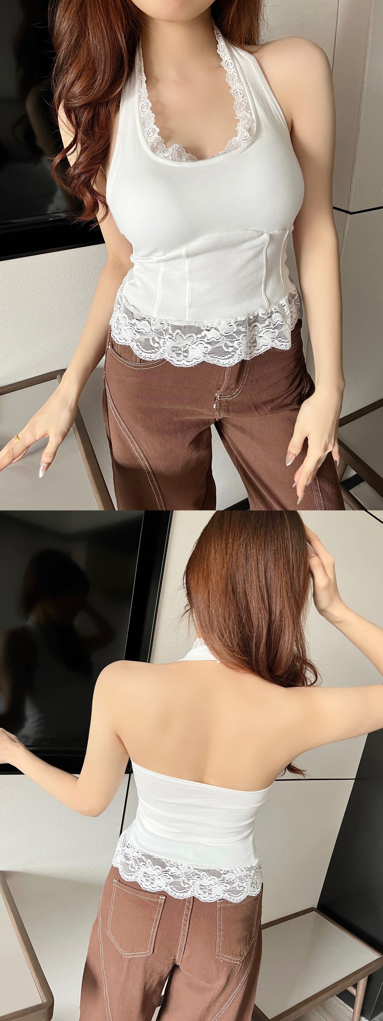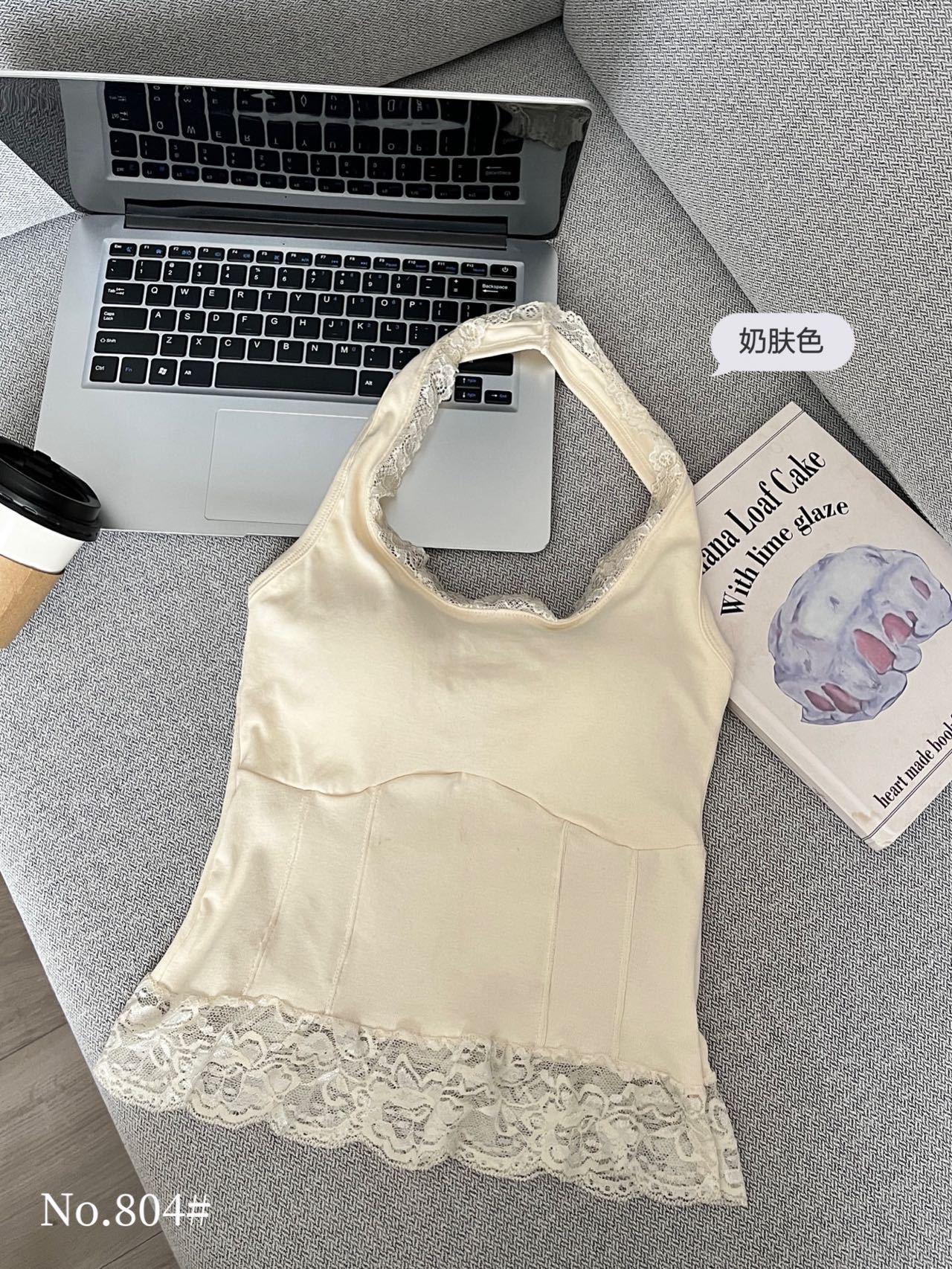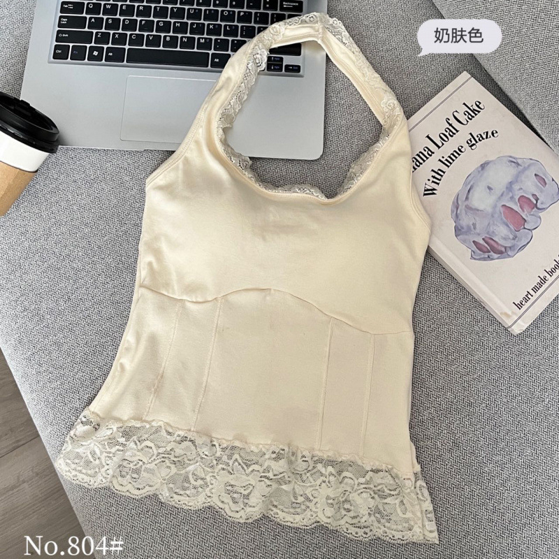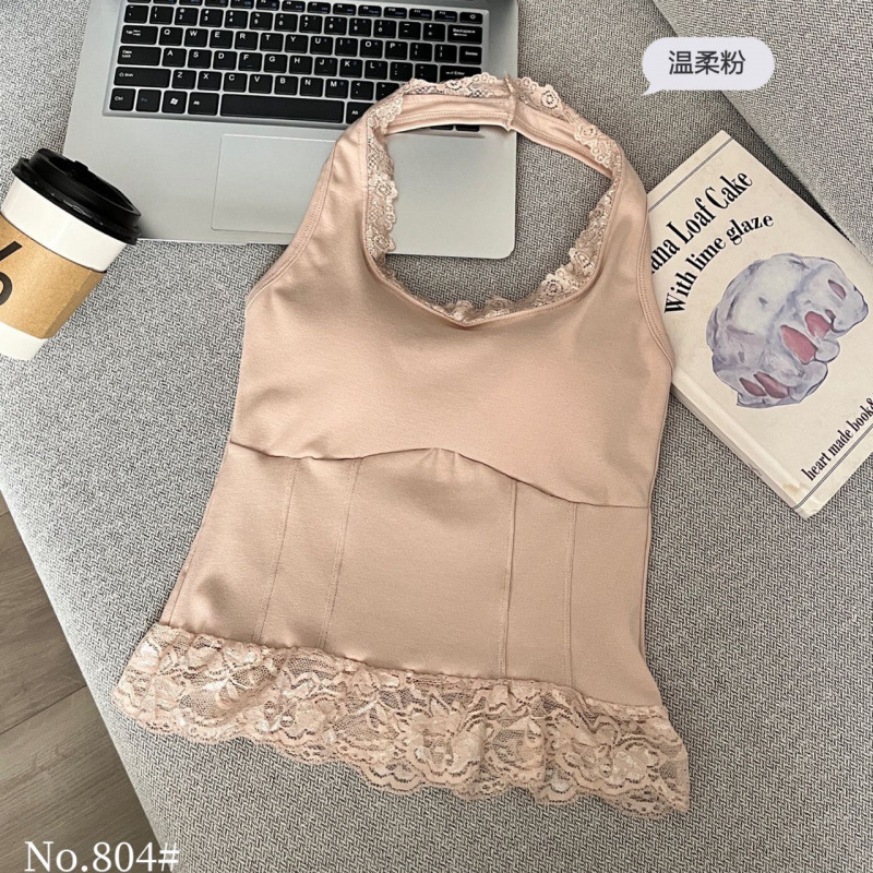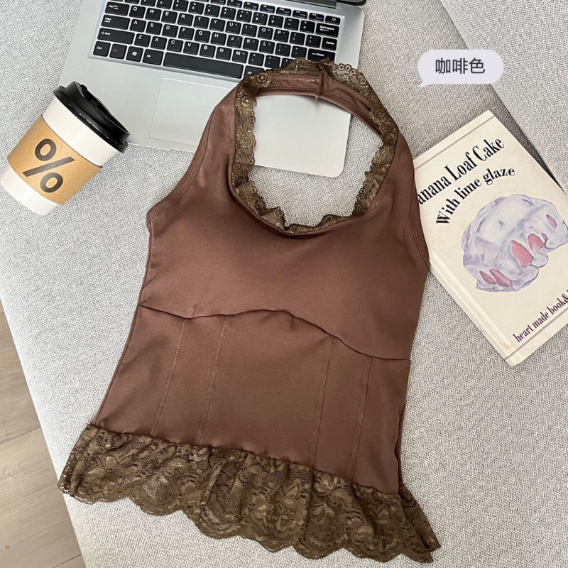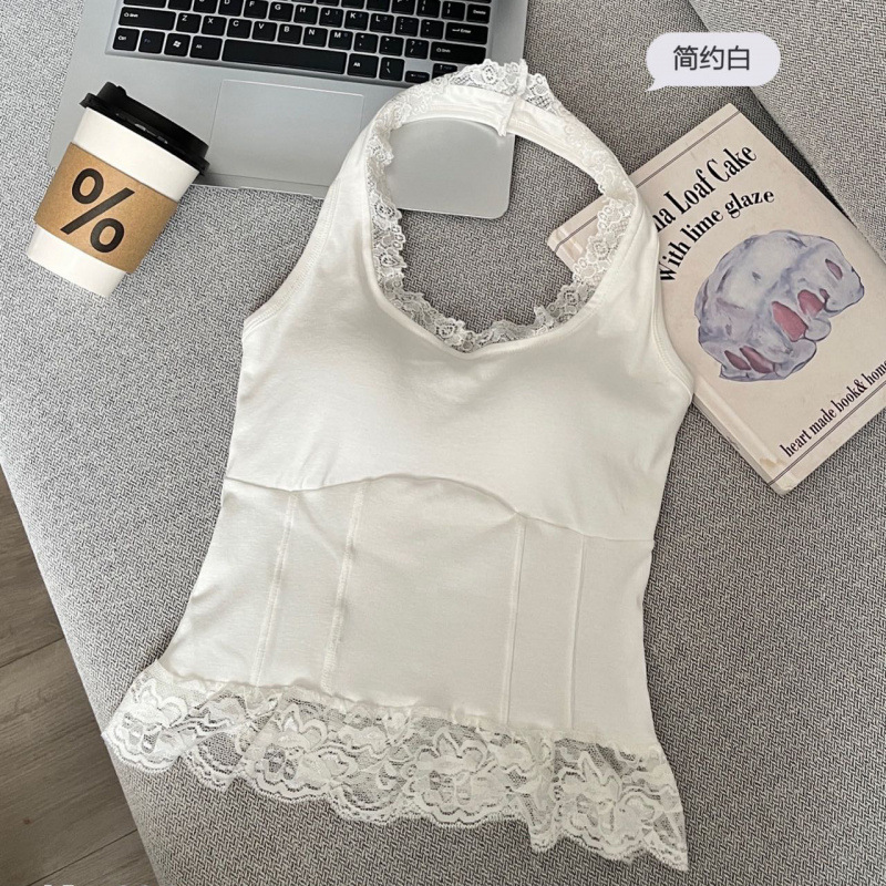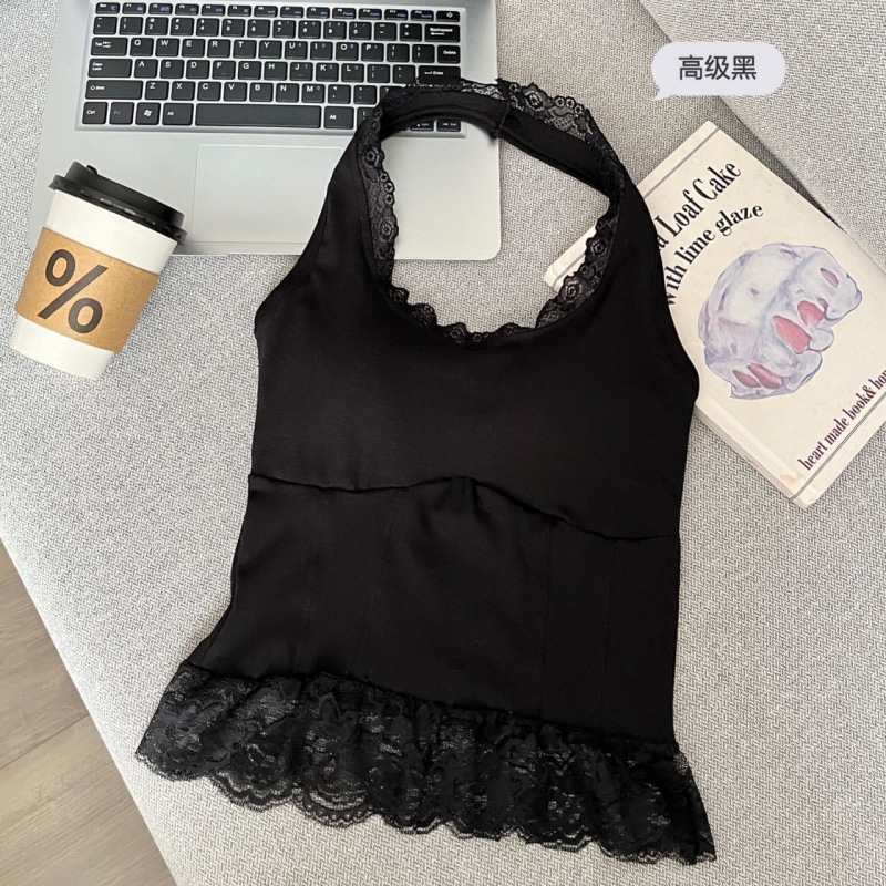 레이스 레이스 레이스 스커트 매달려 Halter Vest 여성용 이른 봄 가슴 패드 내부와 외부 착용 순수 스위트 스파이스 소녀 탑