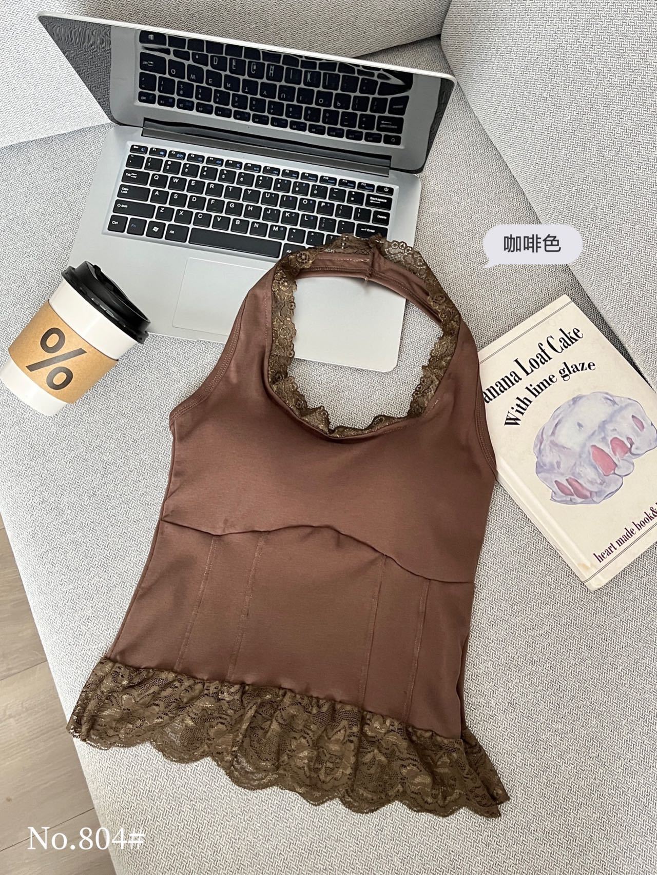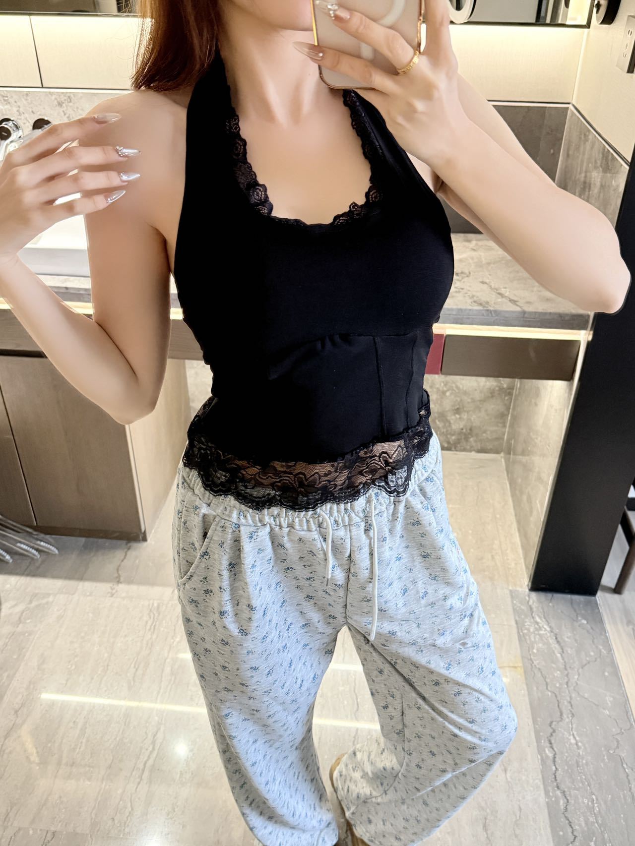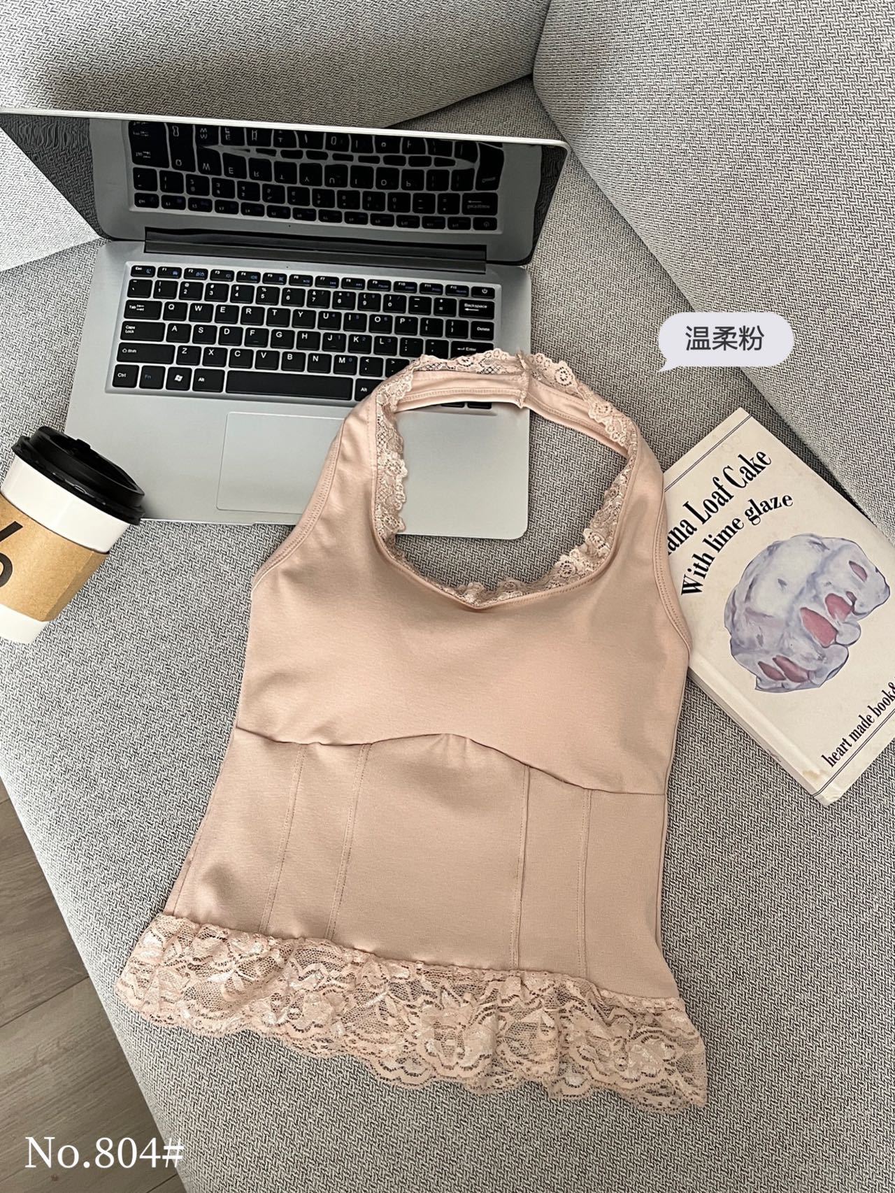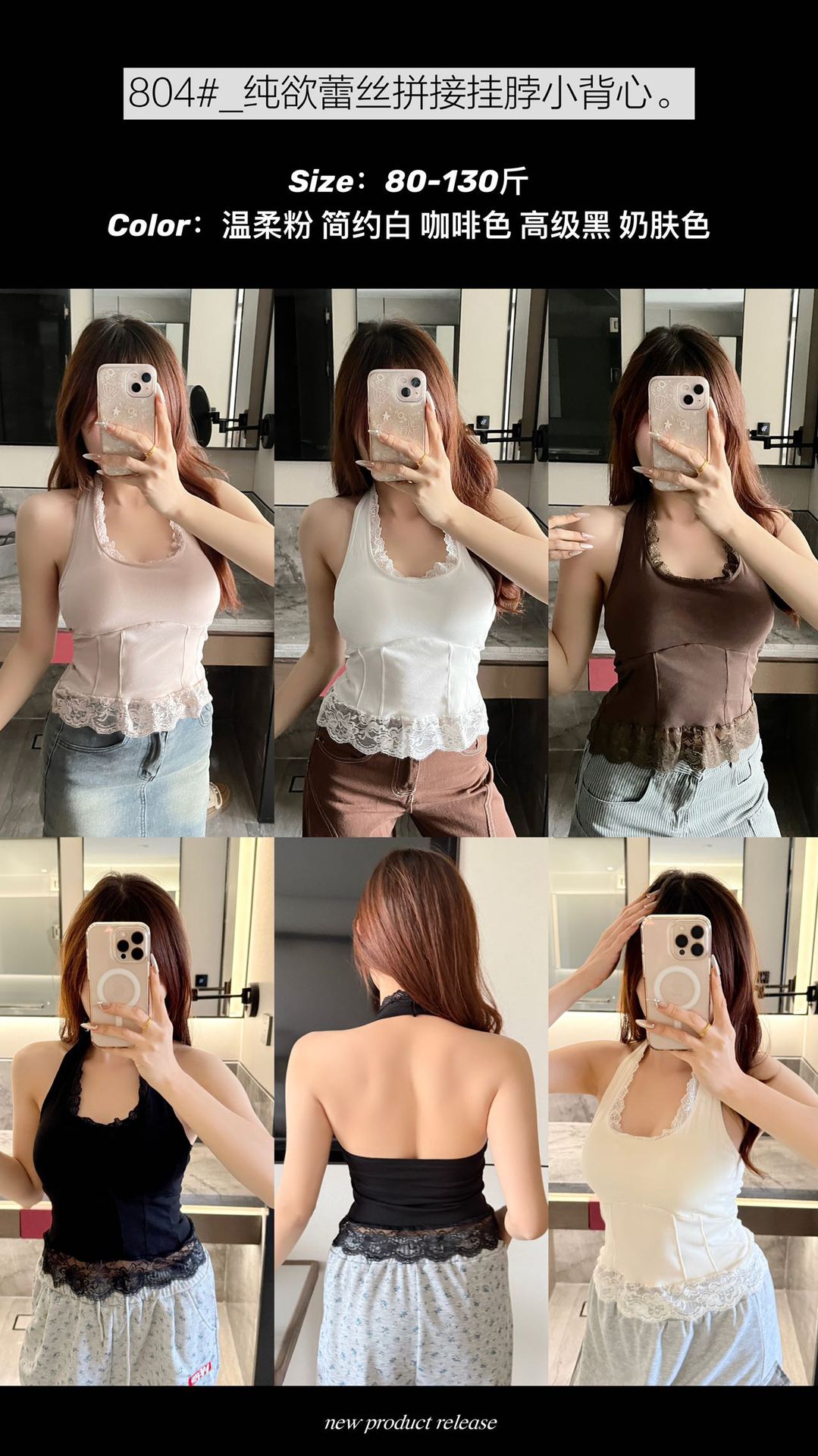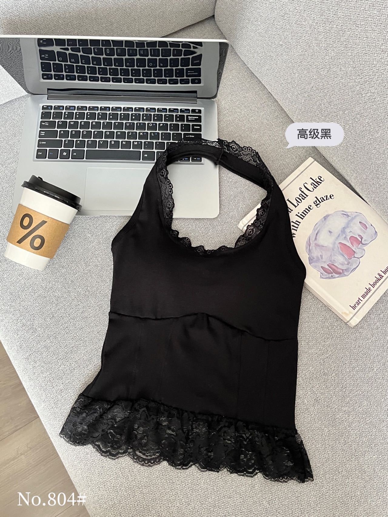 레이스 레이스 레이스 스커트 매달려 Halter Vest 여성용 이른 봄 가슴 패드 내부와 외부 착용 순수 스위트 스파이스 소녀 탑