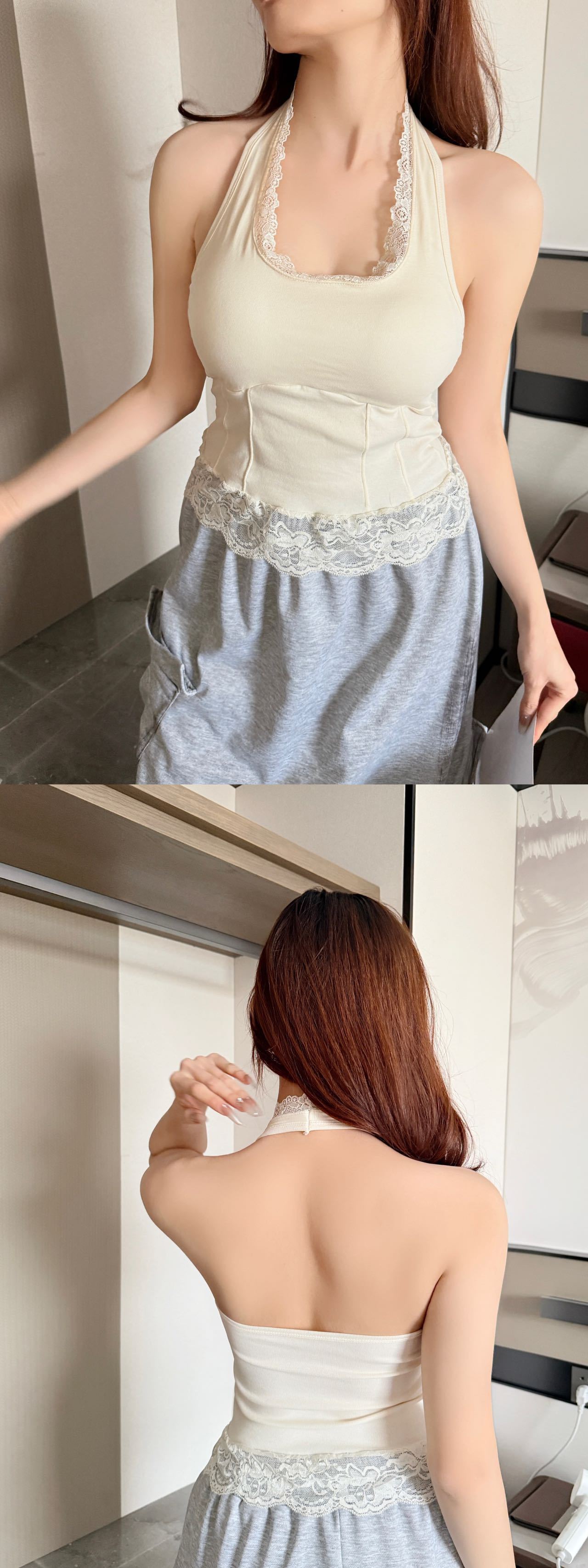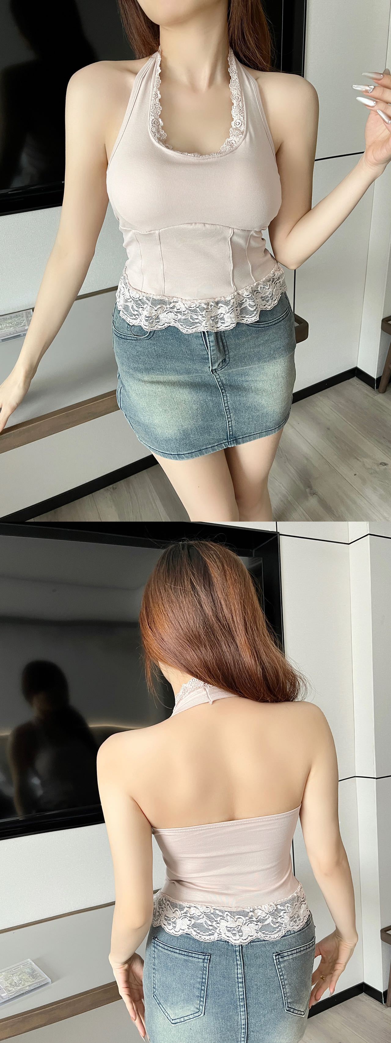 레이스 레이스 레이스 스커트 매달려 Halter Vest 여성용 이른 봄 가슴 패드 내부와 외부 착용 순수 스위트 스파이스 소녀 탑스토어 가기