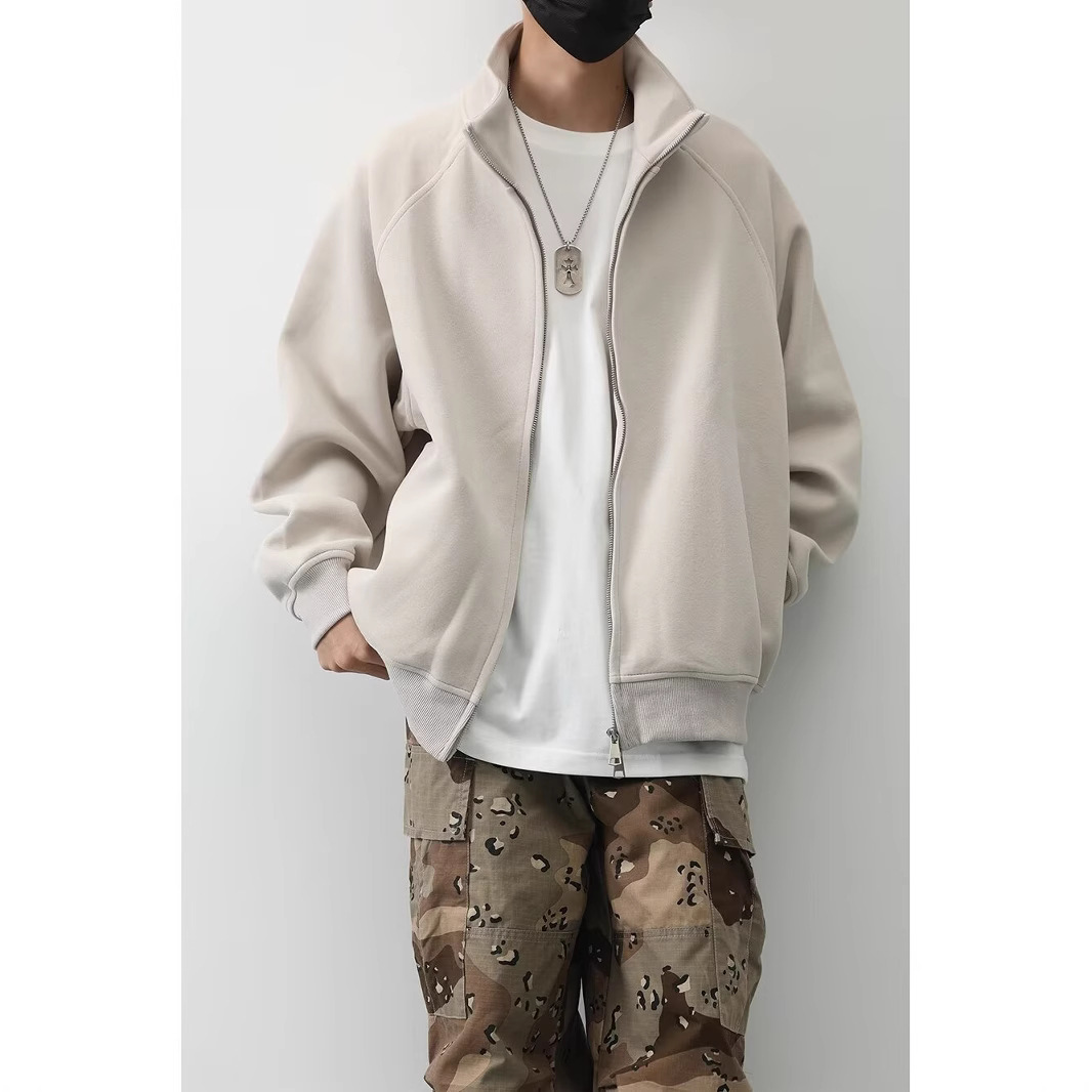 일본 스타일 복고풍 단색 기본 스타일 수직 칼라 스포츠 재킷 남성 미국 스타일 느슨한 캐주얼 유행 브랜드 커플 카디건 스웨터