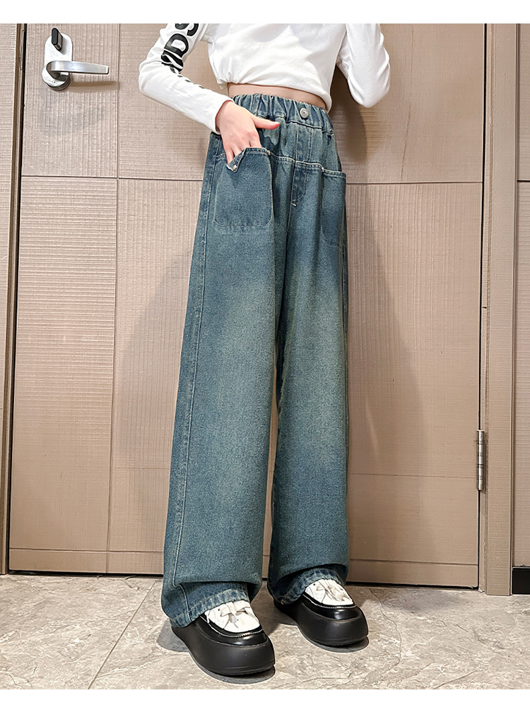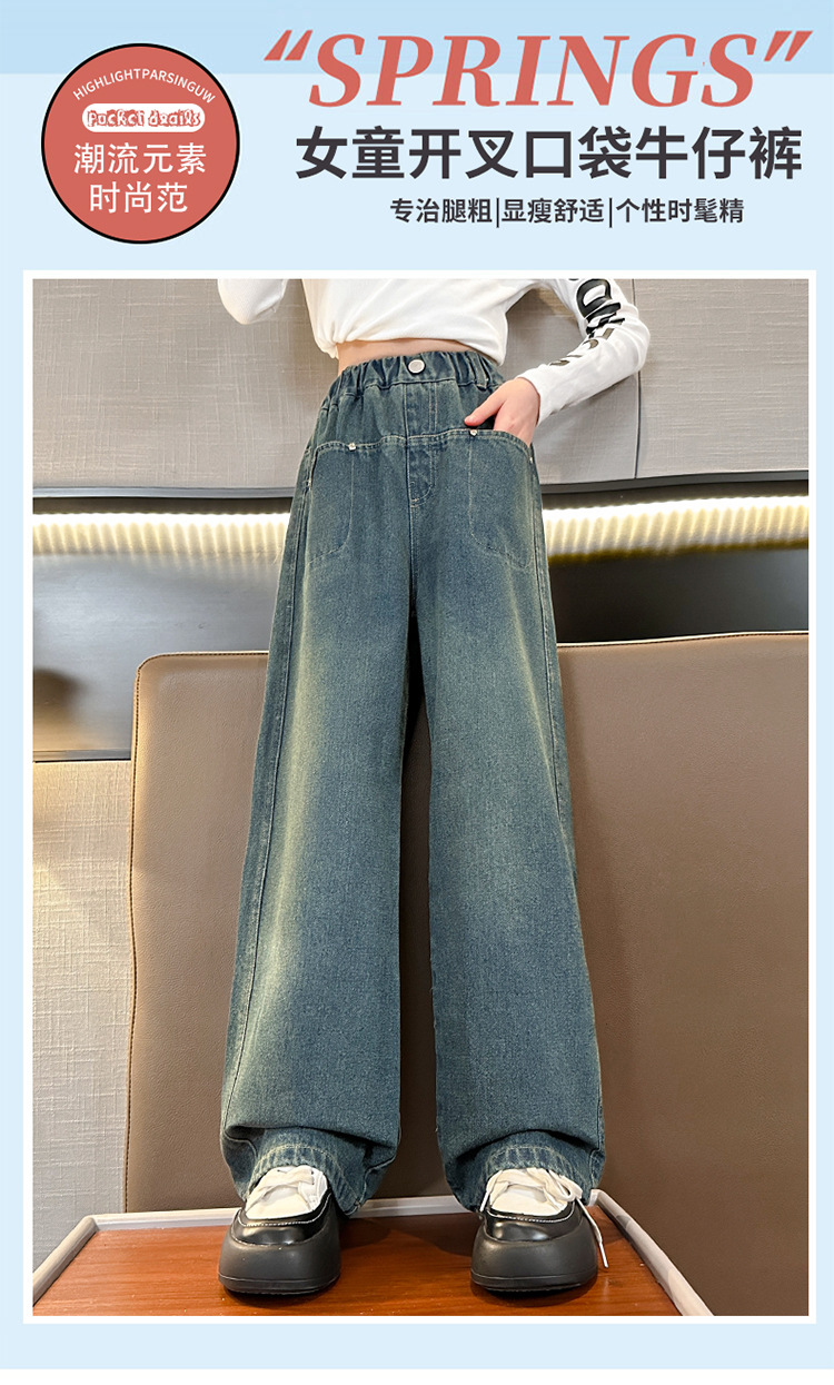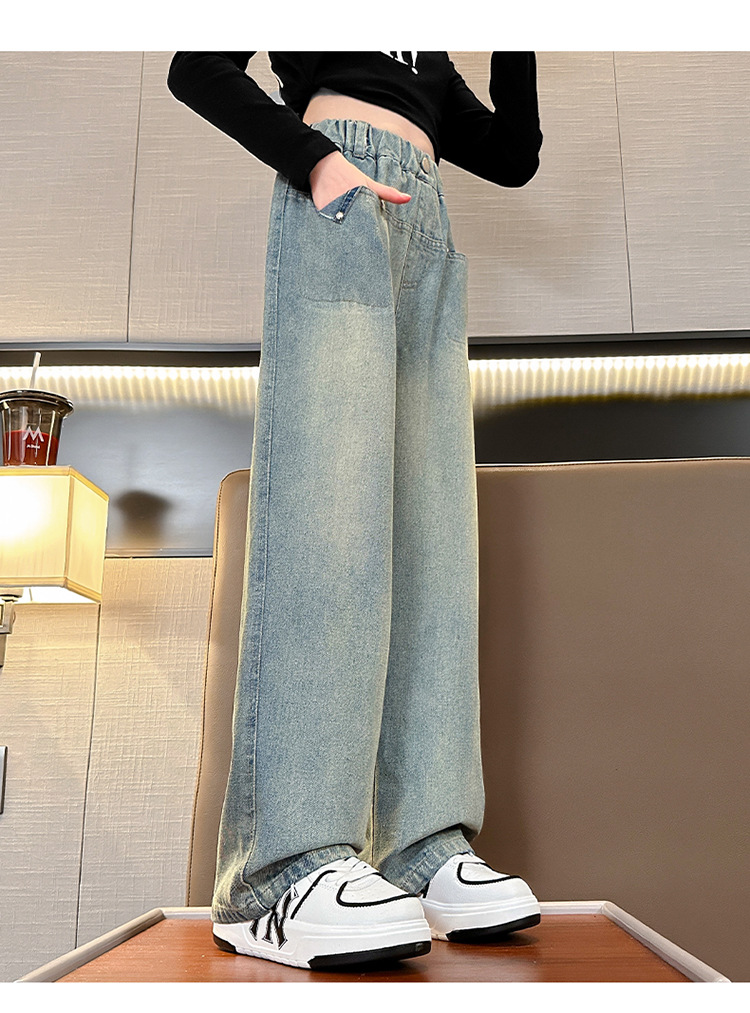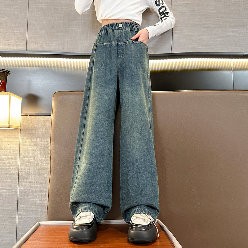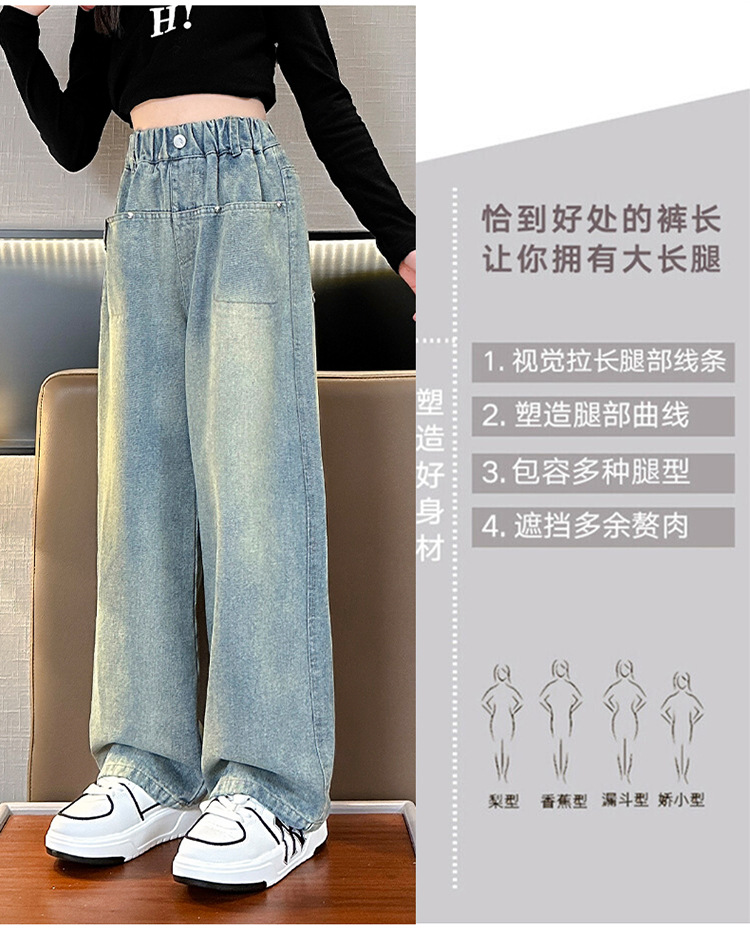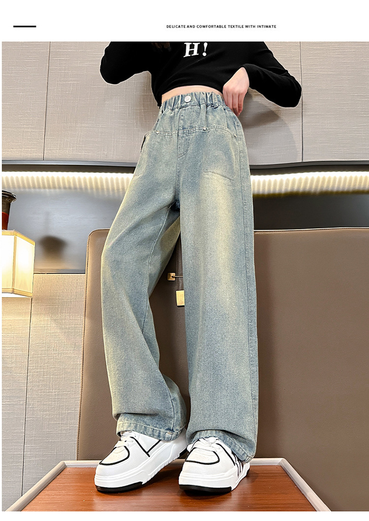 소녀 바지 봄 새로운 한국 스타일 어린이 서양식 올매치 소녀의 트렌디 한 스트레이트 청바지 Huzhou Zhili