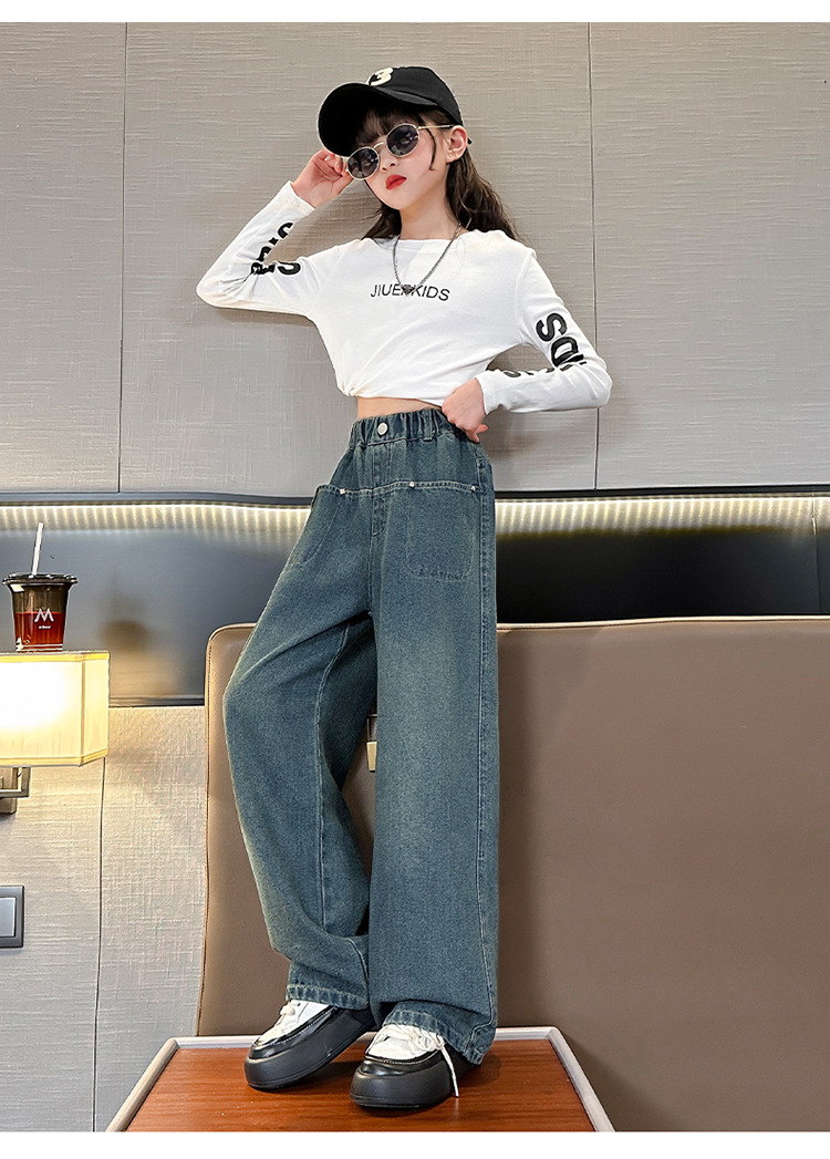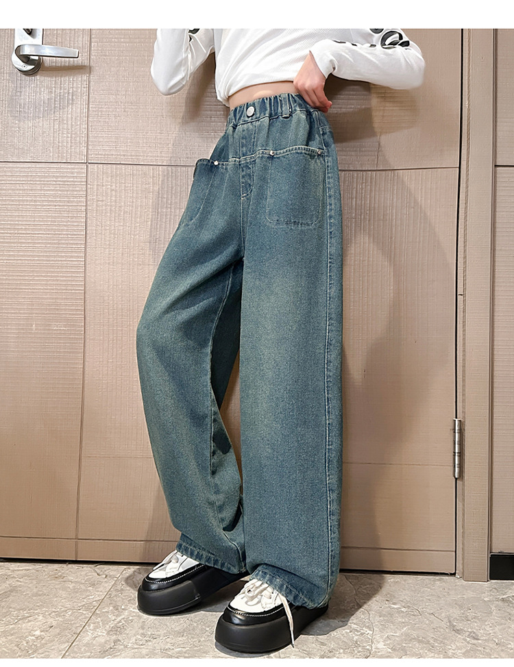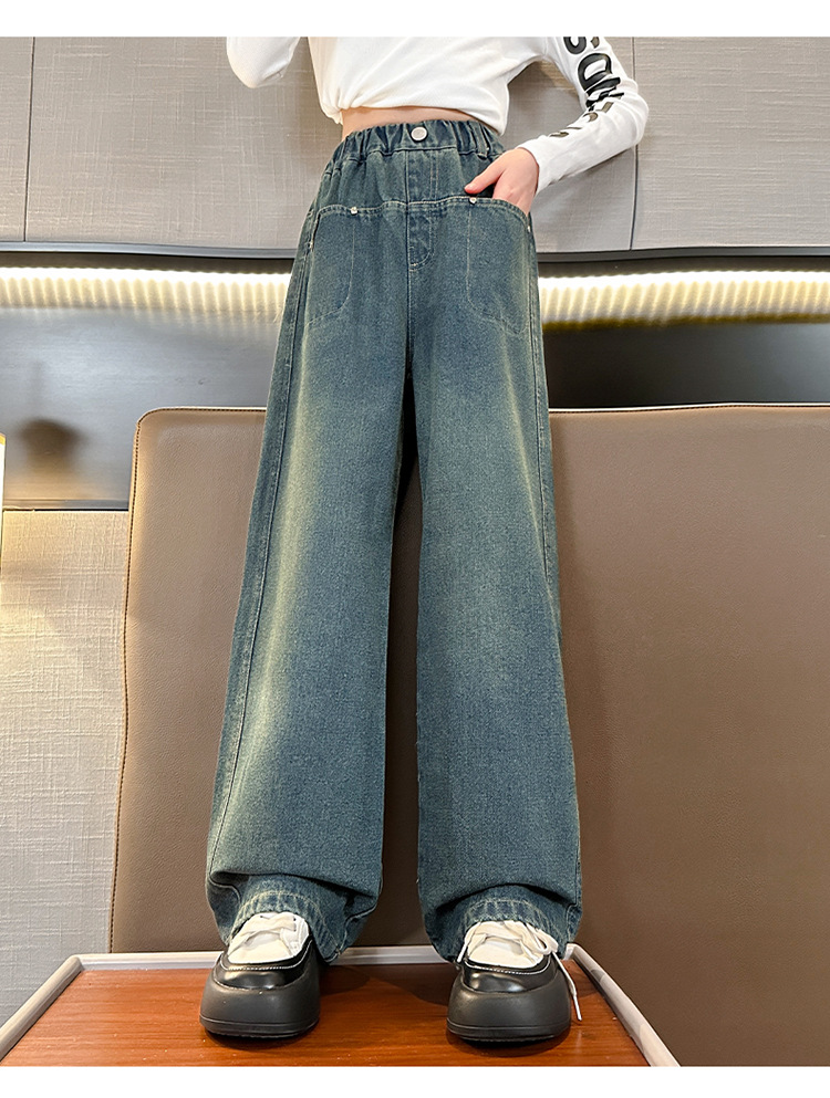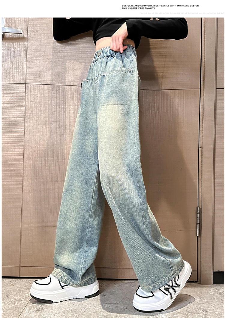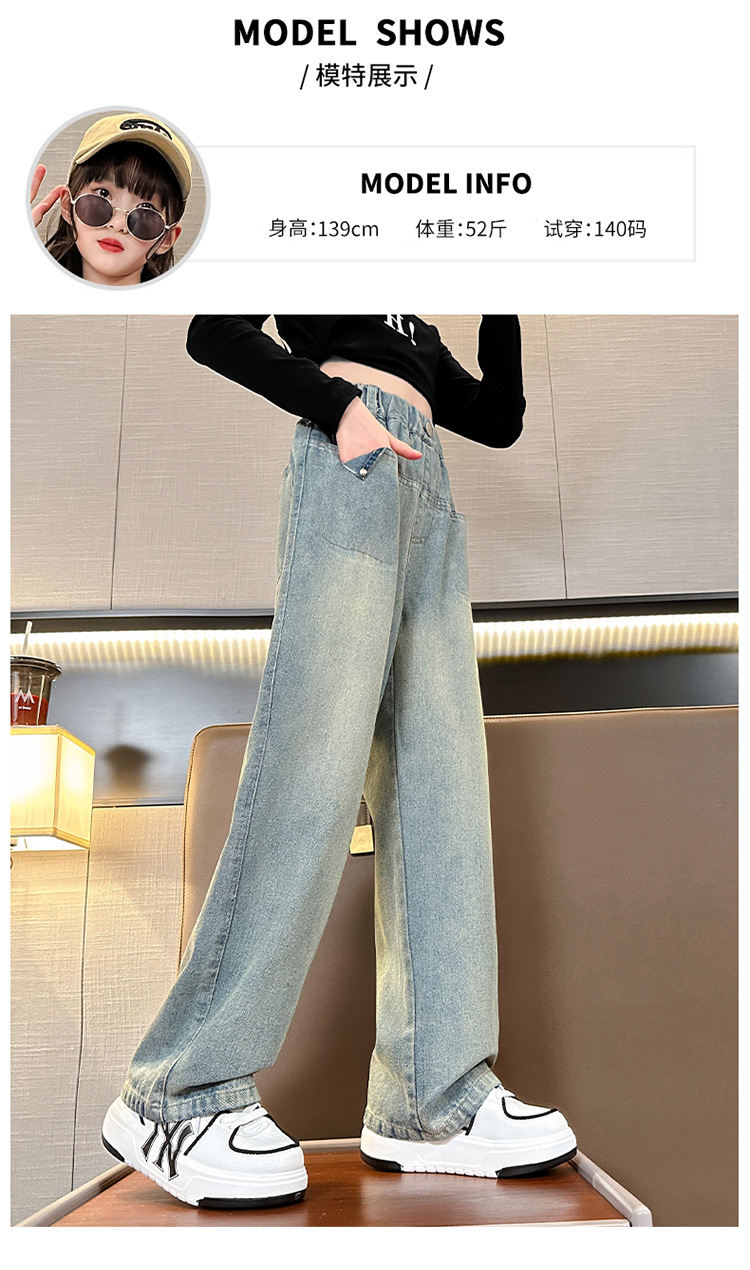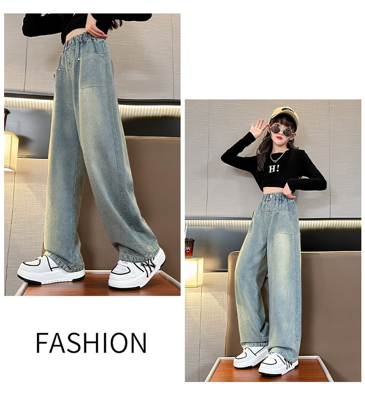 소녀 바지 봄 새로운 한국 스타일 어린이 서양식 올매치 소녀의 트렌디 한 스트레이트 청바지 Huzhou Zhili