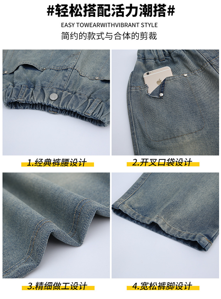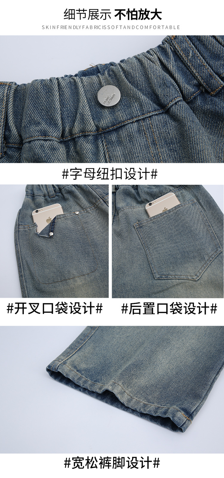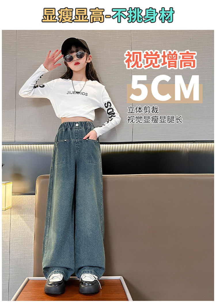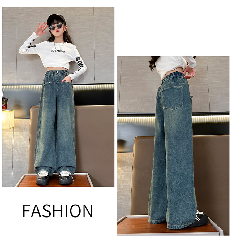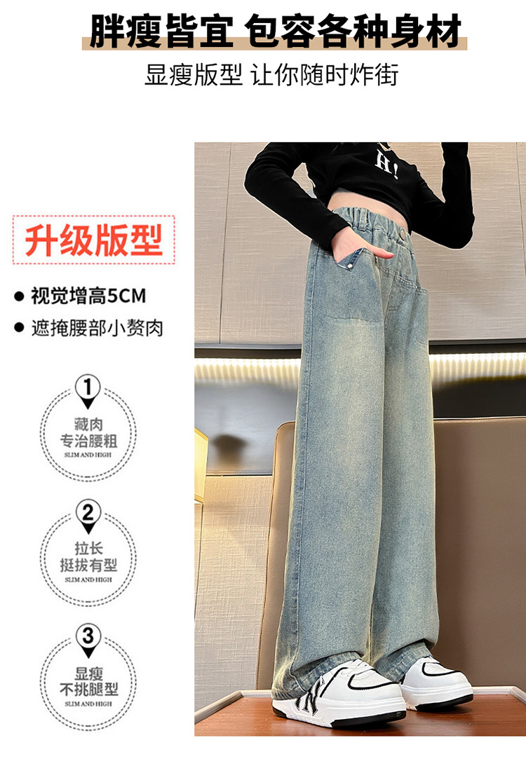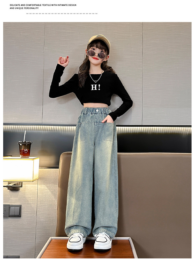 소녀 바지 봄 새로운 한국 스타일 어린이 서양식 올매치 소녀의 트렌디 한 스트레이트 청바지 Huzhou Zhili