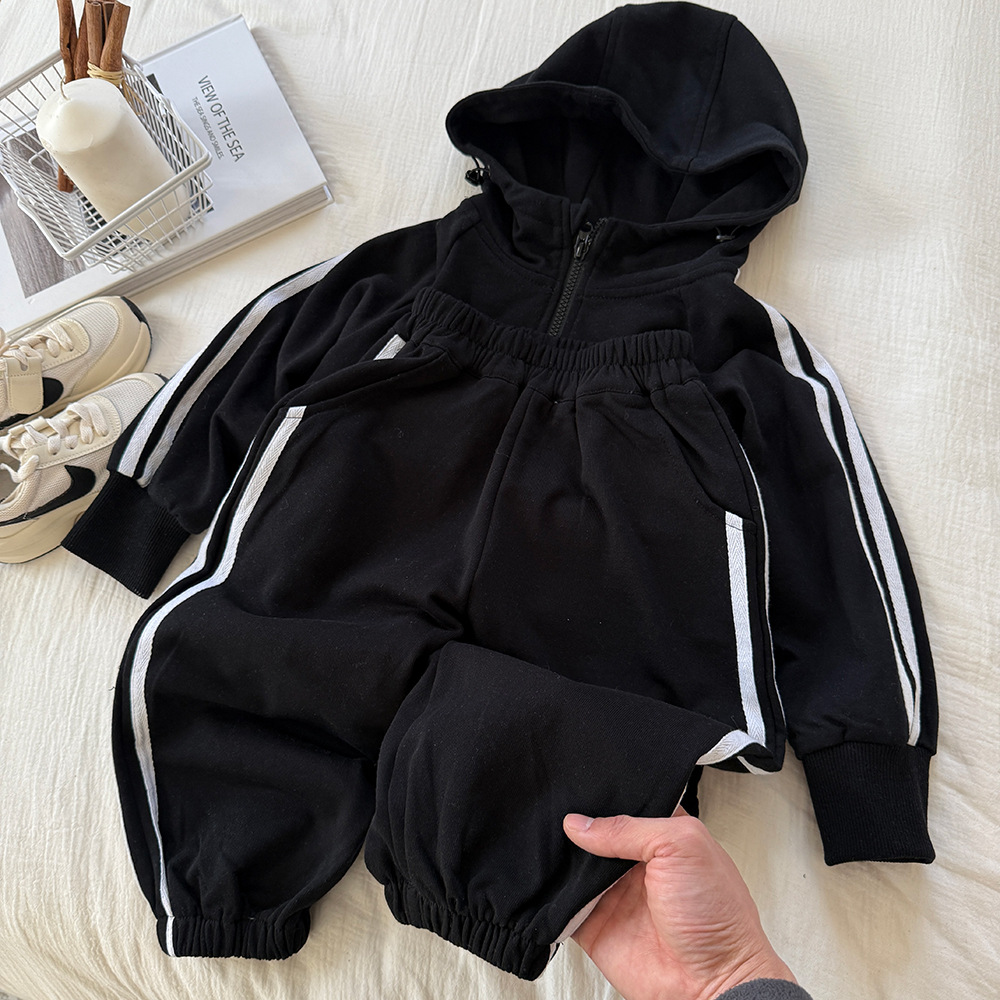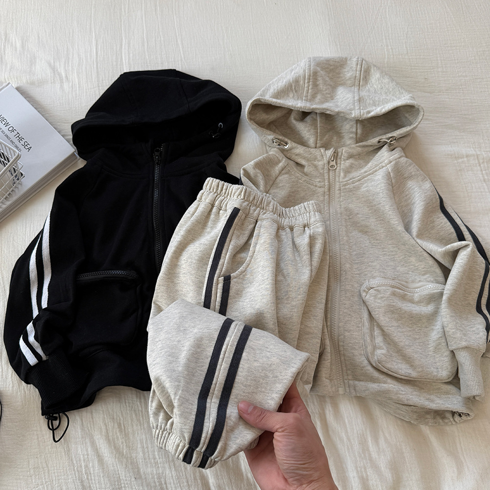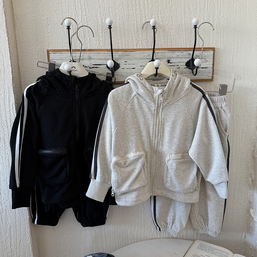 아동복 2025 봄 새로운 쿨 캐주얼 스포츠 후드 스웨터 세트 한국 스타일 2 피스 유행 세트 소년 소녀스토어 가기