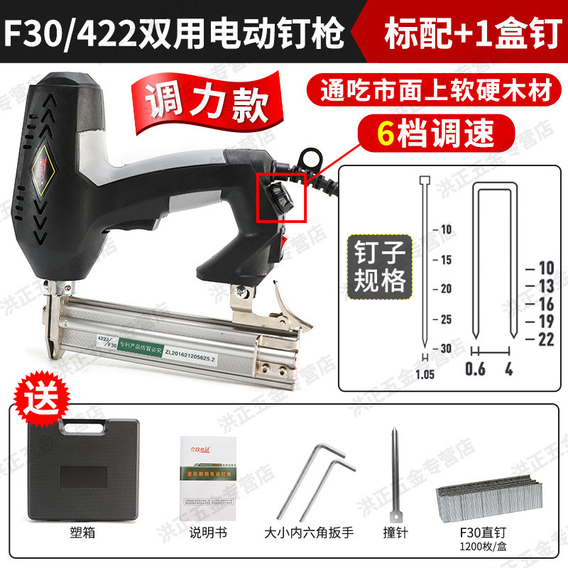 • F30-422 이중 목적 전동 네일건 [힘 조절 모델] - 오리지널 표준 + 못 10박스