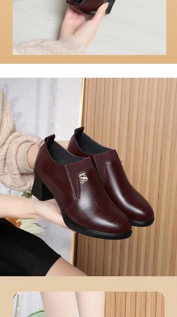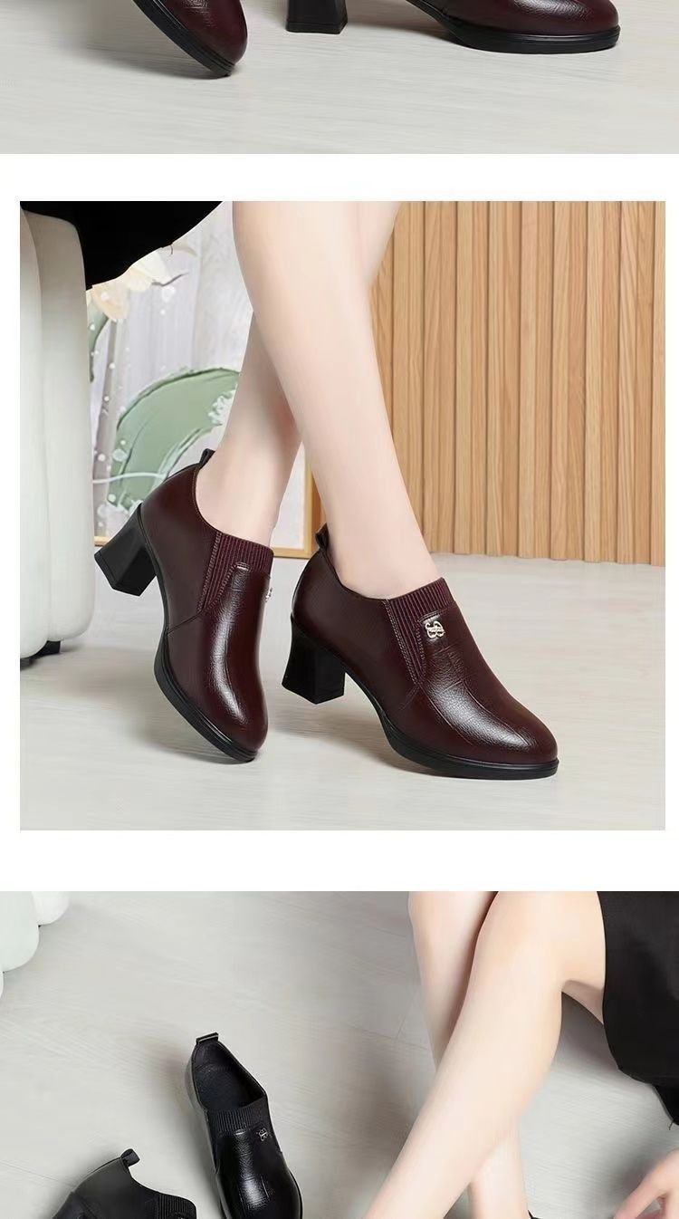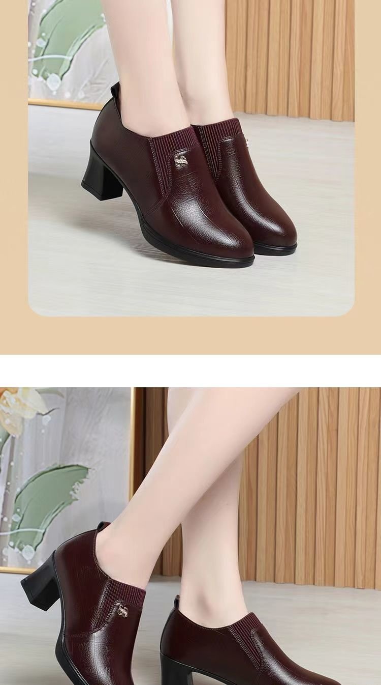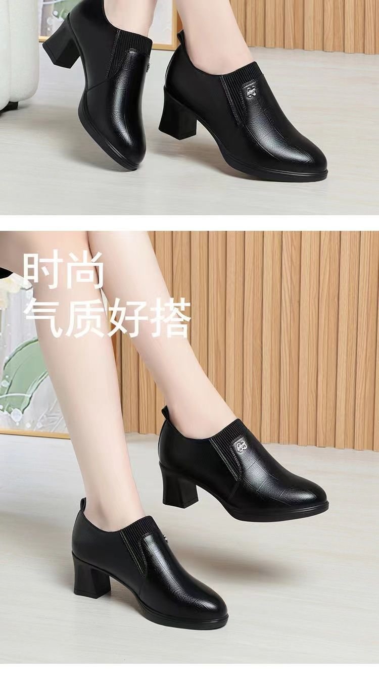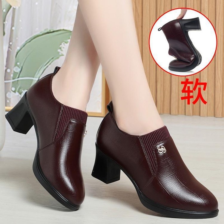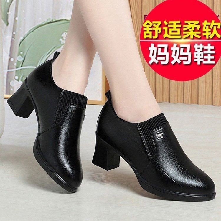 국경 간 어머니 신발 봄과 가을 2025 새로운 중년 여성 싱글 신발 부츠 깊은 입 가죽 신발 하이힐 여성 신발 대외 무역 짧은스토어 가기