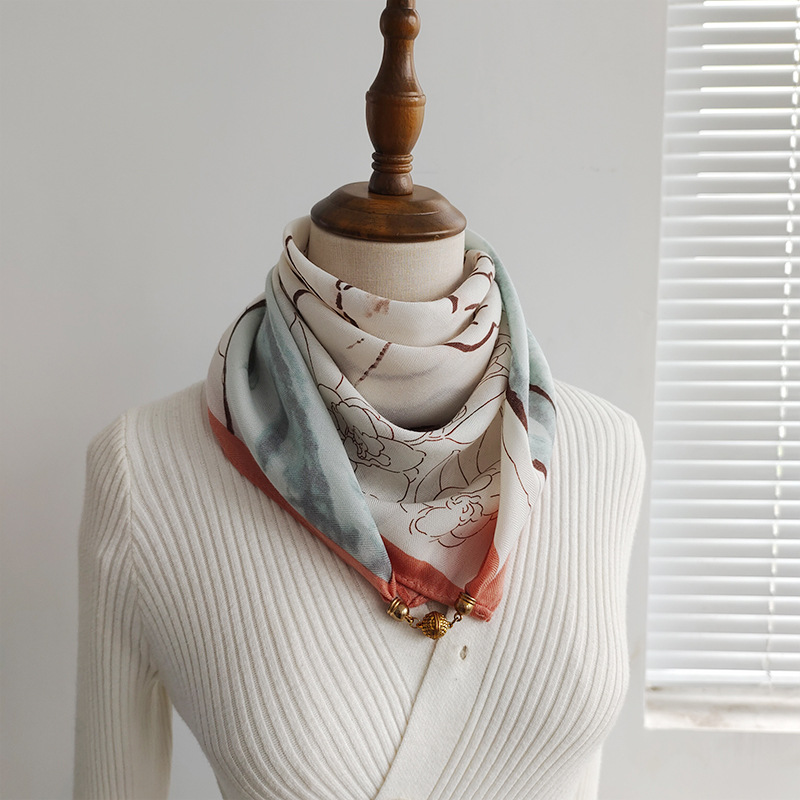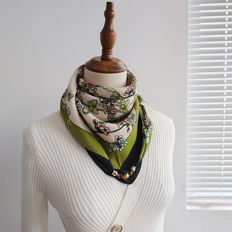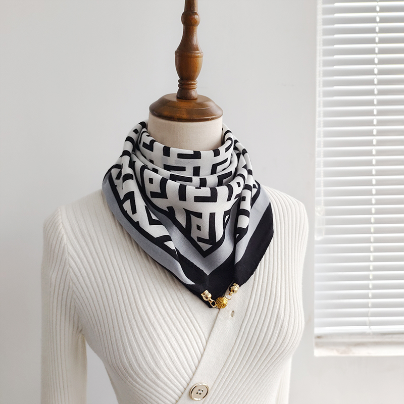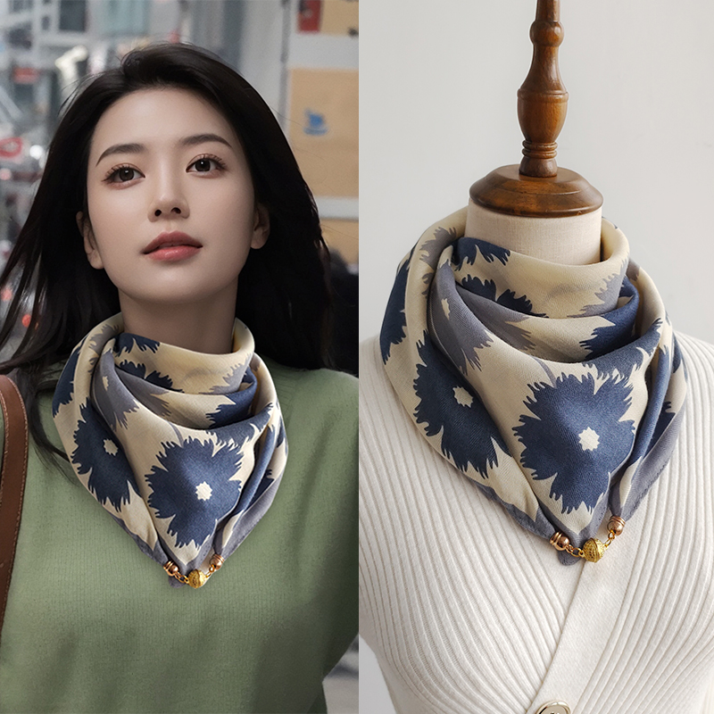 2024 새로운 스타일 스퀘어 스카프 가을과 겨울 목 보호 작은 스카프 여성용 마그네틱 블루 삼각형 스카프 고급 방풍 스카프스토어 가기
