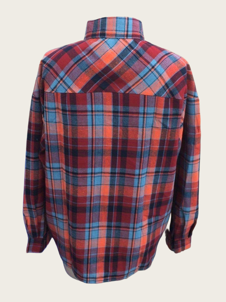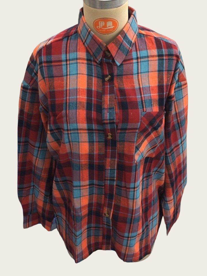 2025 년 여름 새로운 격자 무늬 인쇄 긴 소매 최고 여성 유럽과 미국의 간단한 올 매치 느슨한 살 셔츠 여성