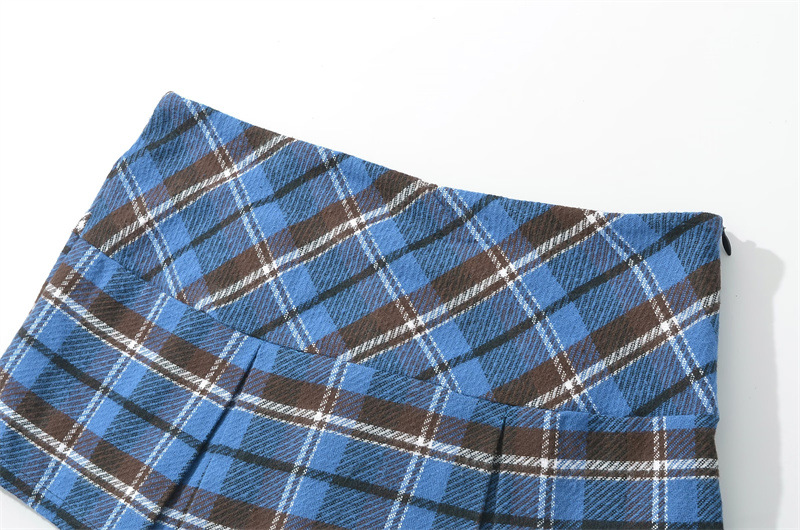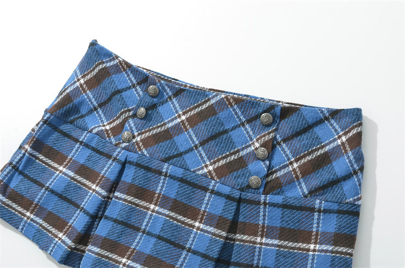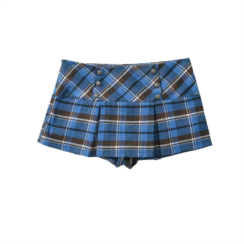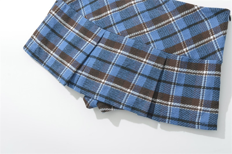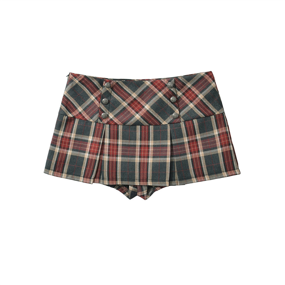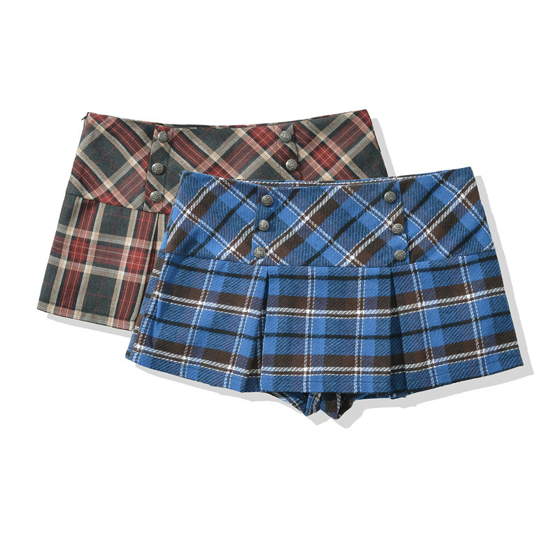 대학 스타일의 복고풍 격자 무늬 짧은 치마 바지 여성의 가을 높은 허리 슬리밍 다리 길이 순수한 욕망 스파이스 소녀의 짧은 치마 방지 조명