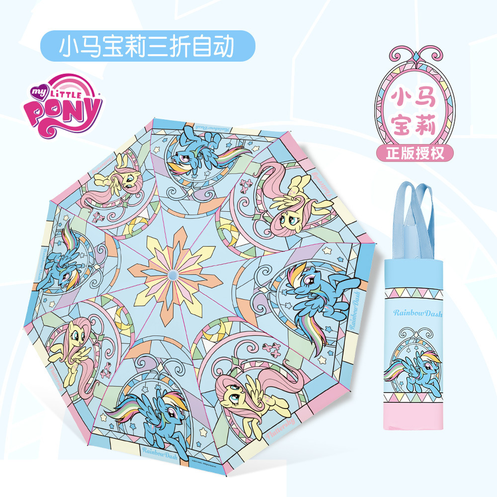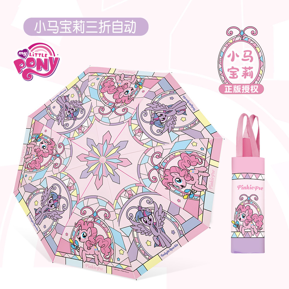 정품 포니 폴리 창 꽃 Biqi Ziyue 부드러운 작은 접시 Yunbao 자동 선 스크린 우산 학생
