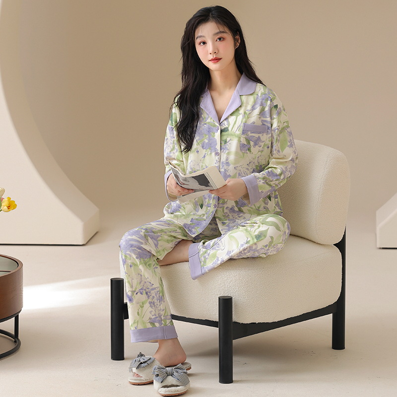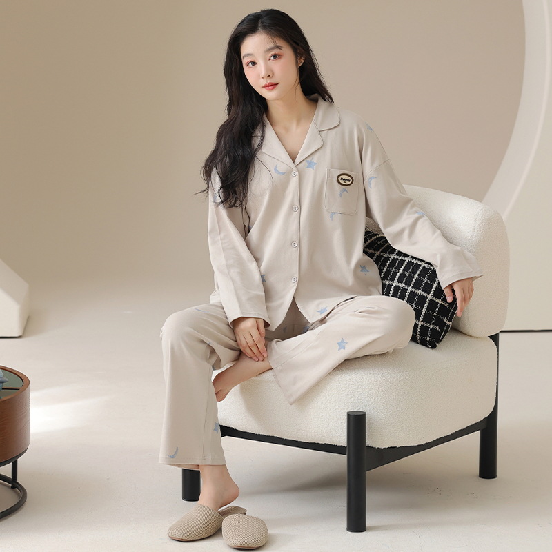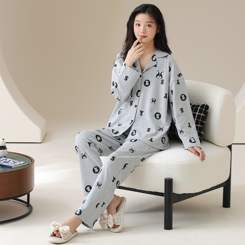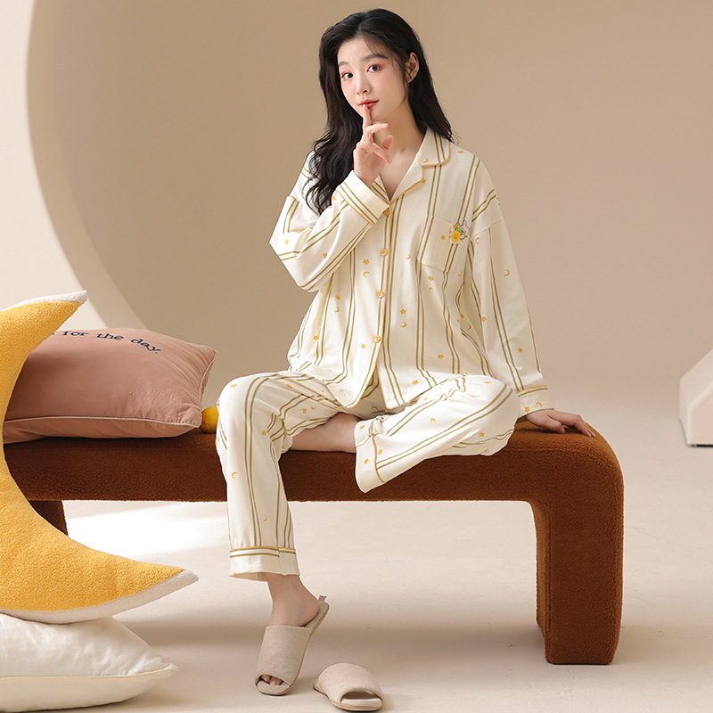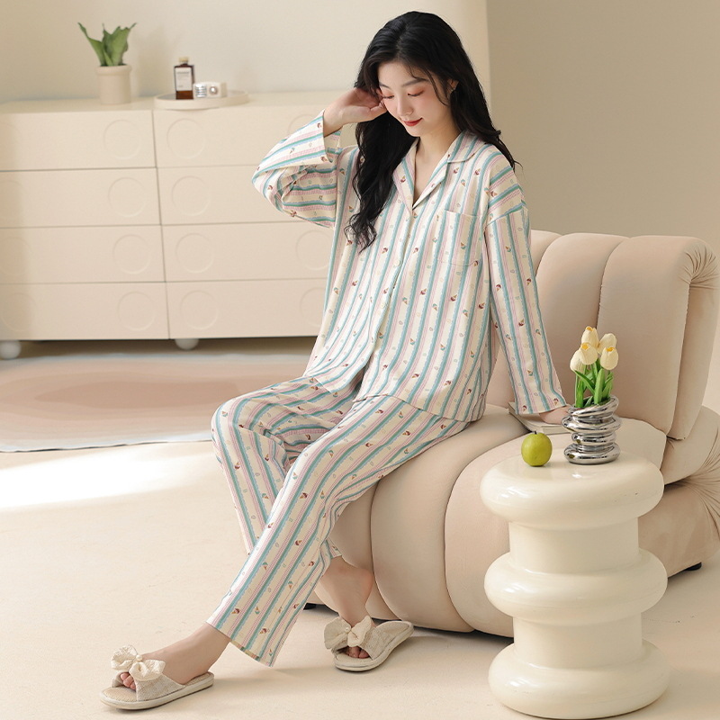 클래스 A 항균 100 면 파자마 여성의 봄과 가을 여성의 긴 소매 카디건 여성을위한 4 계절 의상 홈 옷스토어 가기