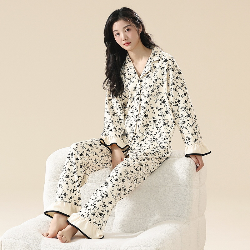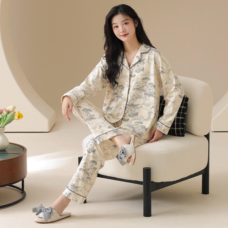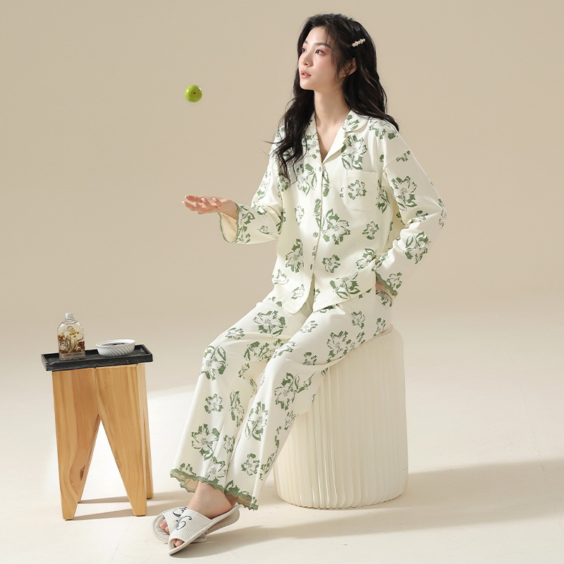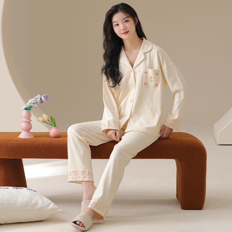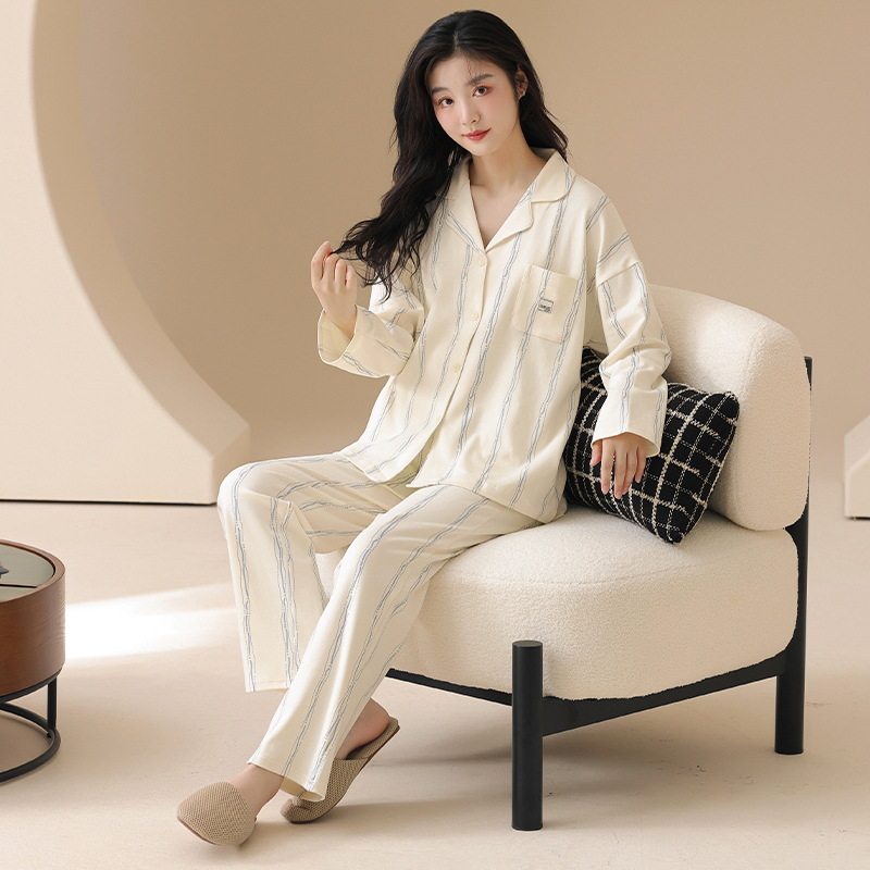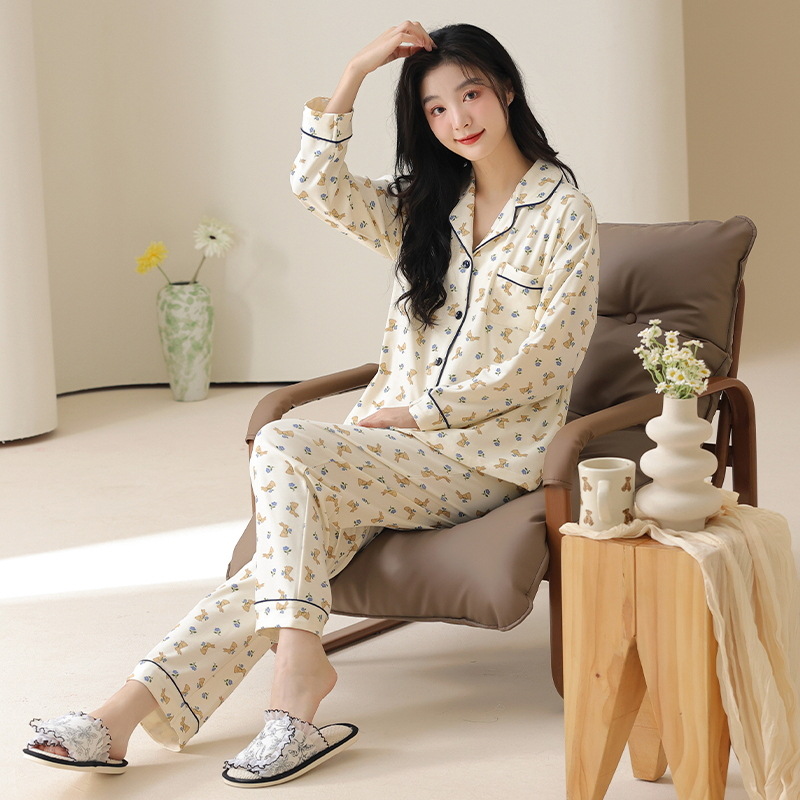 클래스 A 항균 100 면 파자마 여성의 봄과 가을 여성의 긴 소매 카디건 여성을위한 4 계절 의상 홈 옷스토어 가기