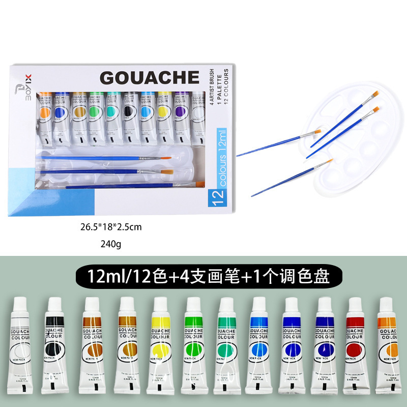 미술 특별 12ml12 색 방수 아크릴 구 아슈 수채화 유화 초보 그림 페인트 세트 도매