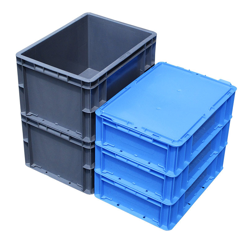 두꺼운 작은 EU 회전율 상자 자동차 부품 유럽 표준 스태커 물류 상자 뚜껑 보관 상자 회색 흰색 거북 상자