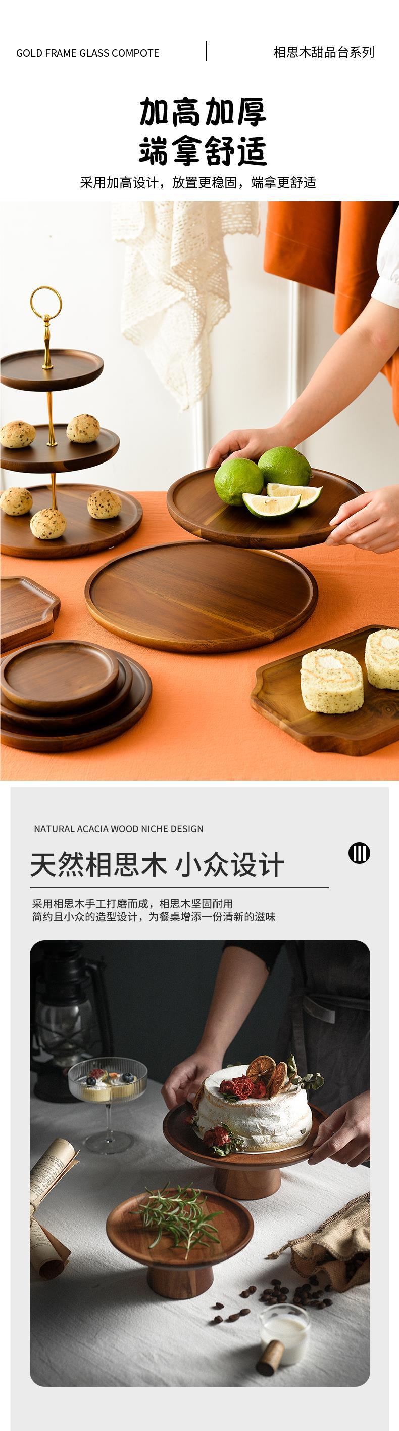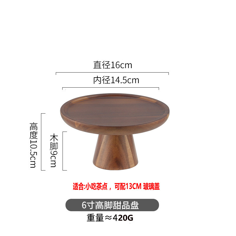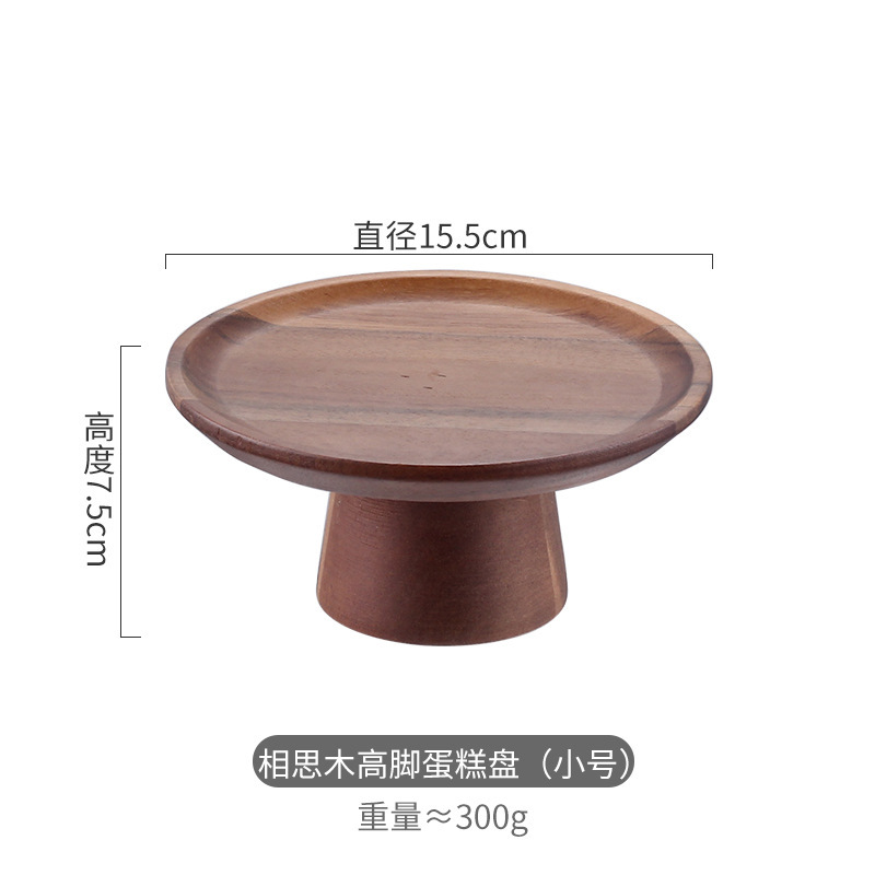 일본식 아카시아 우드 키 큰 케이크 플레이트 나무 트레이 장식품 웨딩 디저트 테이블 디스플레이 랙 홈 과일 스낵 플레이트스토어 가기