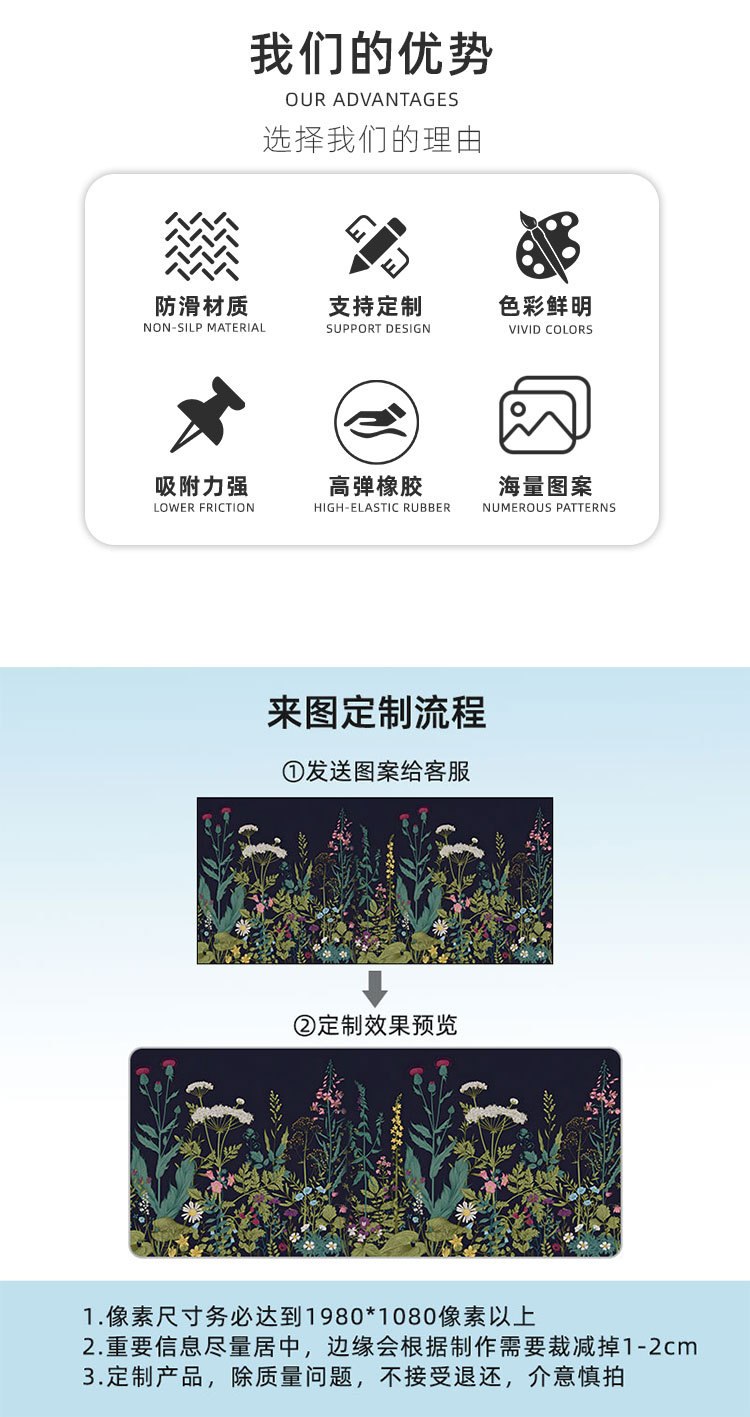 국경 뜨거운 판매 아마존 꽃 마우스 패드 슈퍼 대형 먼지 방지 게임 오피스 슈퍼 대형 테이블 패드 키보드 패드스토어 가기