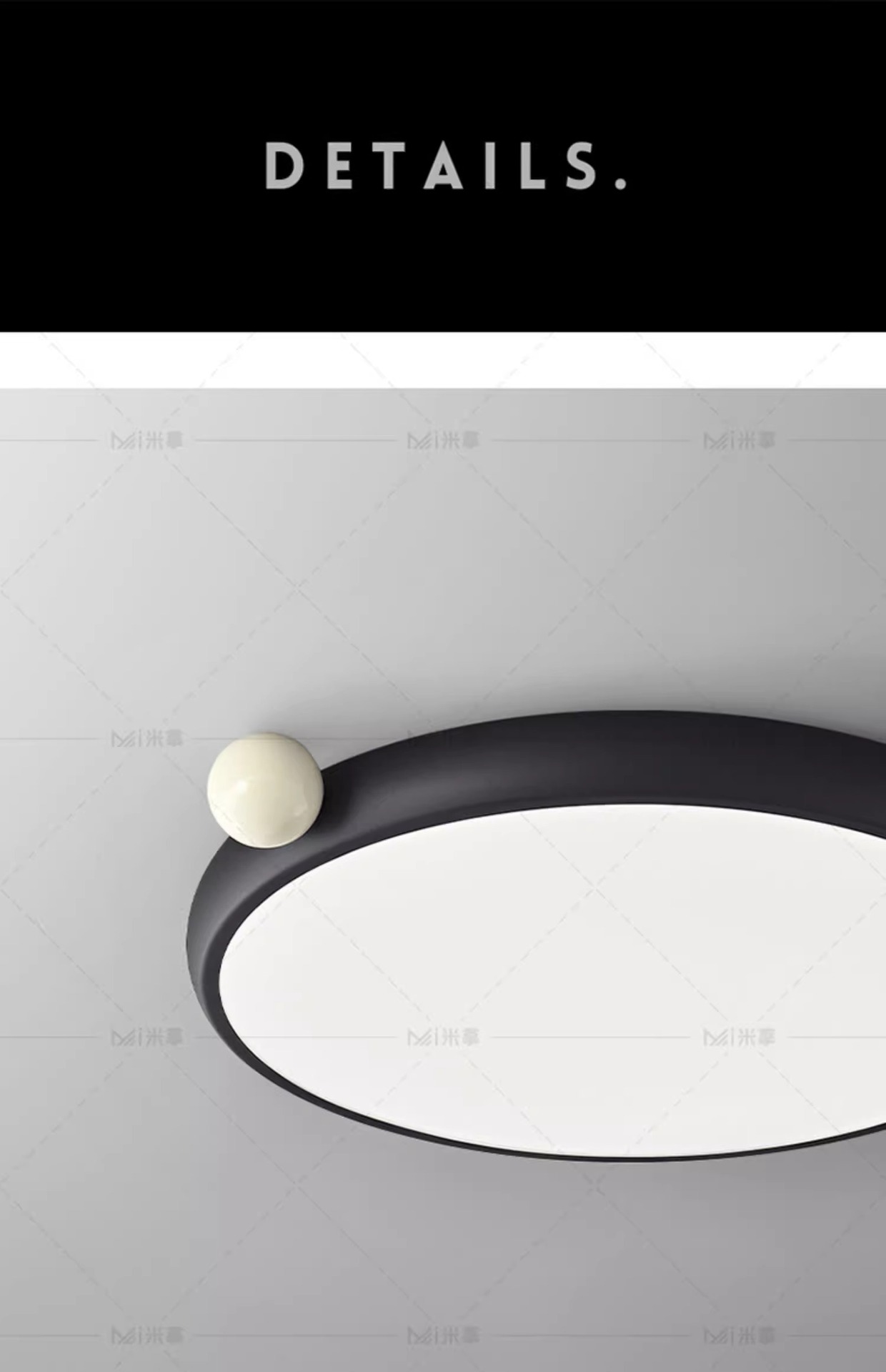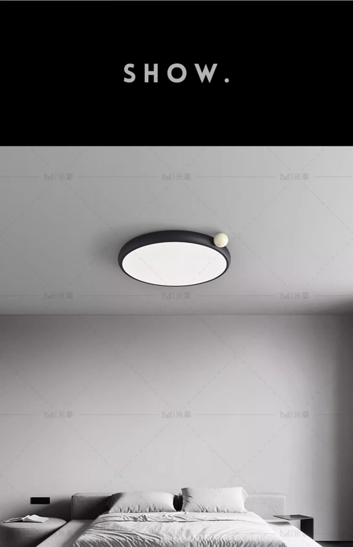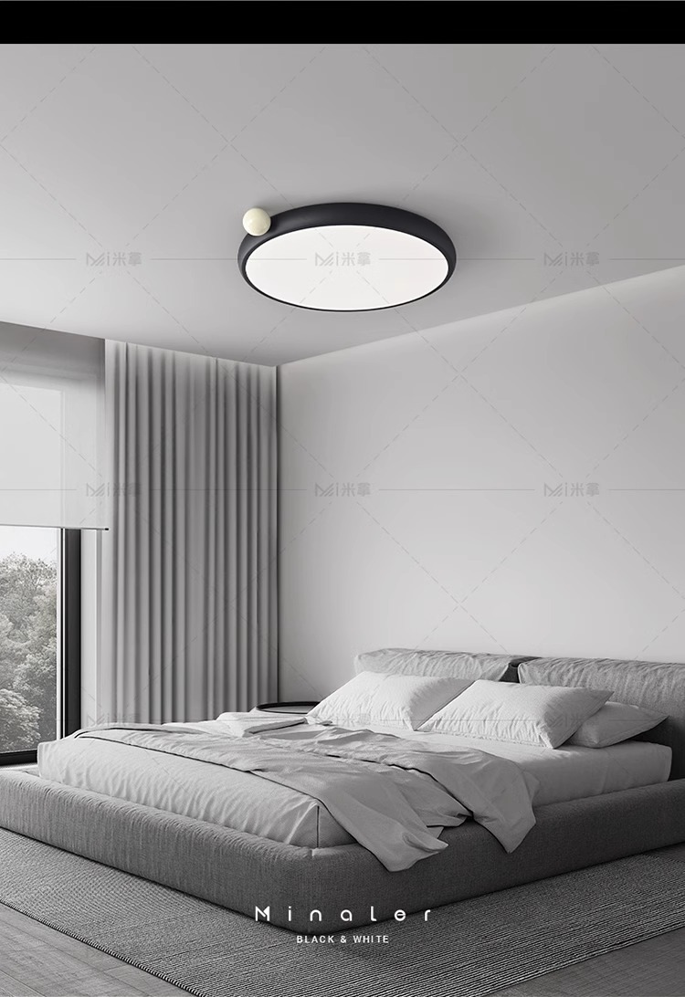 이탈리아 미니멀리스트 침실 천장 램프 현대 간단한 창조적 인 우유 콩 블랙 라운드 어린이 방 눈 보호 LED 램프