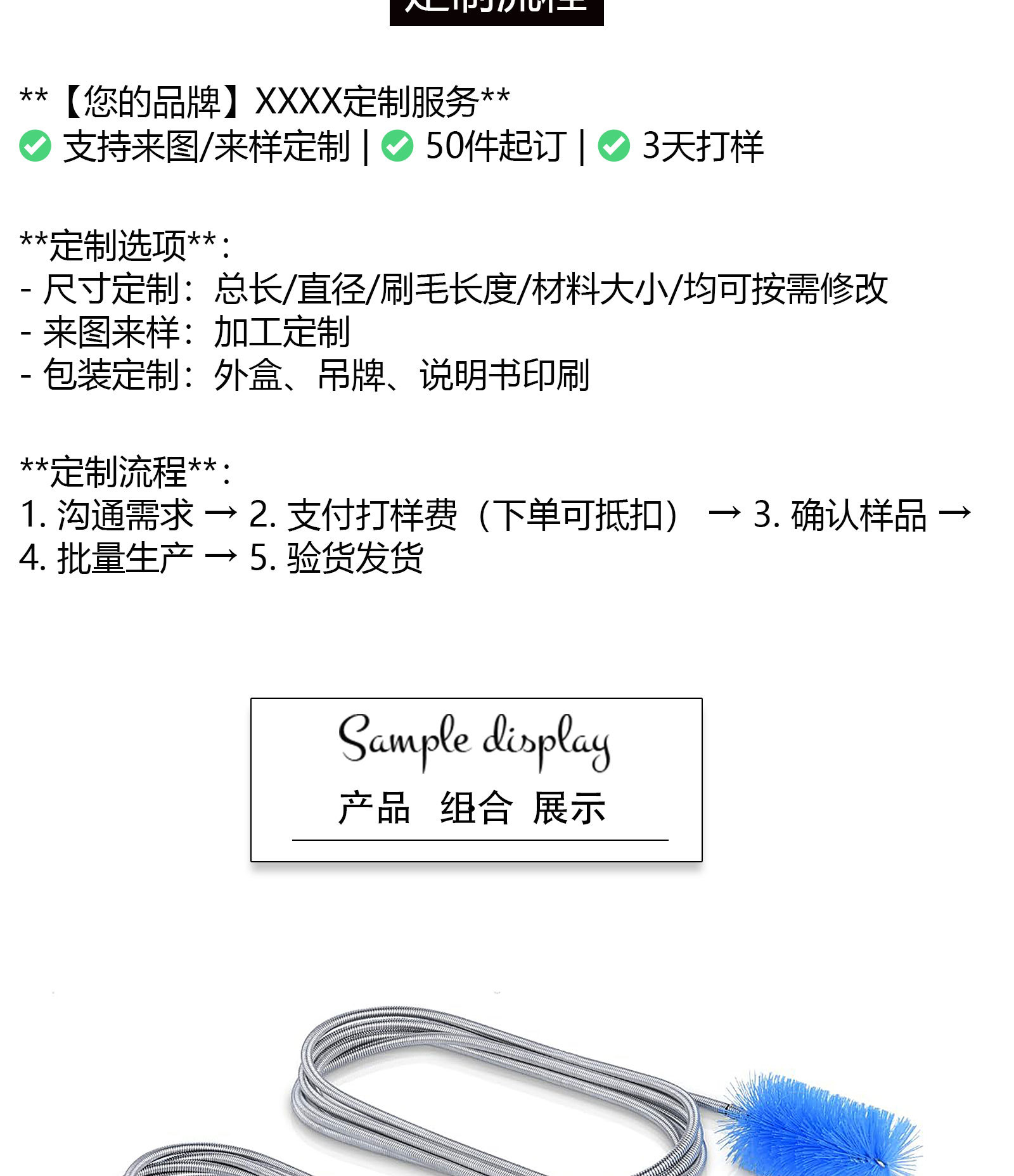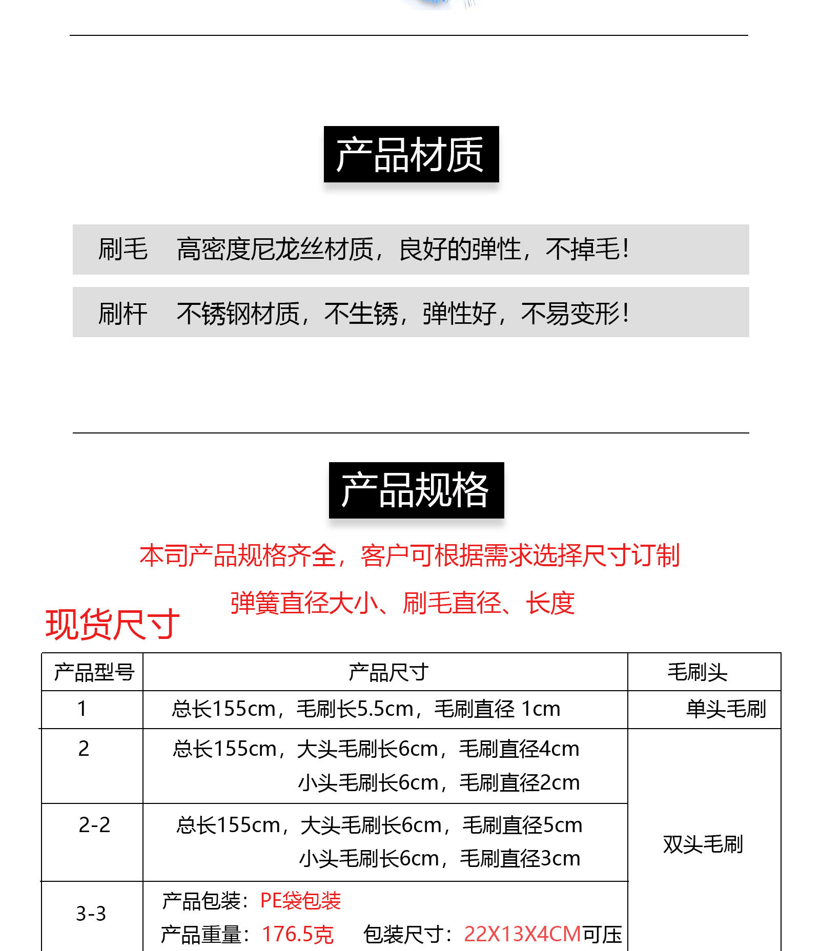 배수 브러시 세트 3 피스 세트, 주방 싱크대 및 파이프에 적합한 더블 헤드 및 스테인레스 스틸 파이프 클리닝 브러시