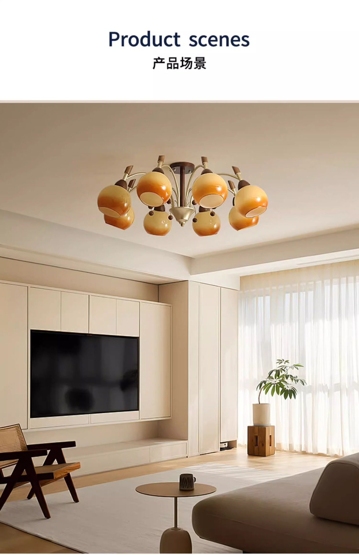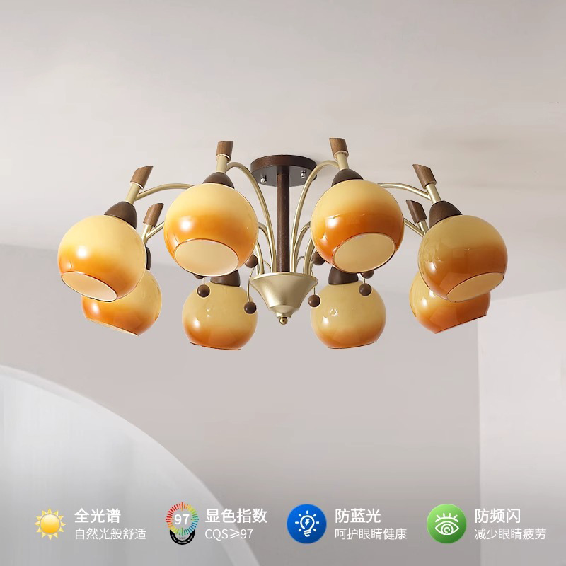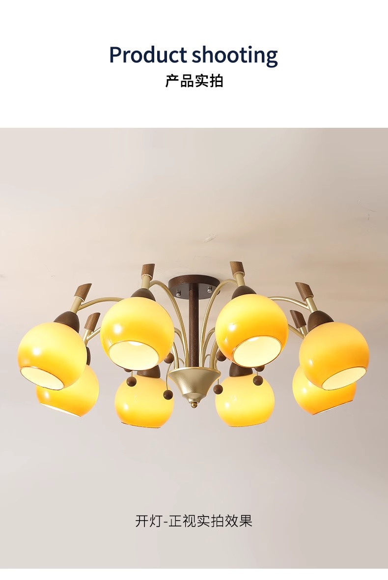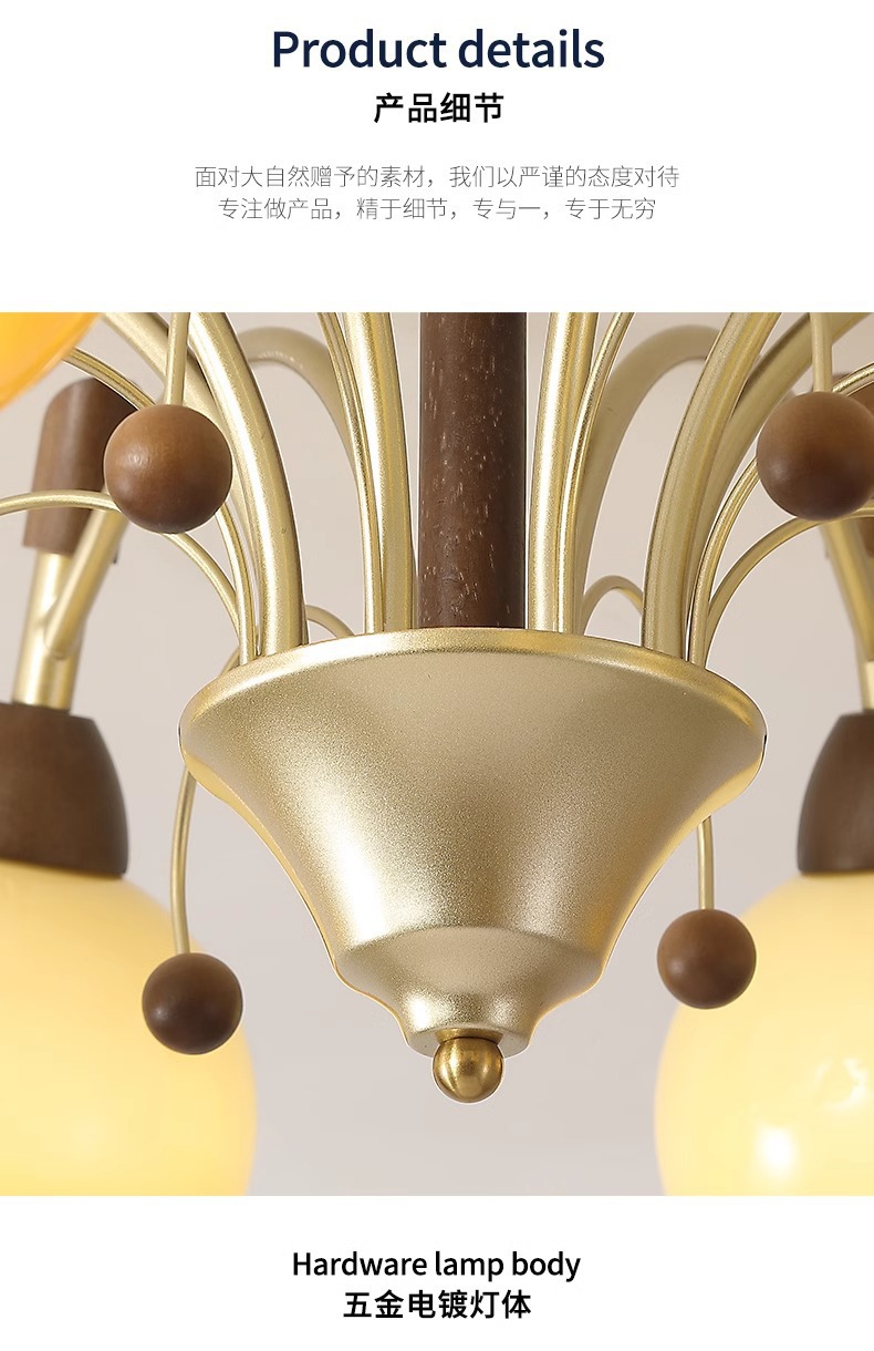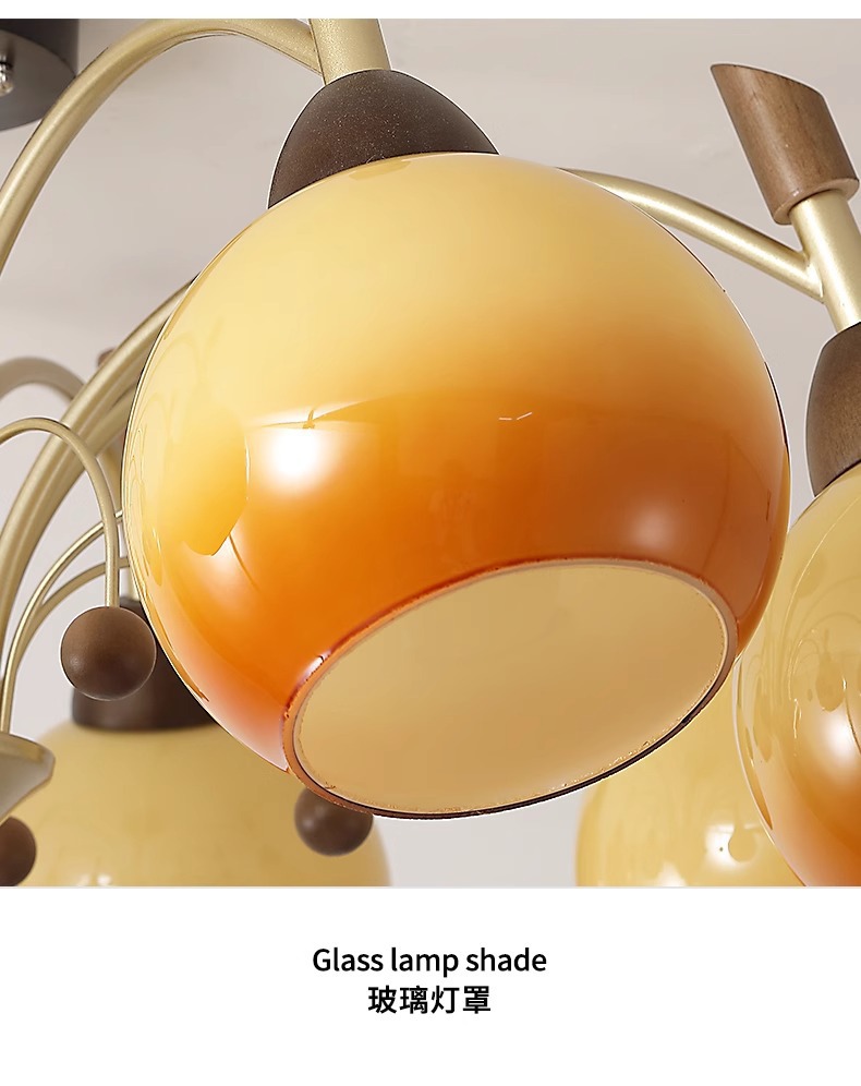 • [구리 도금 + 브라운 그라데이션 유리] 원목 샹들리에 6개 헤드