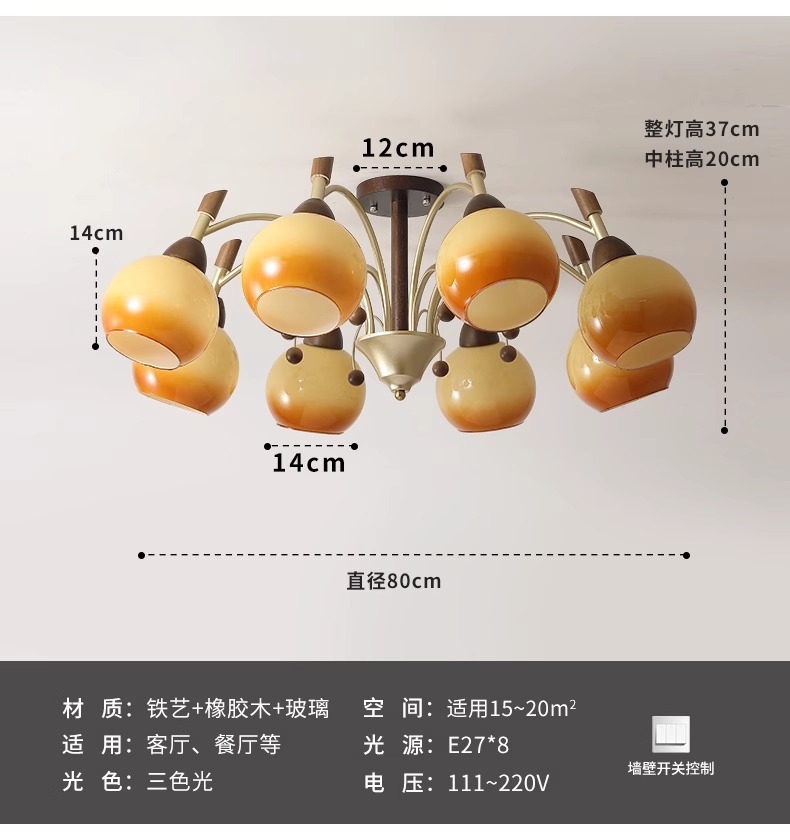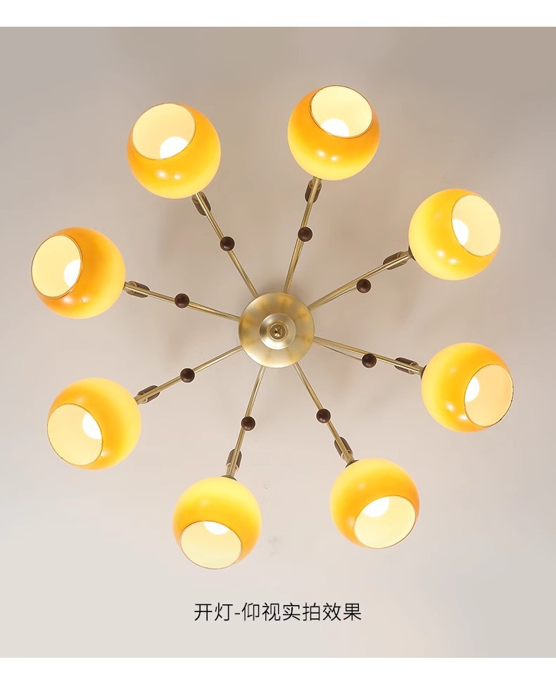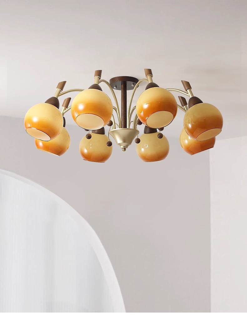 • [구리 도금 + 브라운 그라데이션 유리] 원목 샹들리에 8개