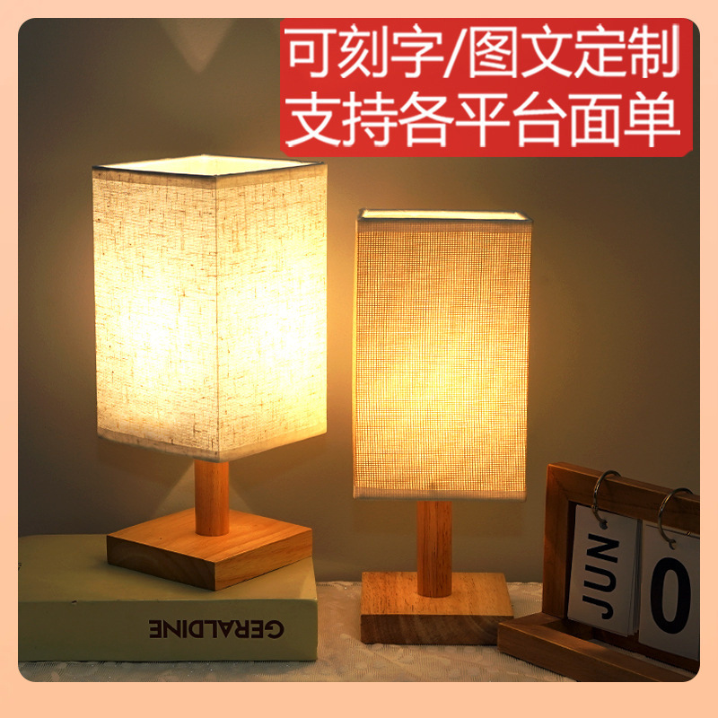 ✅ 북유럽 단단한 나무 패브릭 usb 테이블 램프 장식 침실 머리맡 램프 연구 기숙사 원격 제어 led 야간 조명스토어 가기
