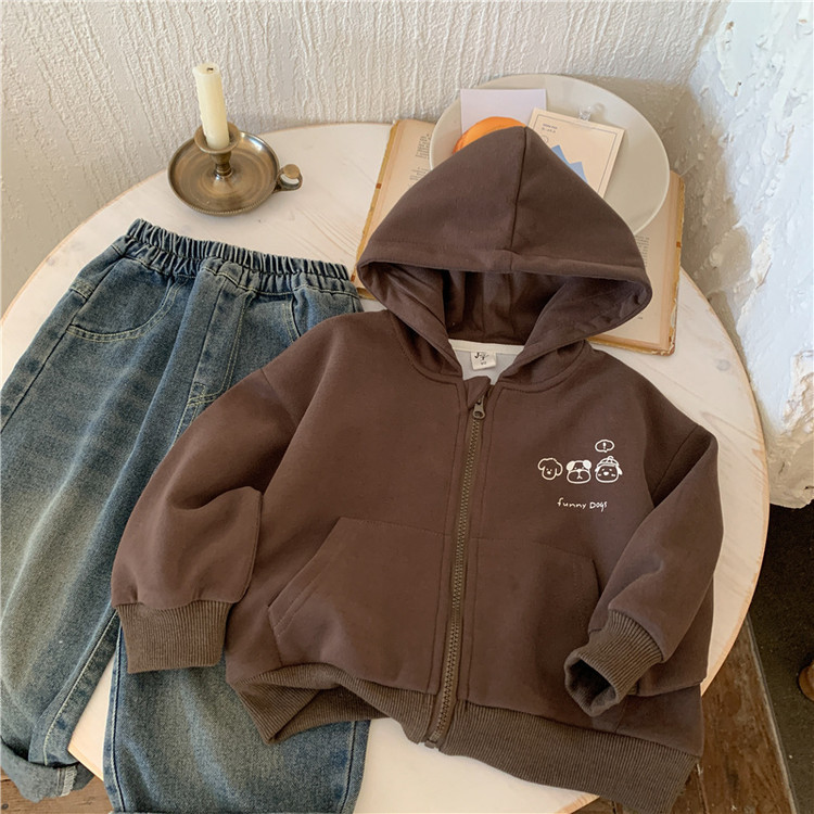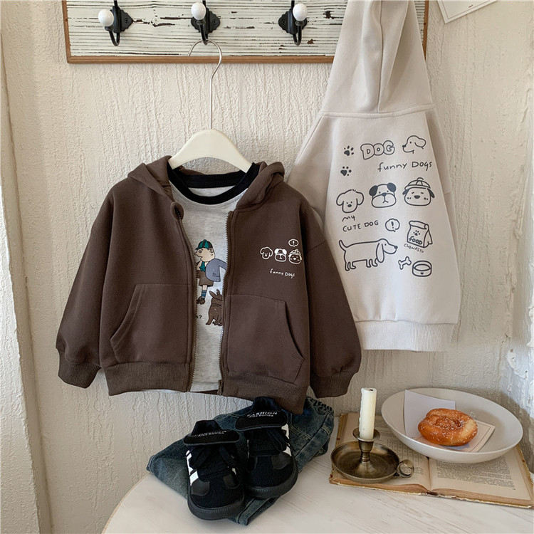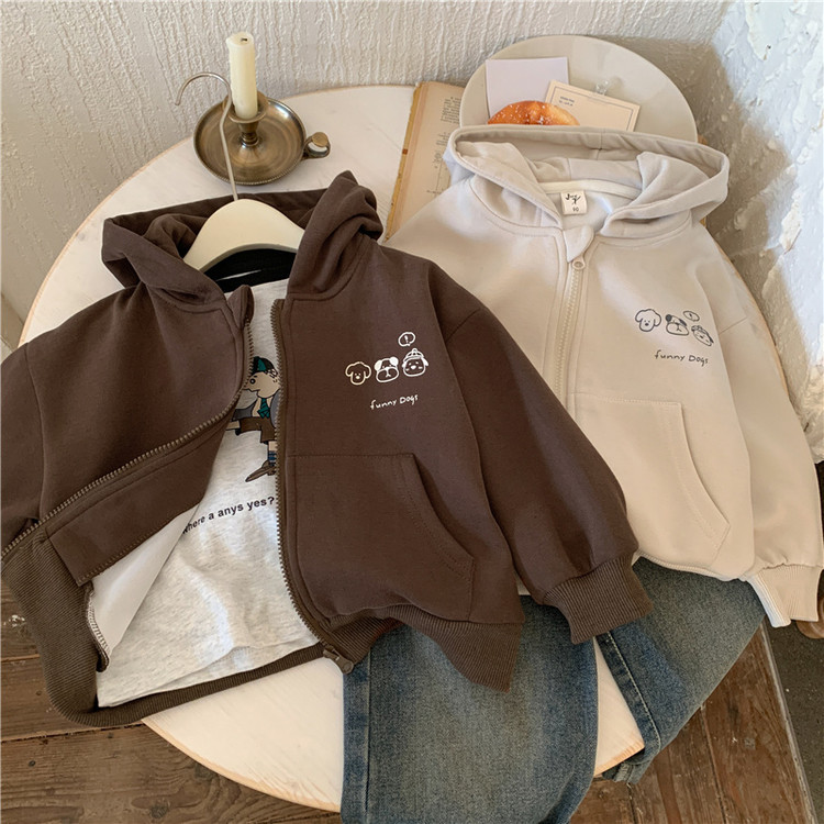 Buga Sugar 베이비 가을 캐주얼 재킷 소년 한국어 버전 만화 후드 티셔츠 카디건 아동 스타일 재킷