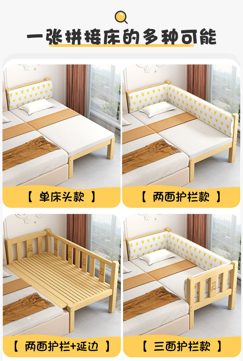 어린이 접합 침대 폭 크립 소년 소녀의 단단한 나무 큰 침대 가드 레일 아기의 침대 옆 싱글 침대스토어 가기