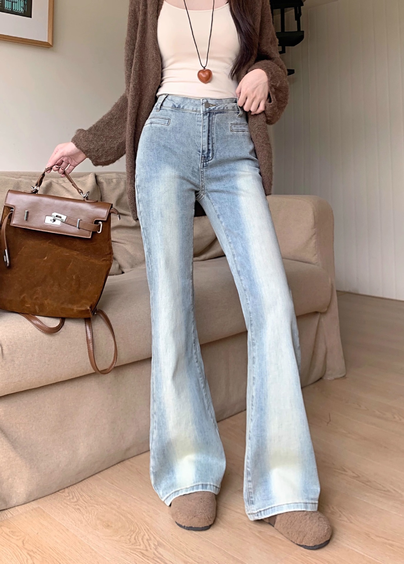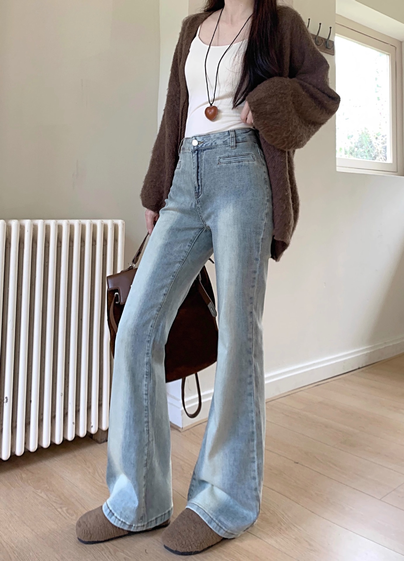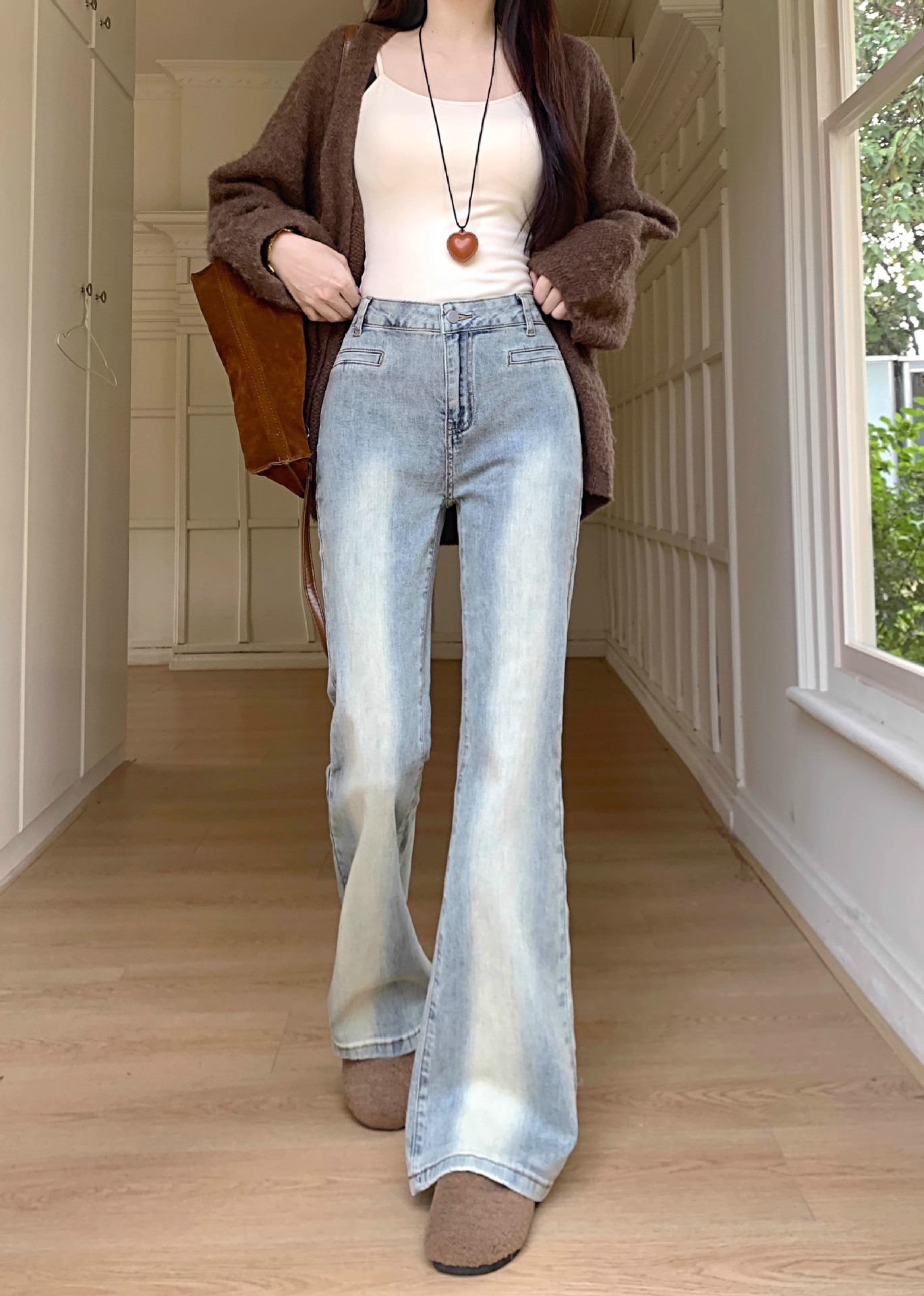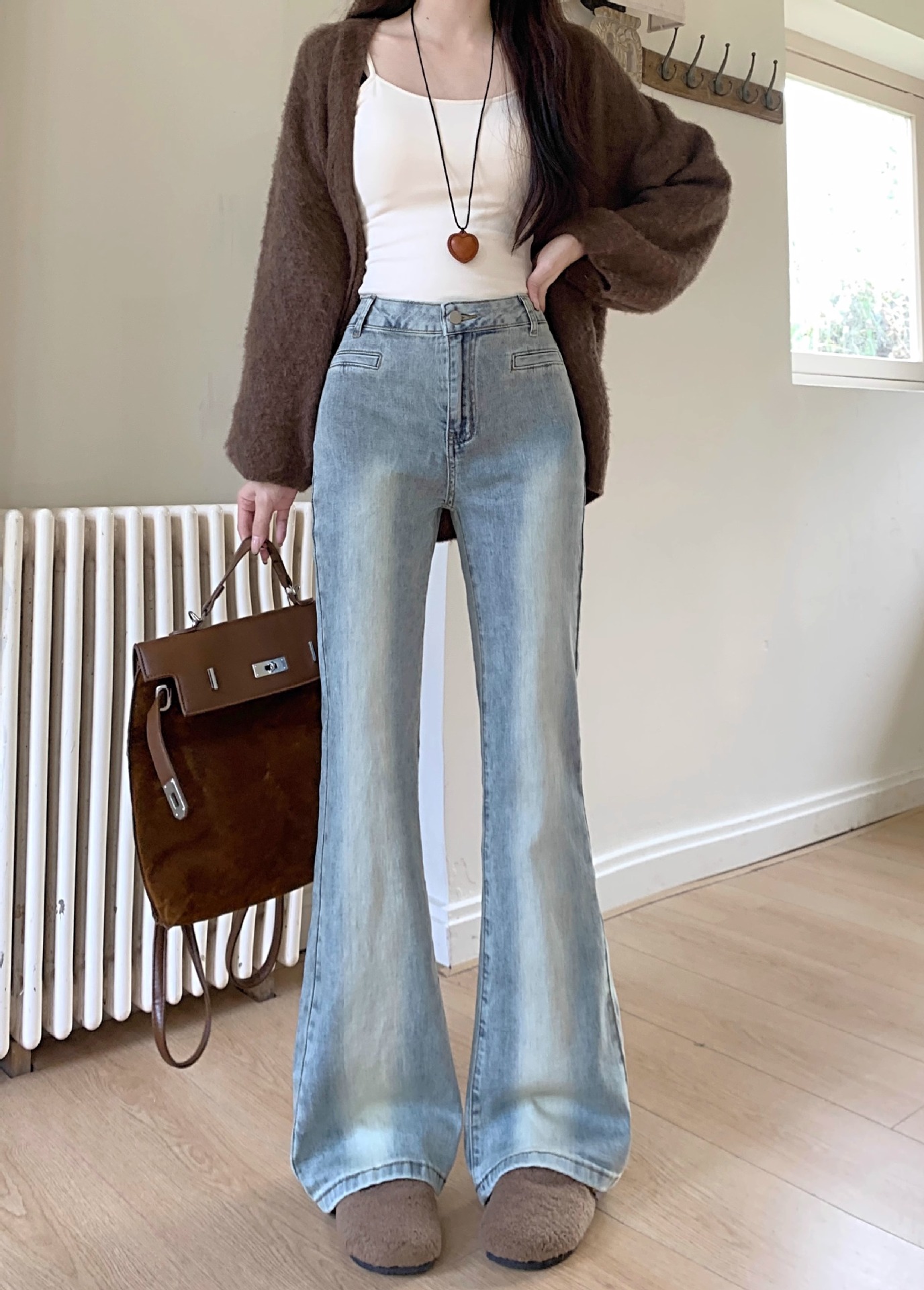 빈티지 화이트 높은 허리 스트레치 마이크로 청바지 2025 봄 새로운 도착 유행 여성을위한 모든 경기 슬리밍 말굽 바지스토어 가기