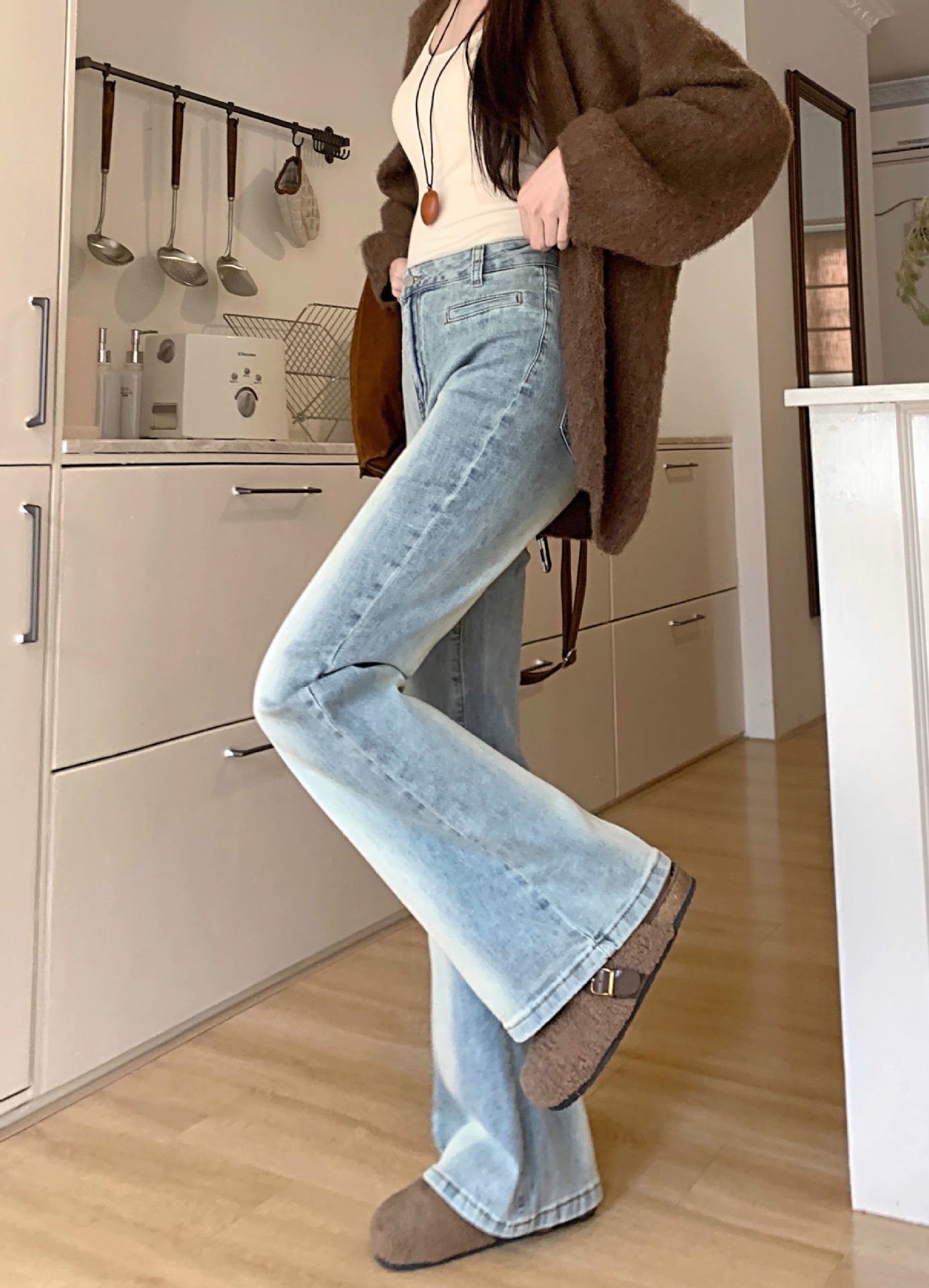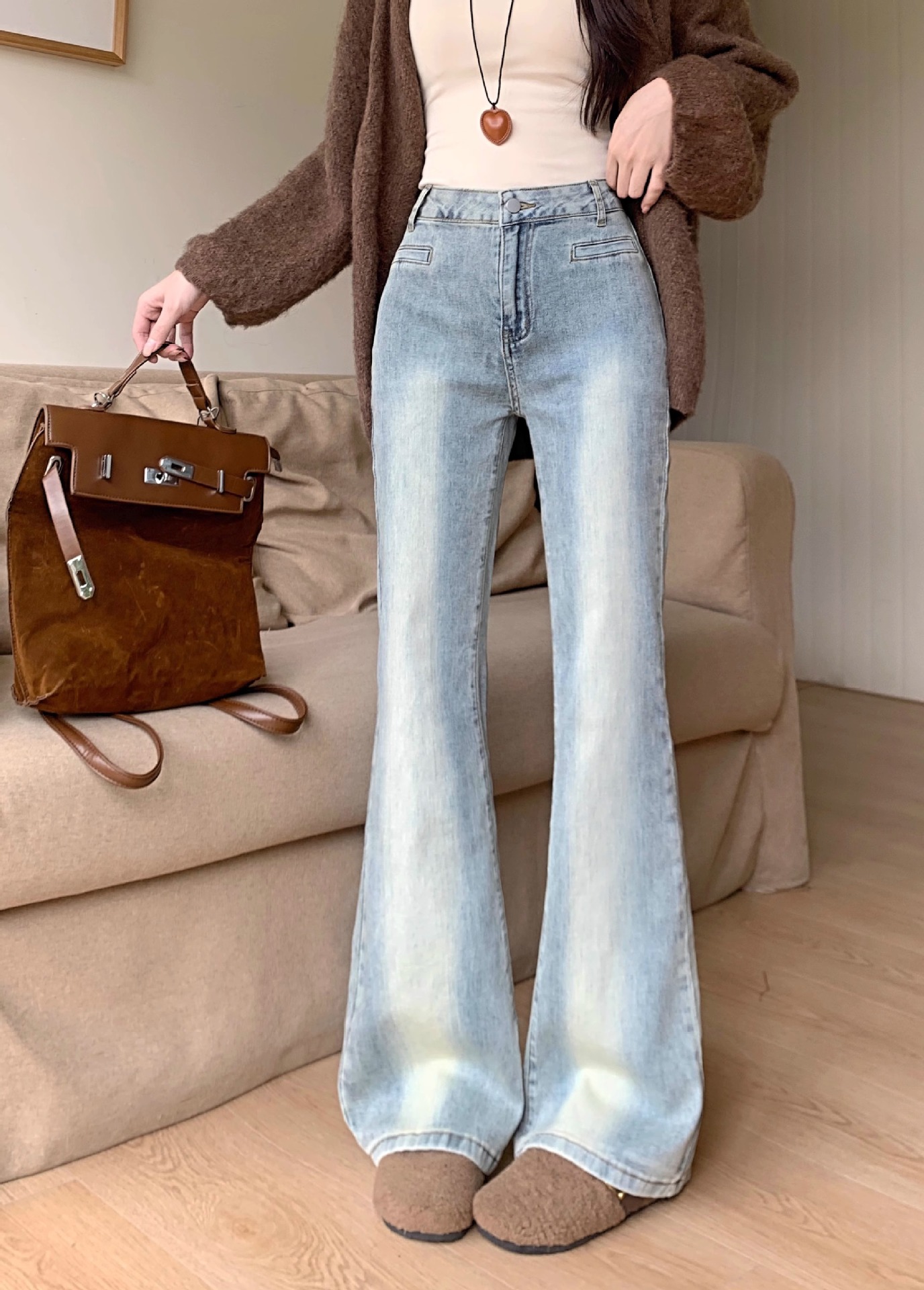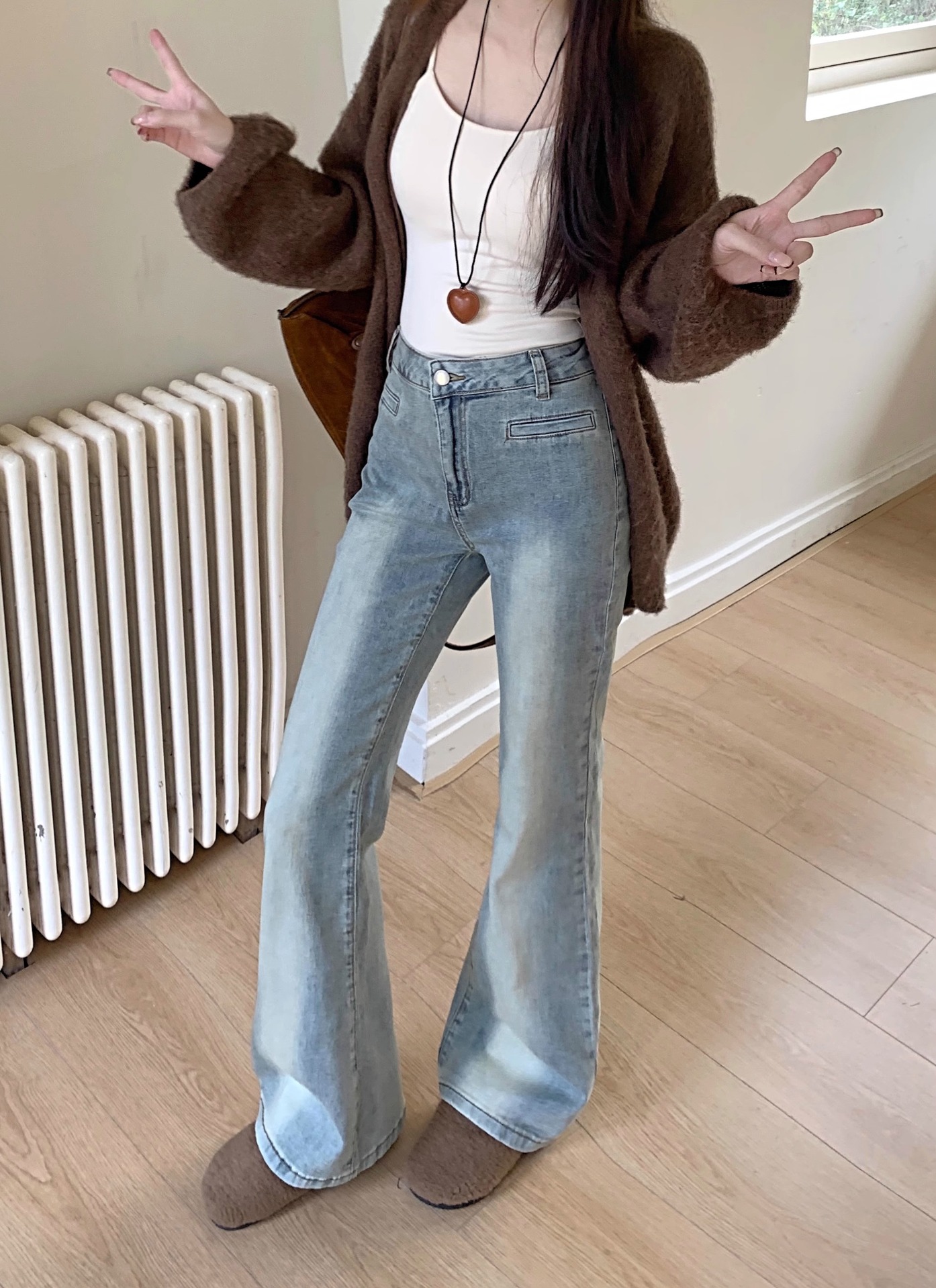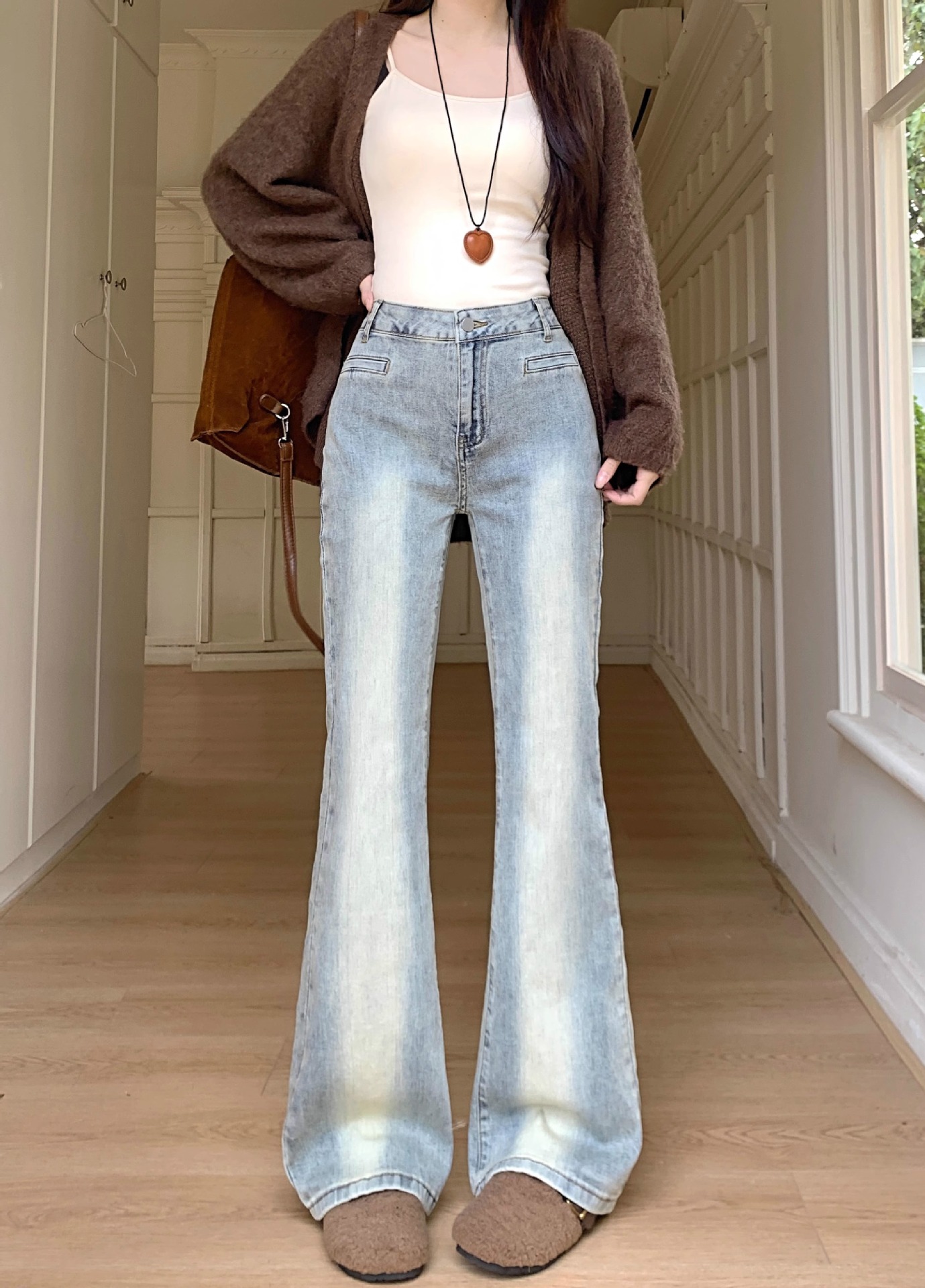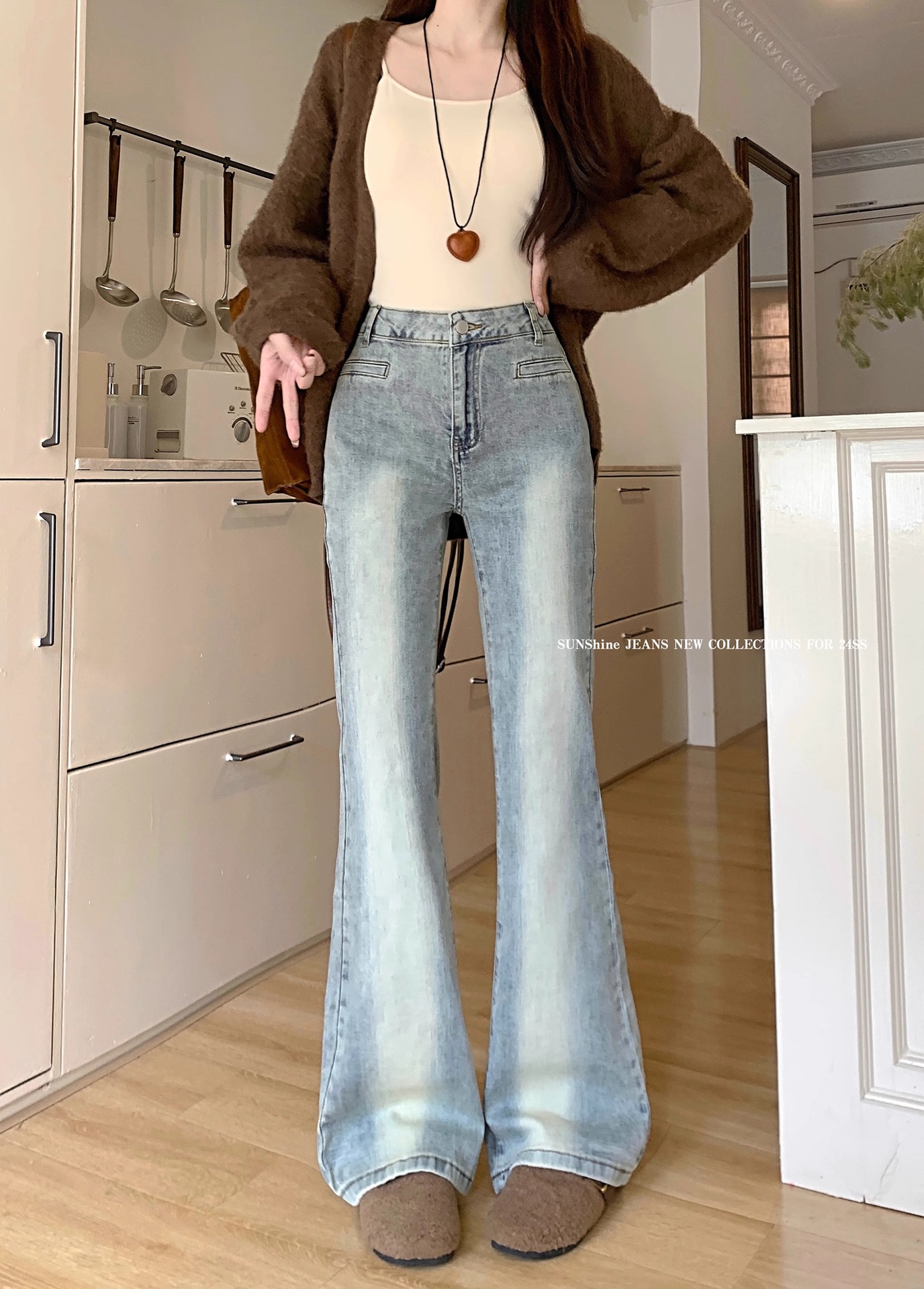 빈티지 화이트 높은 허리 스트레치 마이크로 청바지 2025 봄 새로운 도착 유행 여성을위한 모든 경기 슬리밍 말굽 바지스토어 가기