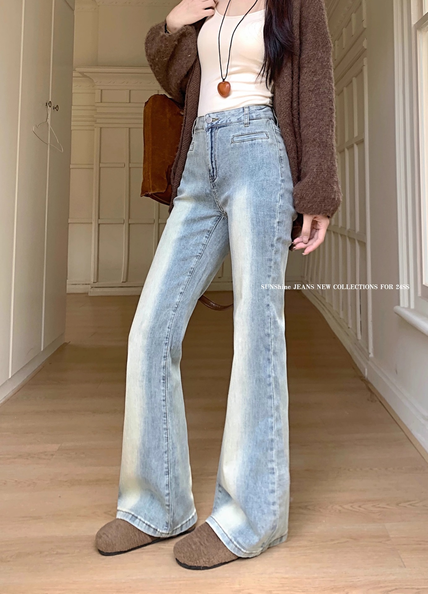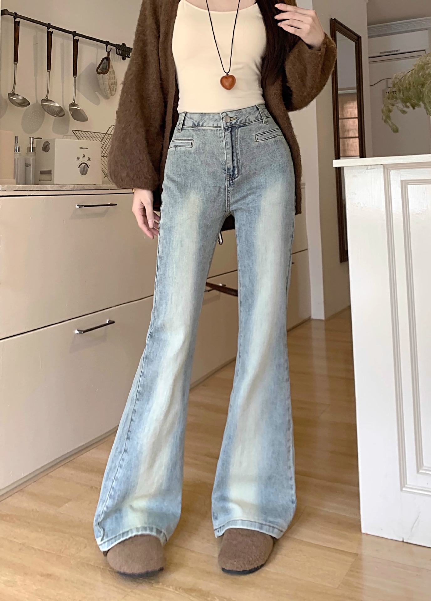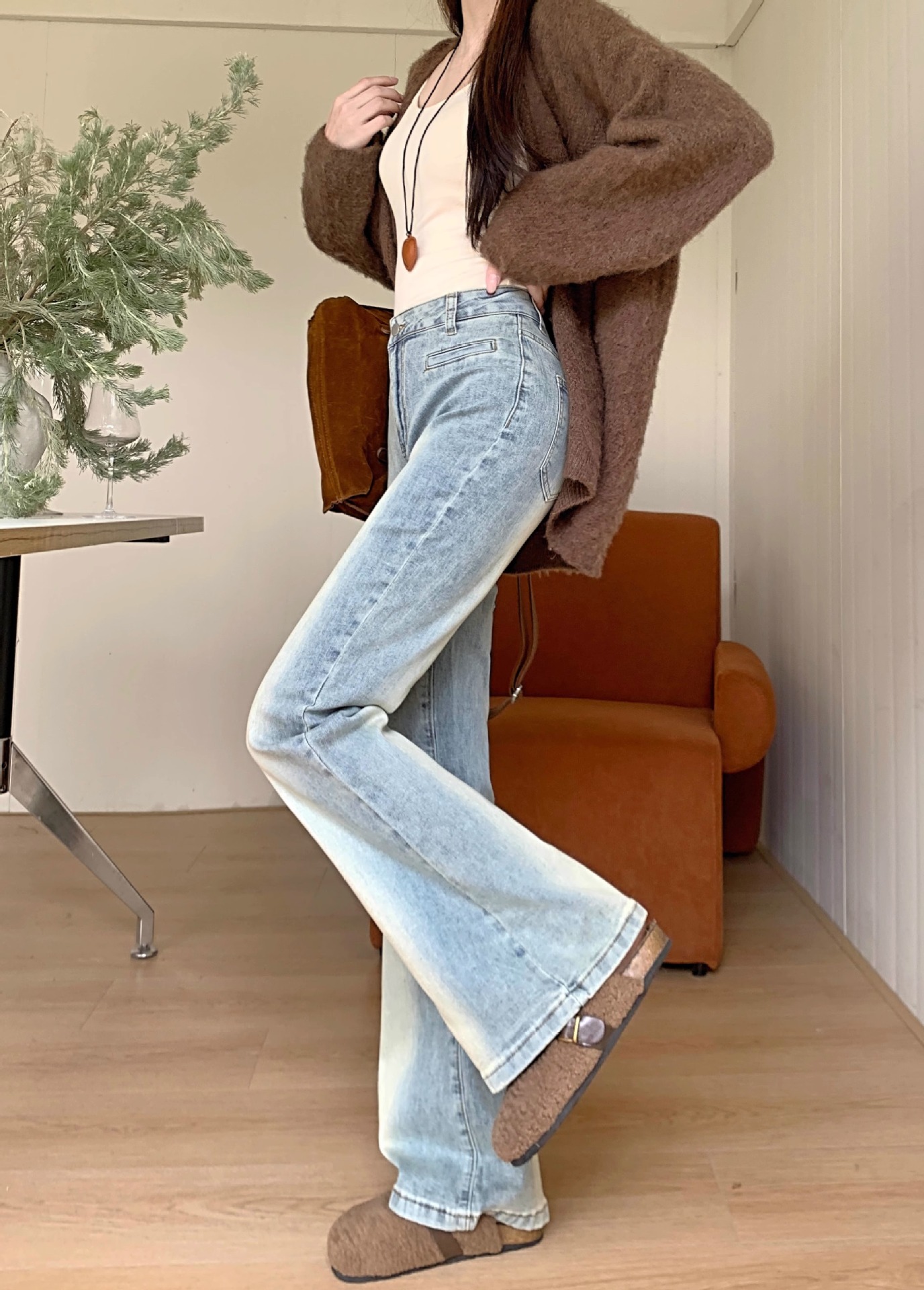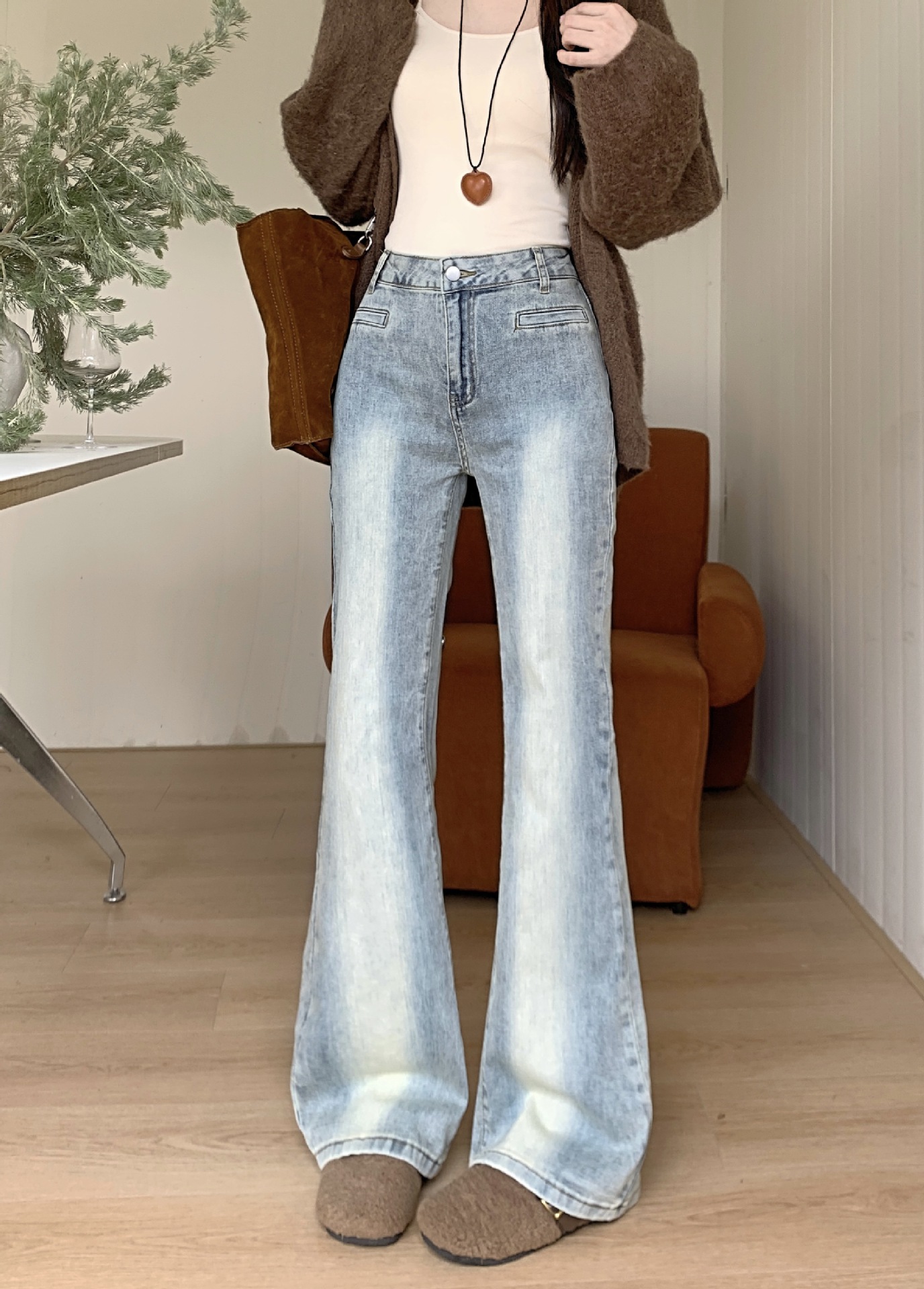 빈티지 화이트 높은 허리 스트레치 마이크로 청바지 2025 봄 새로운 도착 유행 여성을위한 모든 경기 슬리밍 말굽 바지스토어 가기
