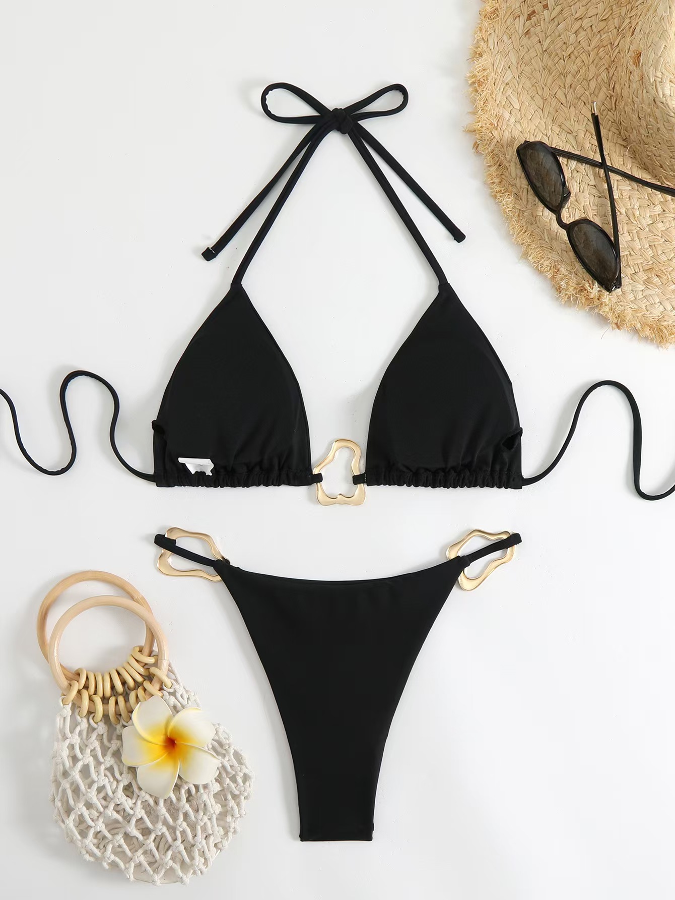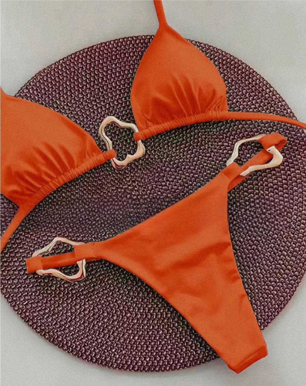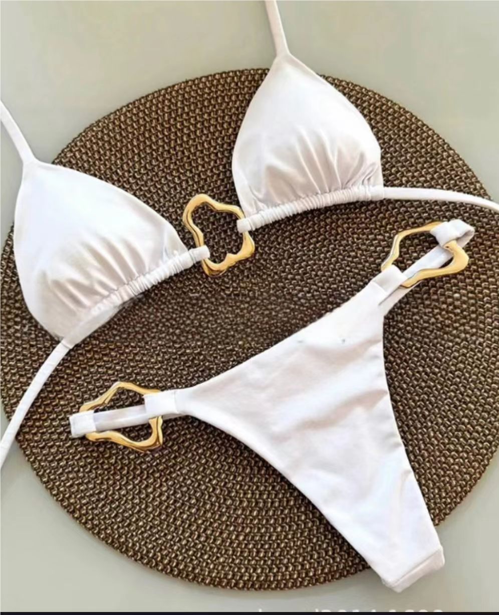 비키니 2024 새로운 대외 무역 비키니 섹시 유럽과 미국 금속 단색 국경 분할 여성 목 수영복