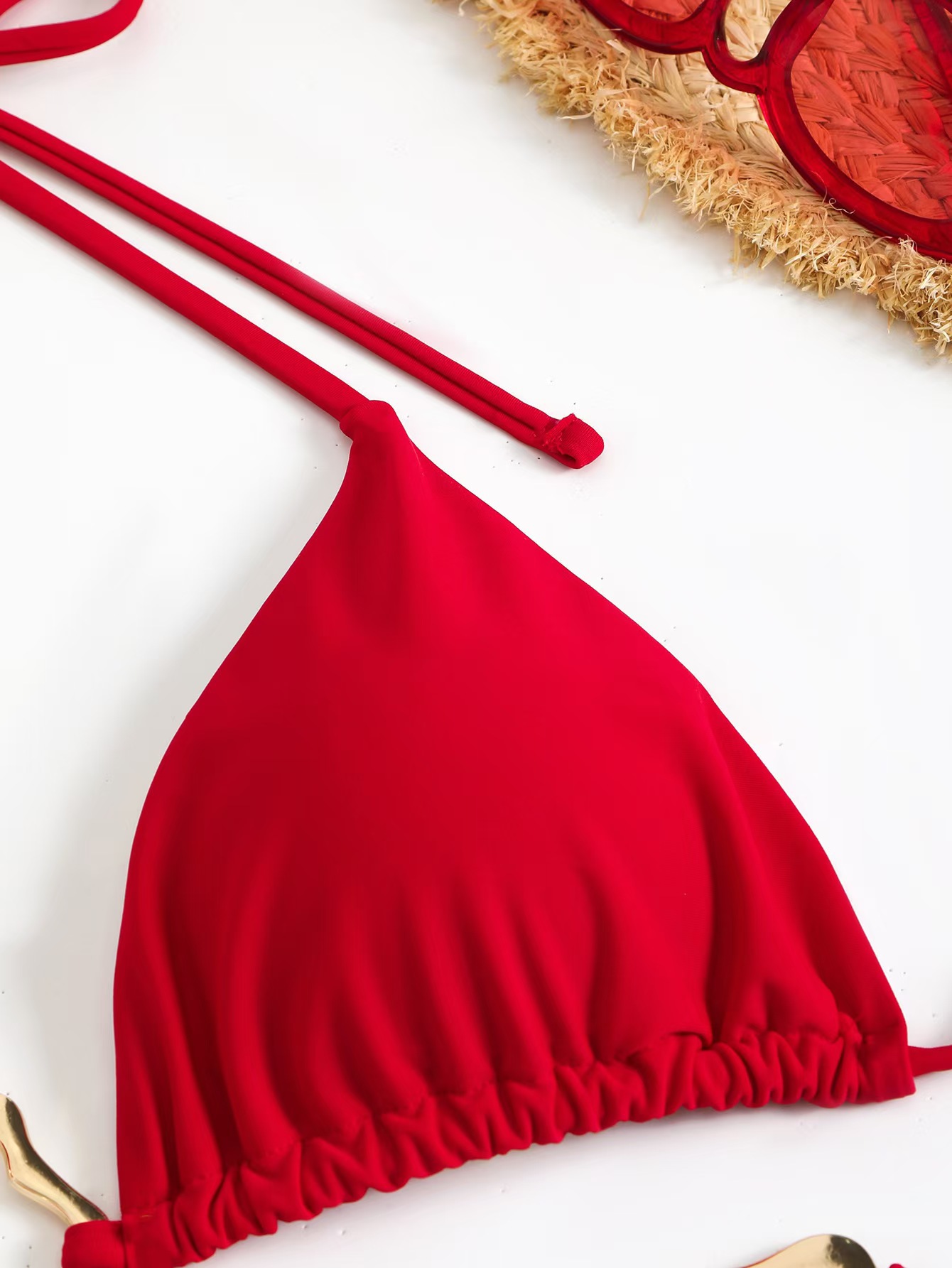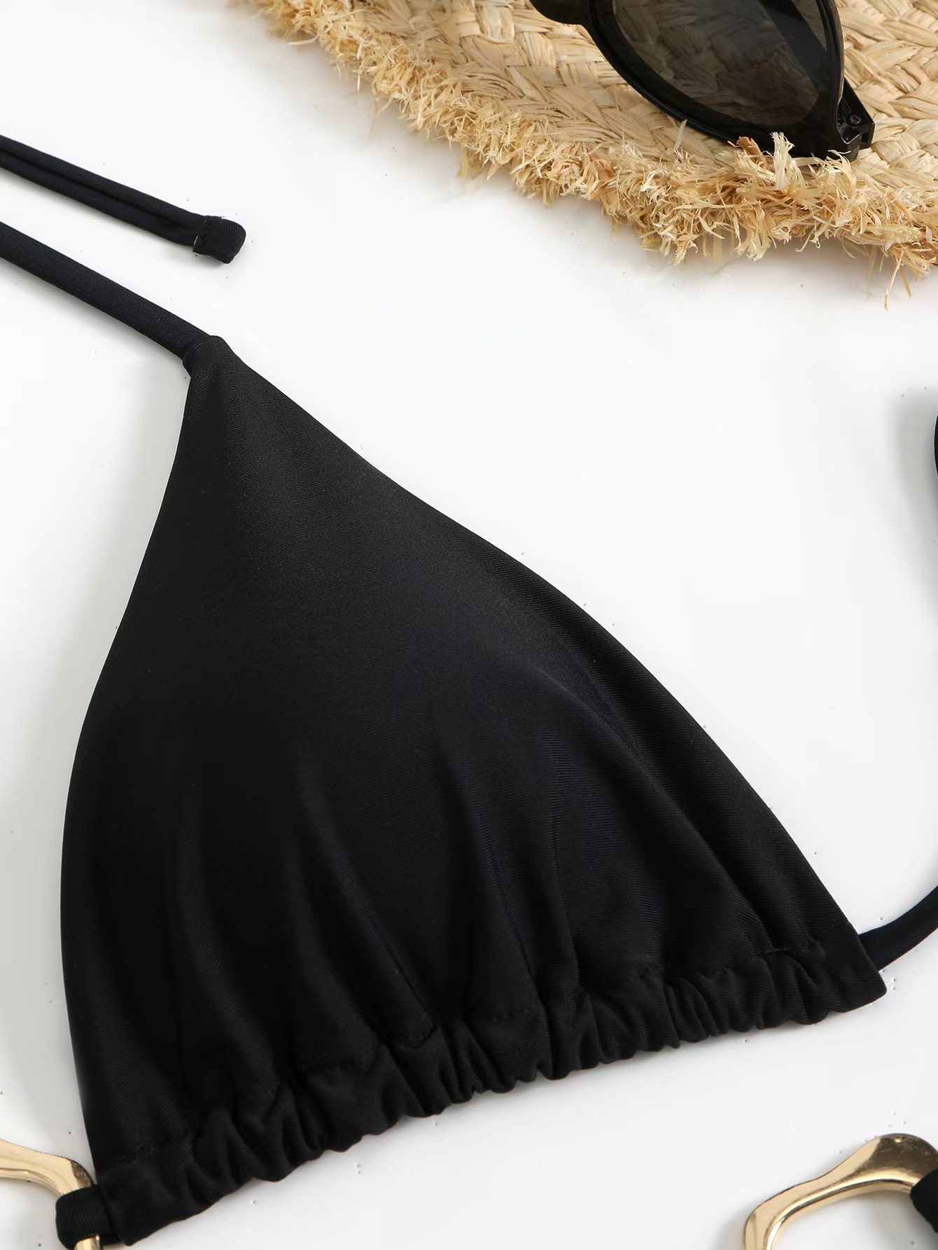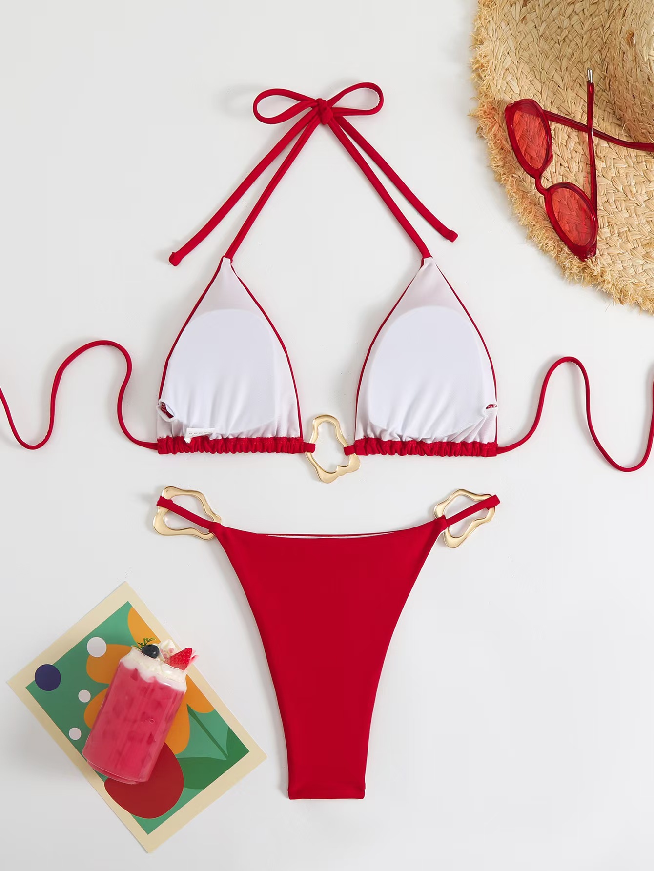 비키니 2024 새로운 대외 무역 비키니 섹시 유럽과 미국 금속 단색 국경 분할 여성 목 수영복