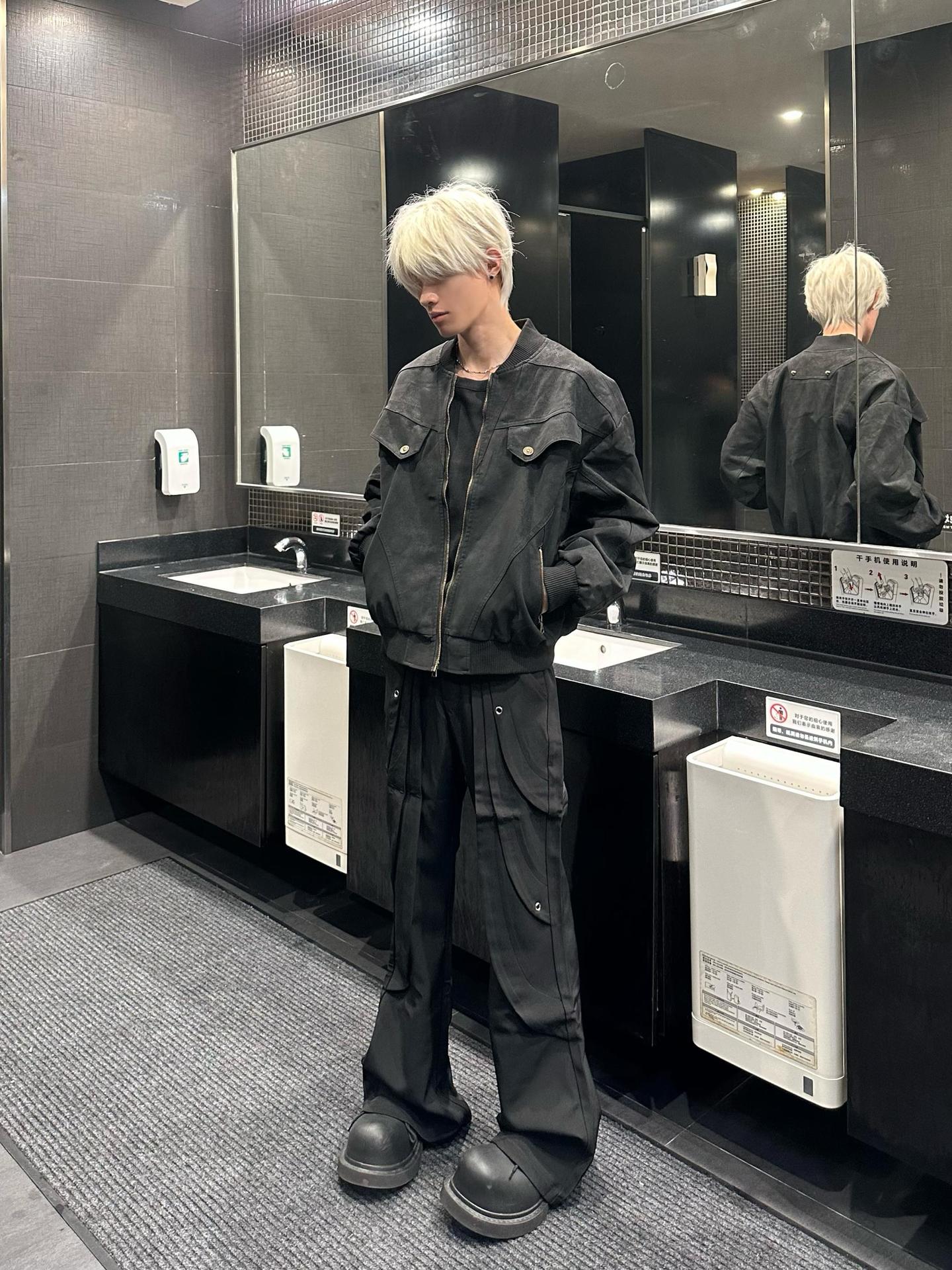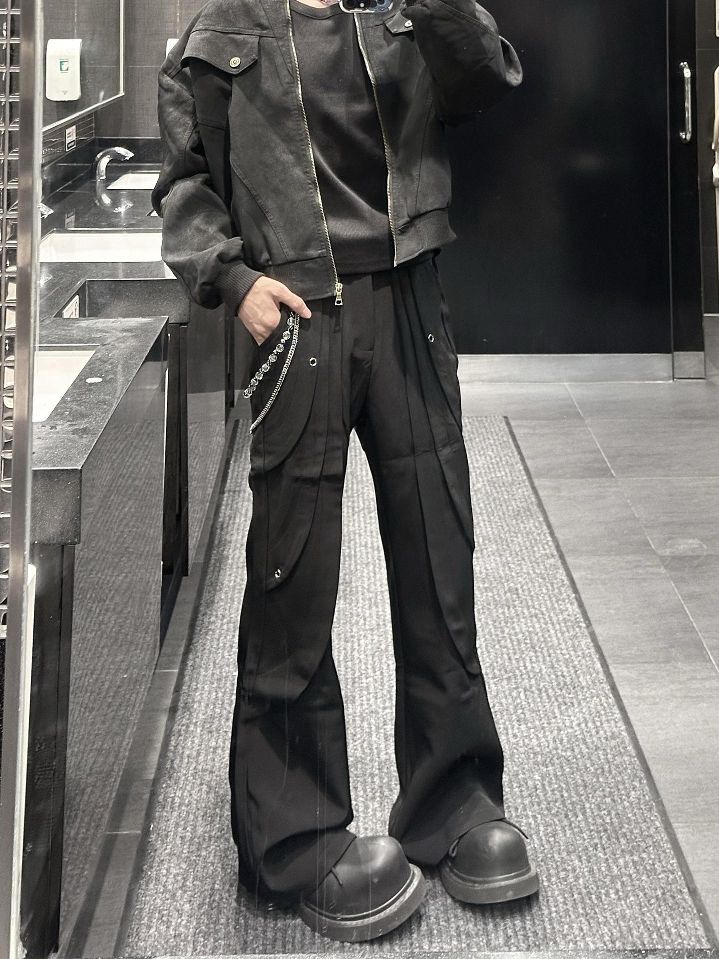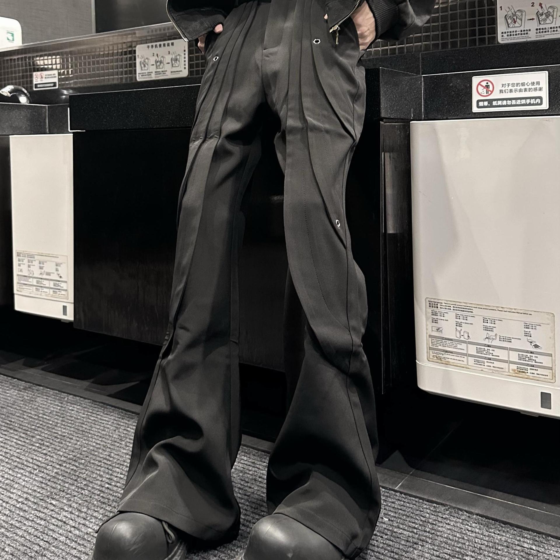 국립 고바야시 샤오종 수제 분할 해체 캐주얼 마이크로 혼 바지 무거운 캐주얼 바지 블랙 하이 허리 바지