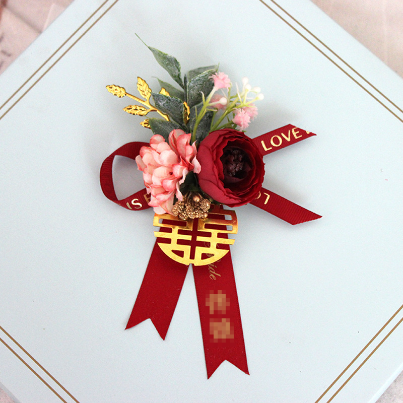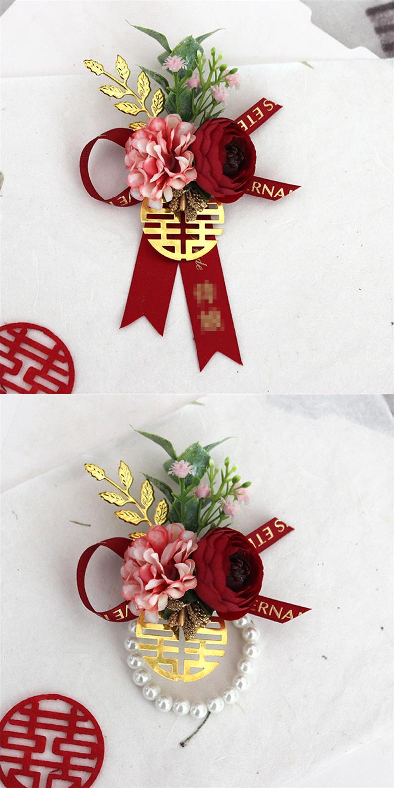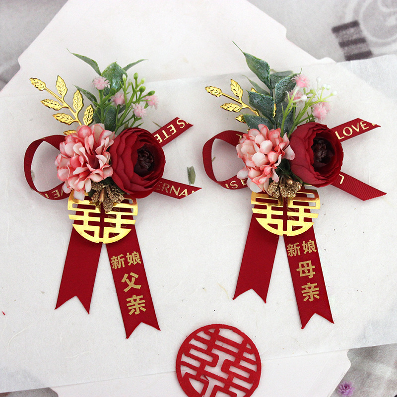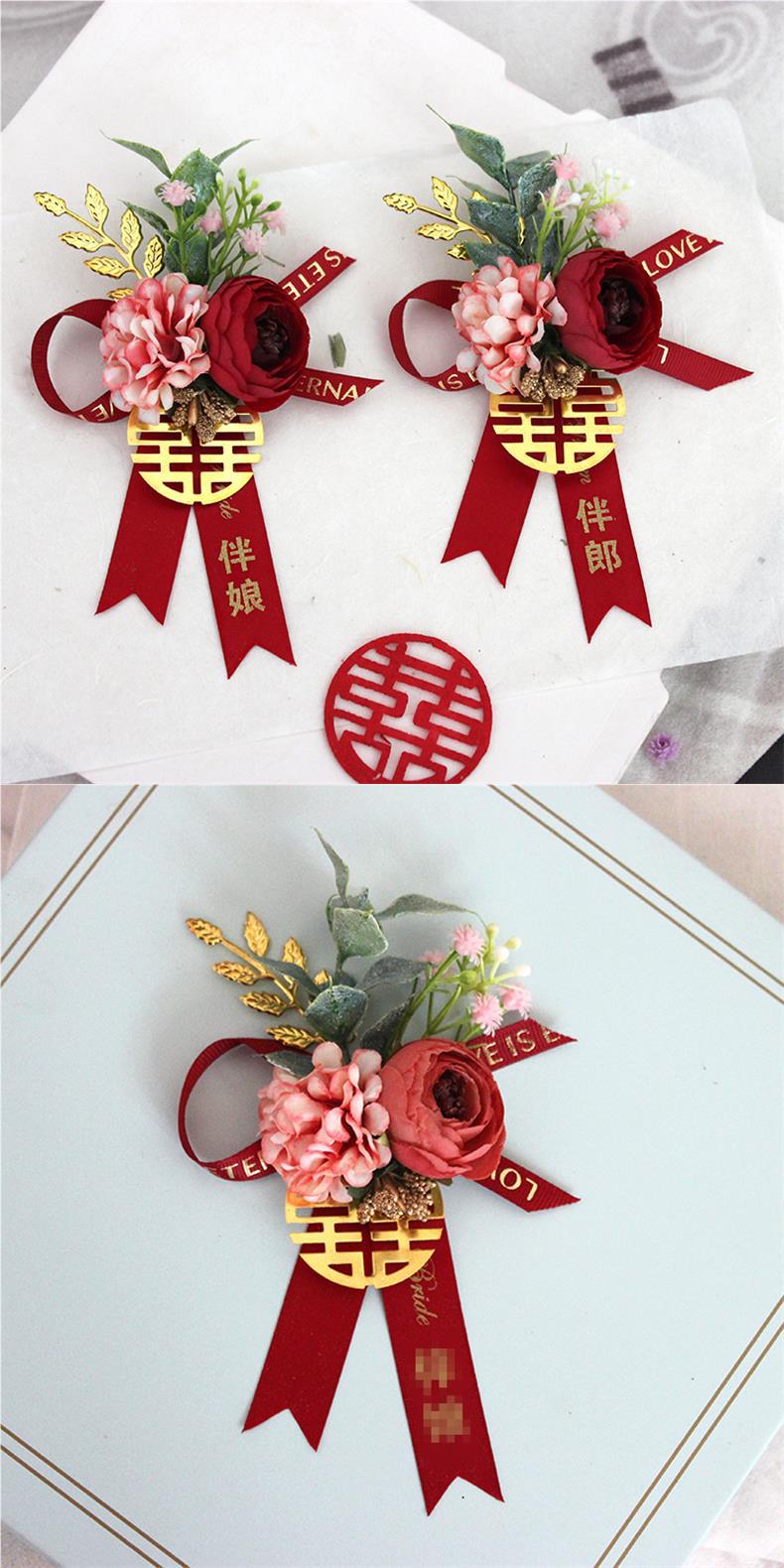 • 빨간색 코사지 한 쌍 + 빨간색 리본 비고 이름