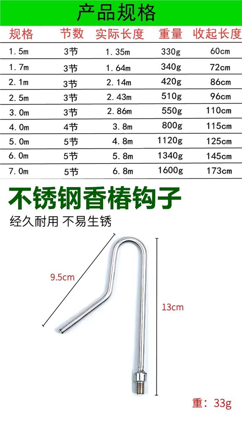 토온 후크 절단 Sophora japonica 후크 스테인레스 스틸 텔레스코픽 로드 피킹 도구 메쉬 다기능 하푼로드