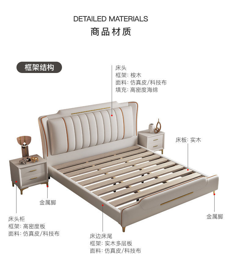 현대 가죽 간단한 마스터 침실 대기 가죽 침대 1.5 m 1.8 m 마스터 침실 더블 침대 웨딩 침대 세탁-무료 기술 천 침대