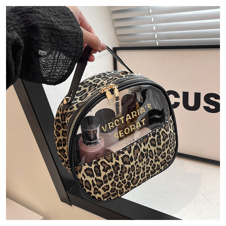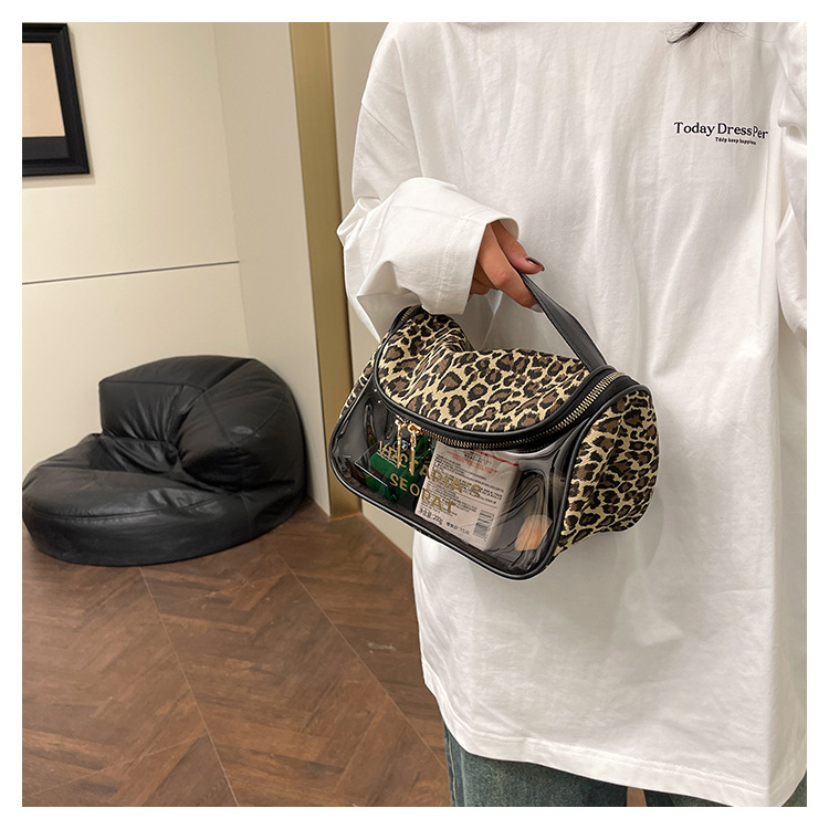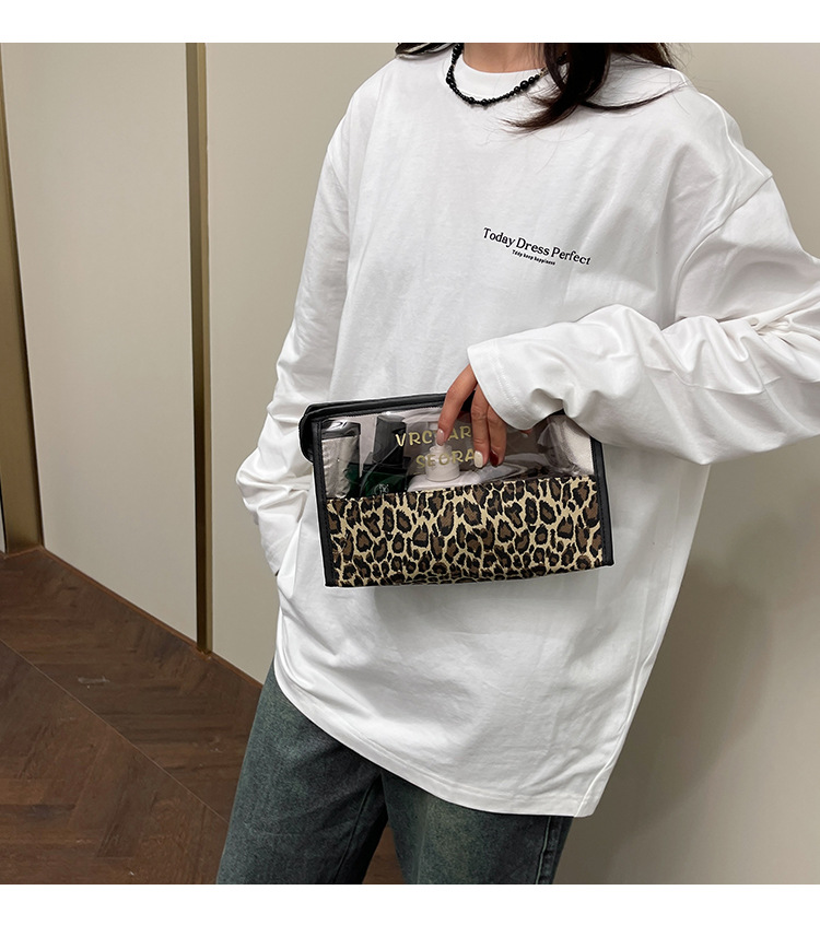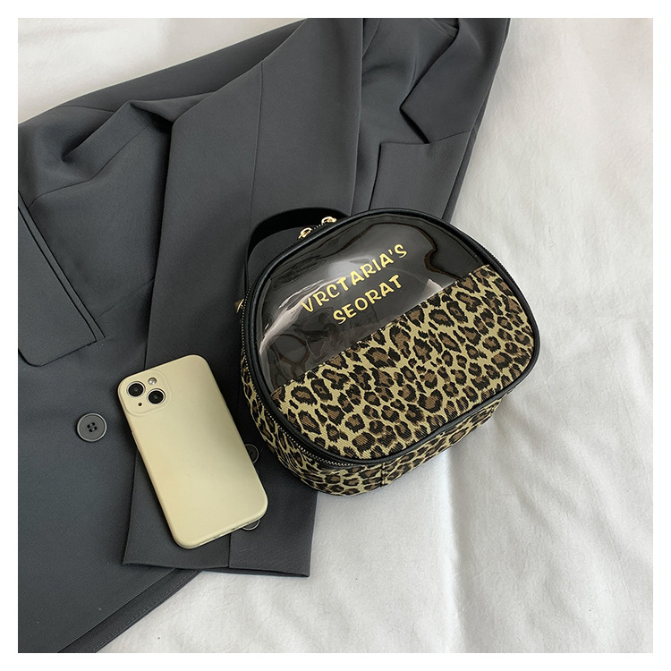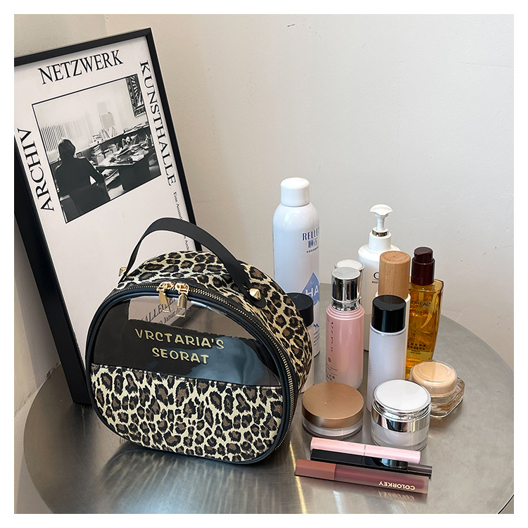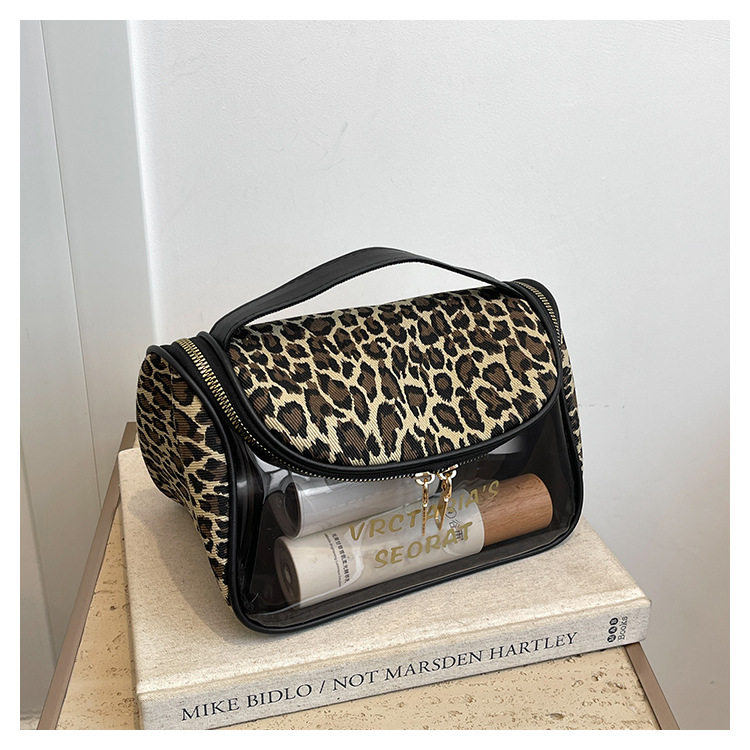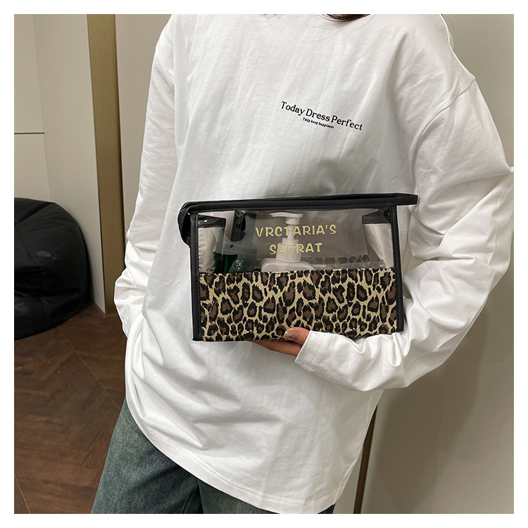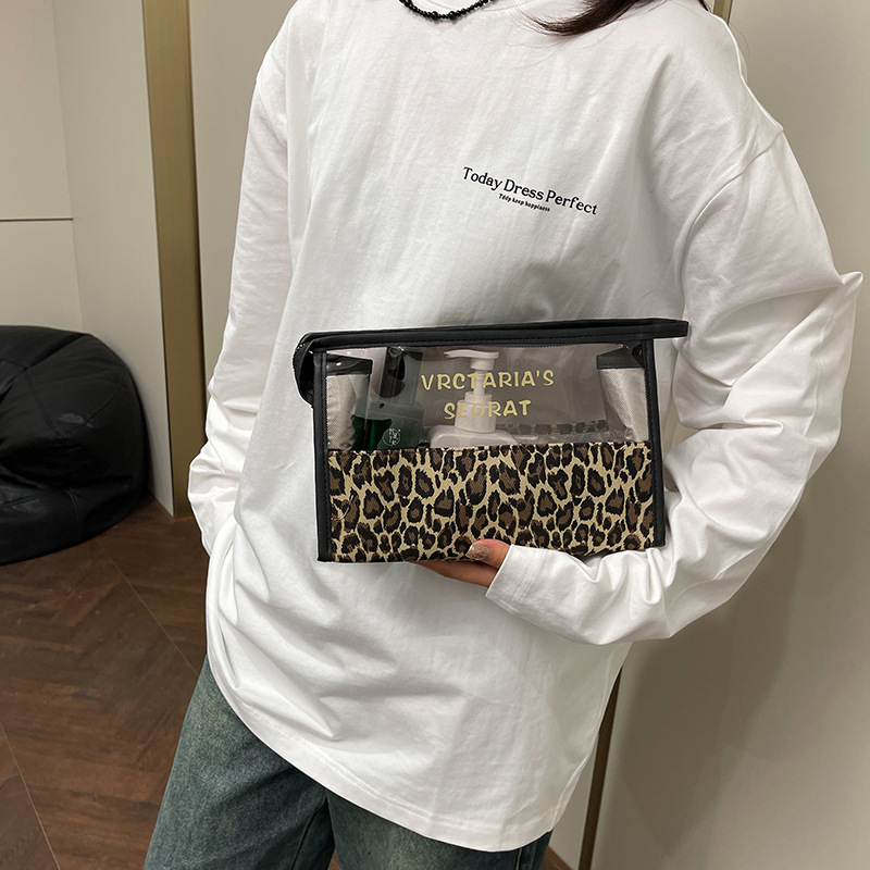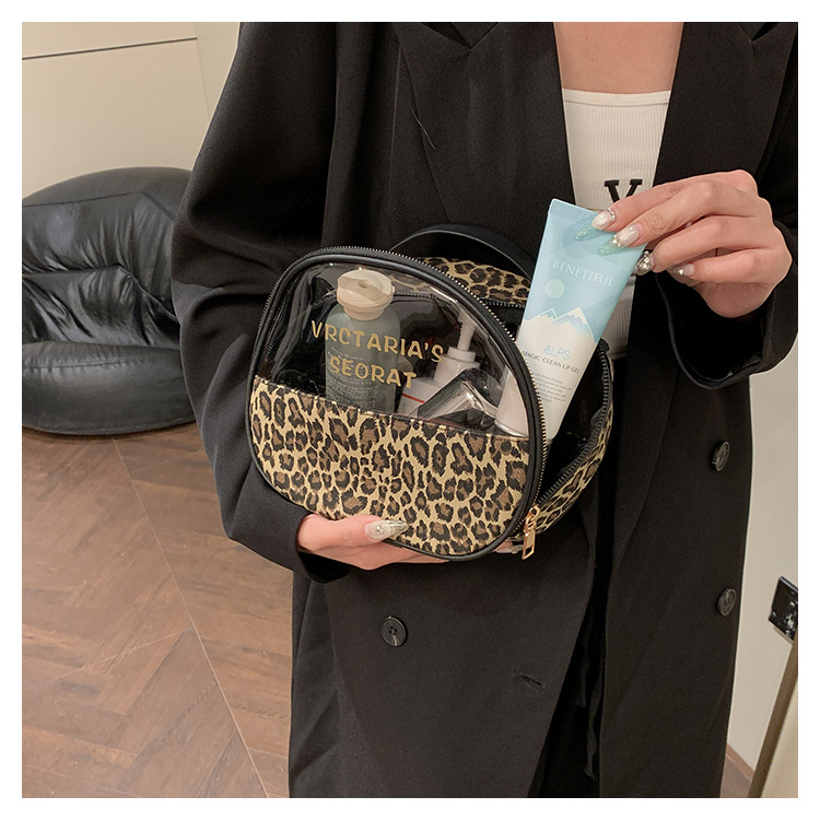 한국식 휴대용 패션 레오파드 무늬 반투명 휴대용 화장실 가방 화장품 가방 휴대용 화장품 가방 통근 가방스토어 가기
