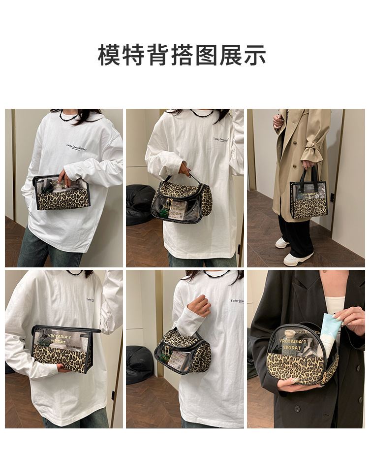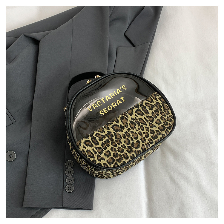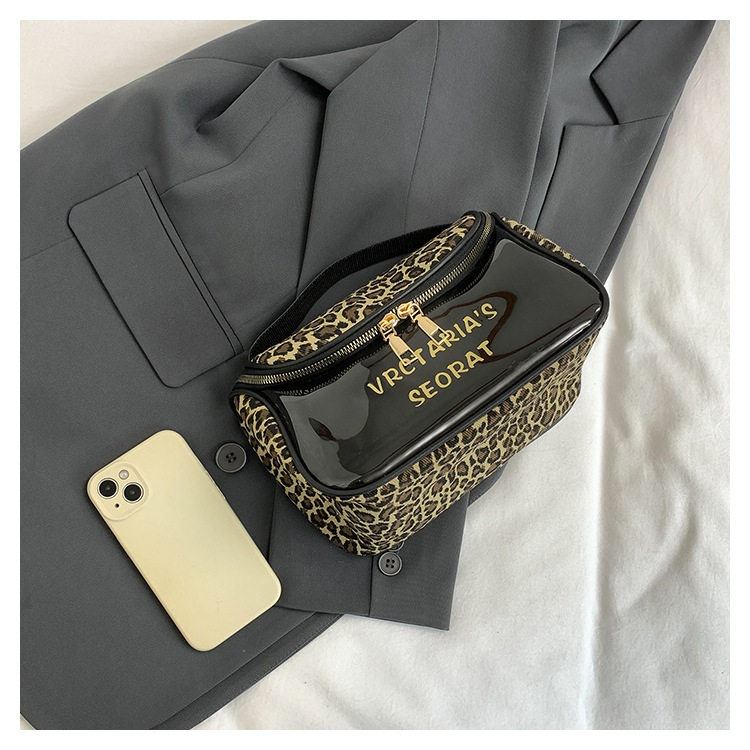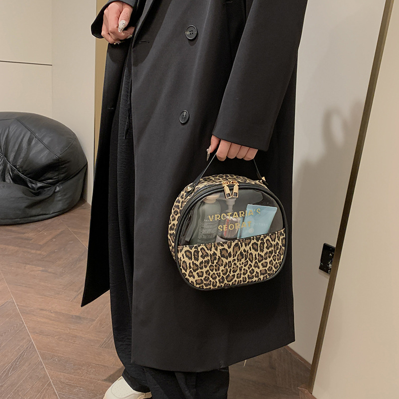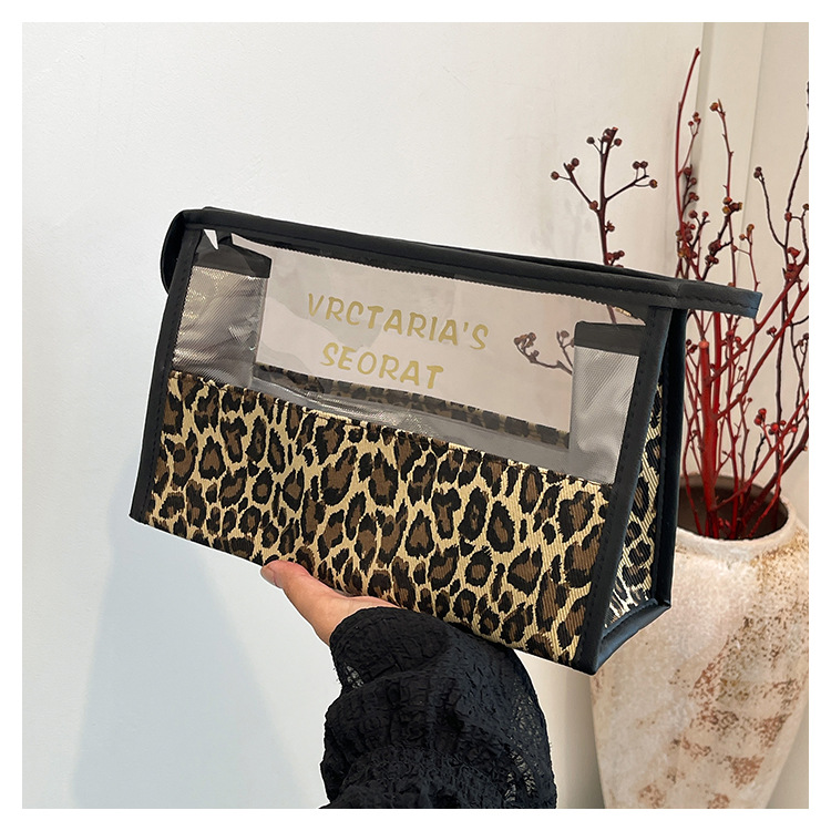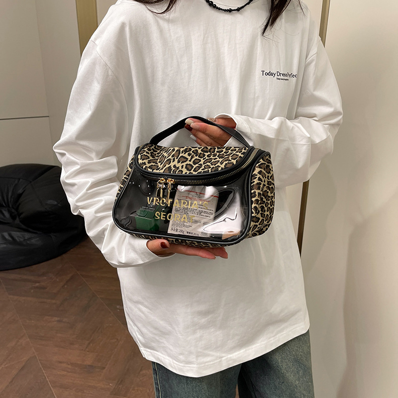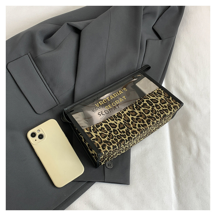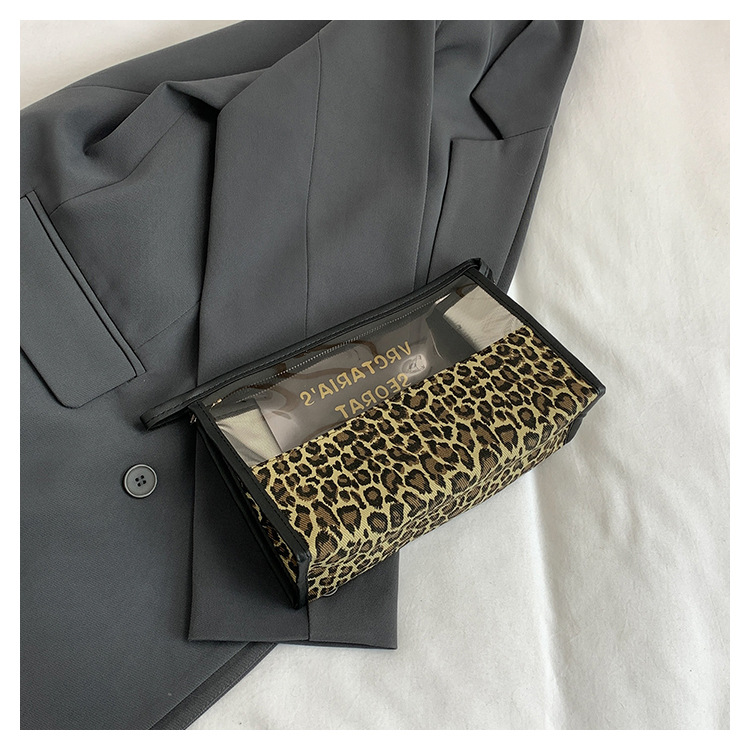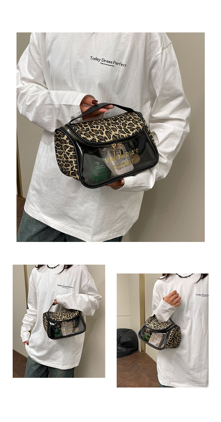 한국식 휴대용 패션 레오파드 무늬 반투명 휴대용 화장실 가방 화장품 가방 휴대용 화장품 가방 통근 가방스토어 가기