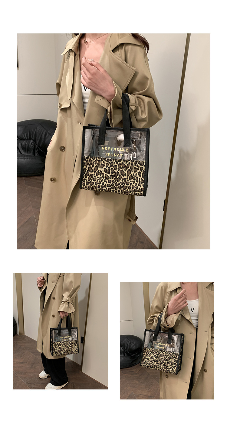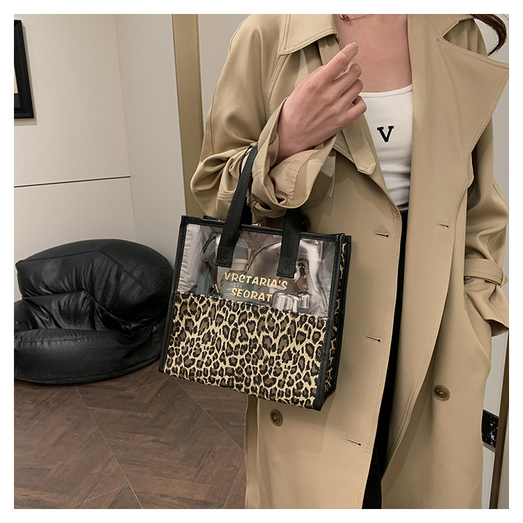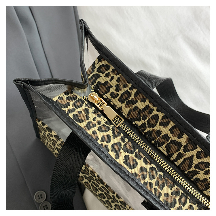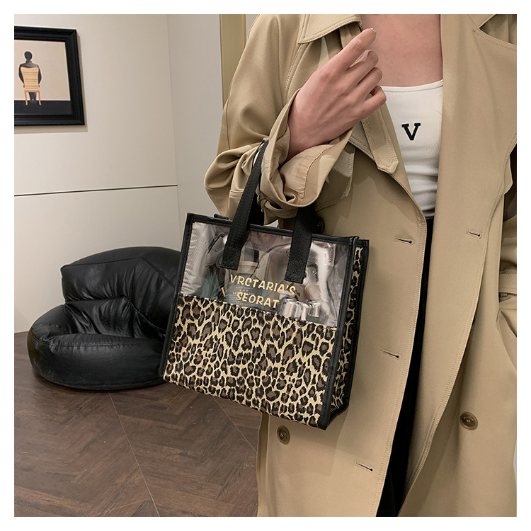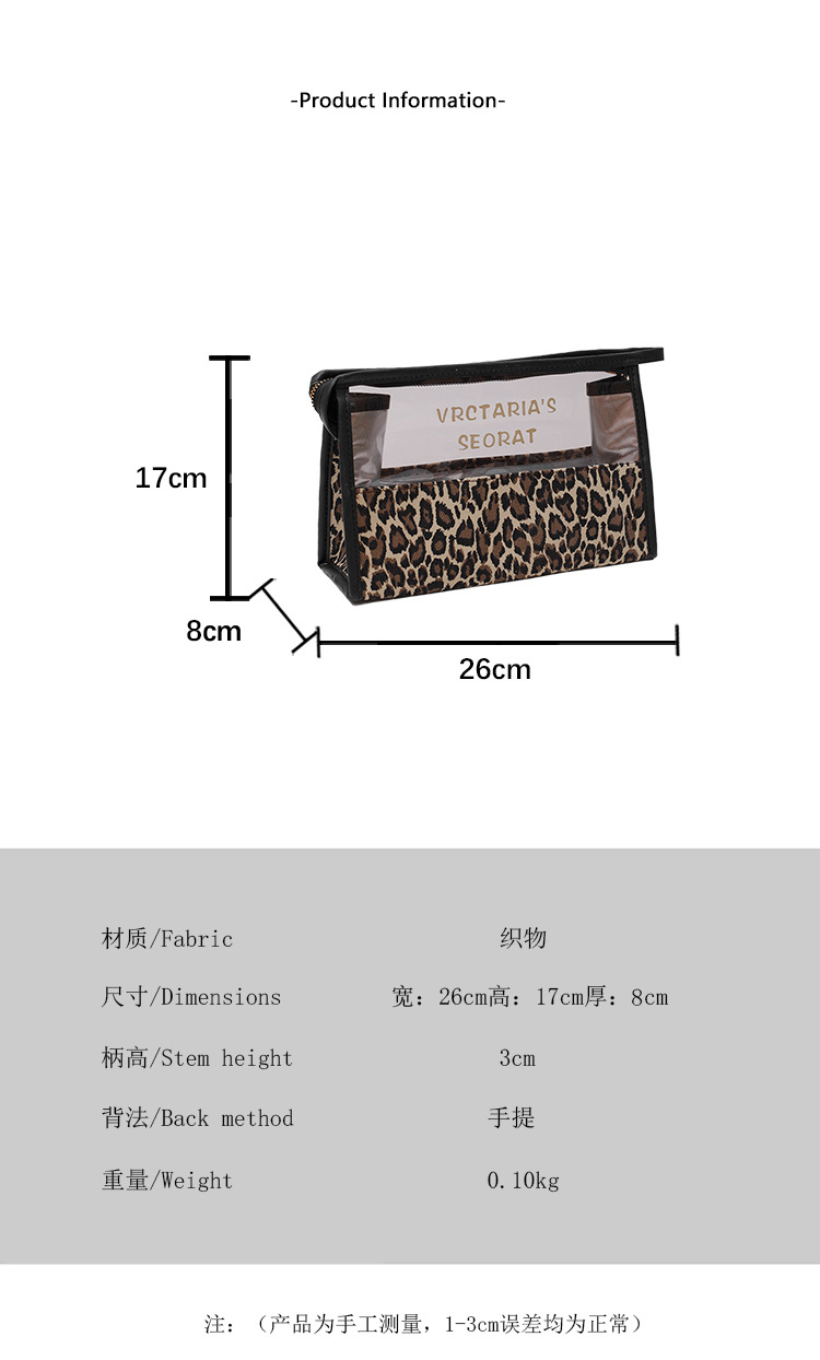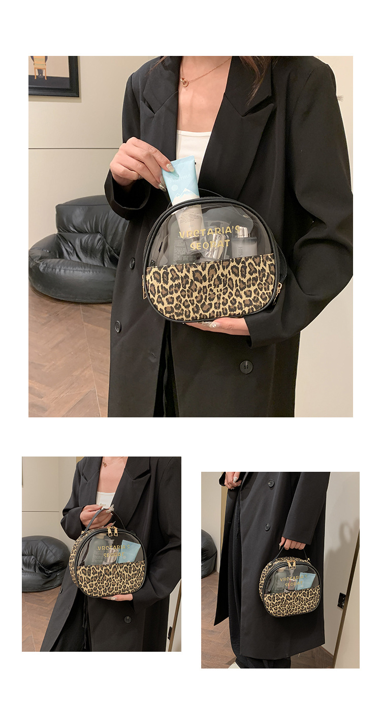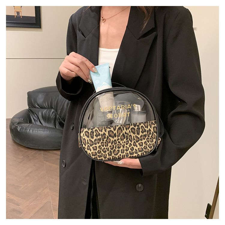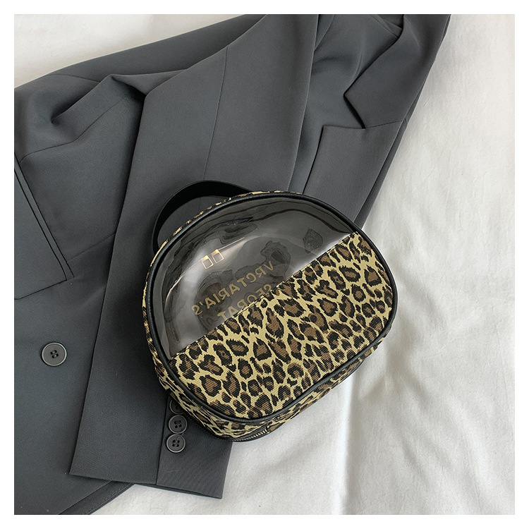 한국식 휴대용 패션 레오파드 무늬 반투명 휴대용 화장실 가방 화장품 가방 휴대용 화장품 가방 통근 가방스토어 가기
