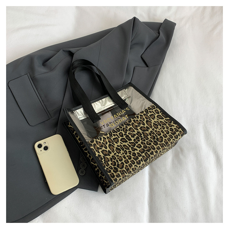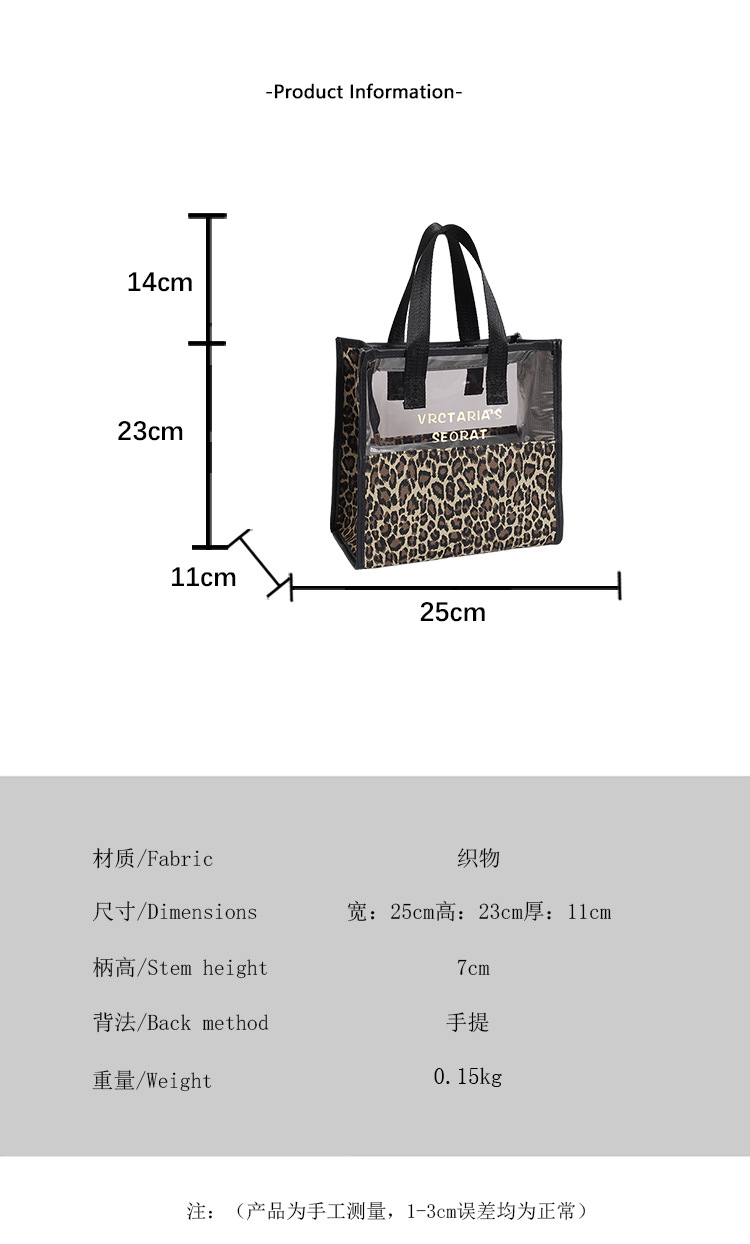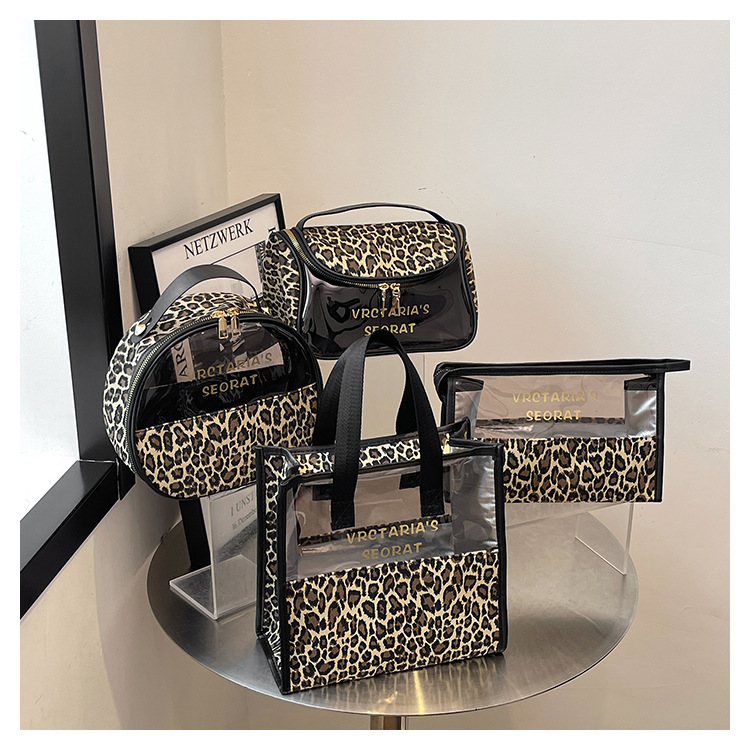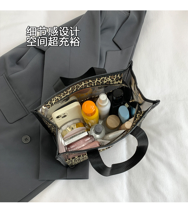한국식 휴대용 패션 레오파드 무늬 반투명 휴대용 화장실 가방 화장품 가방 휴대용 화장품 가방 통근 가방