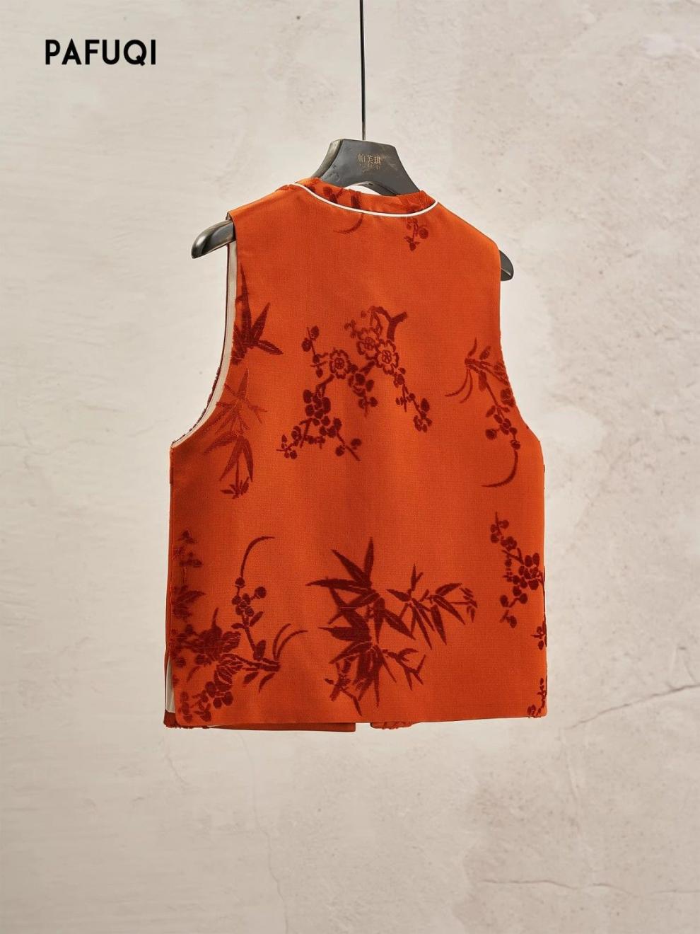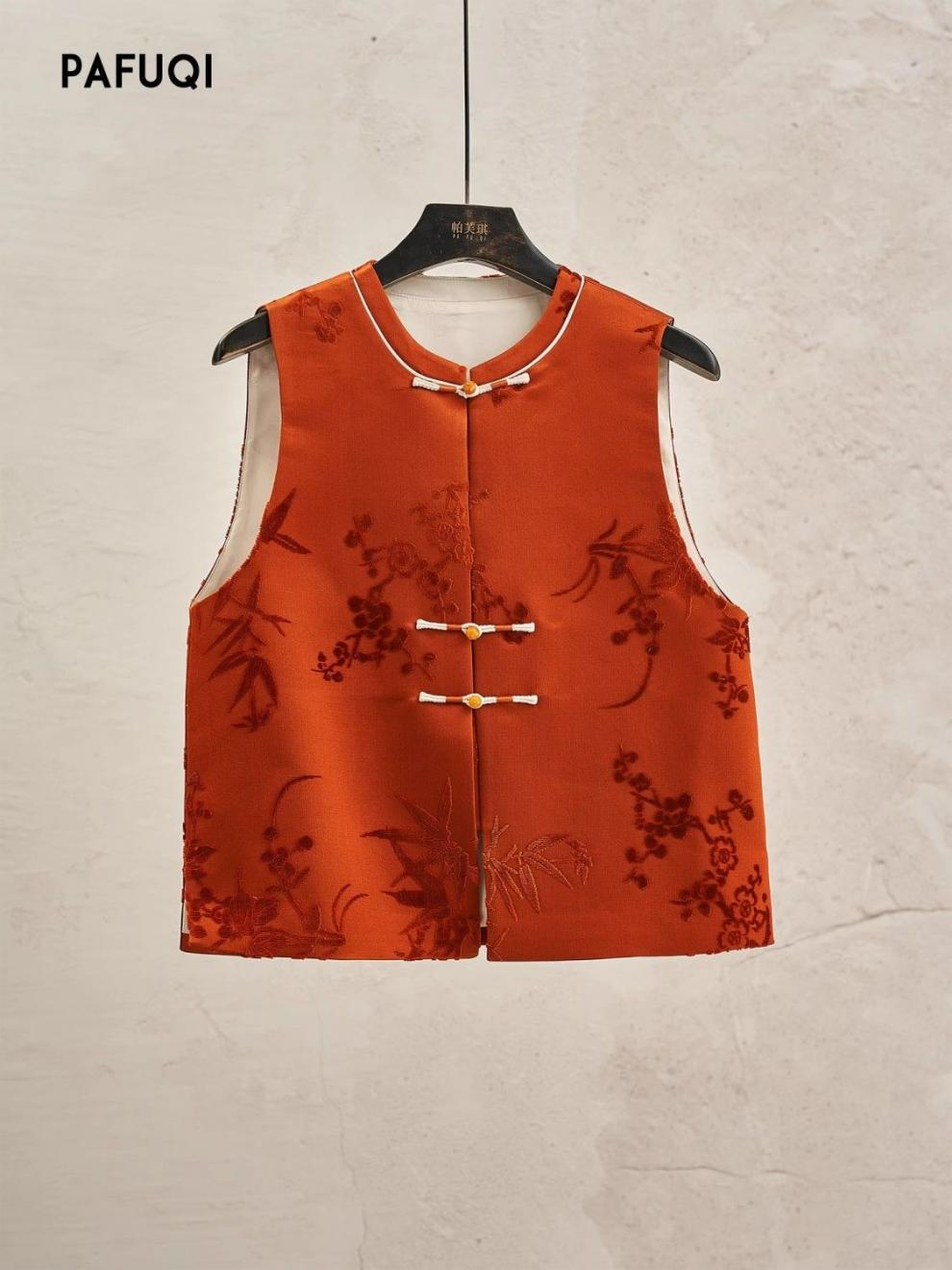 가게 주인은 새로운 중국 스타일의 빛 국가 스타일 2025 봄 여성의 아름다운 버클 양복 조끼 느슨한 프로필을 빨간색으로 접었습니다.스토어 가기
