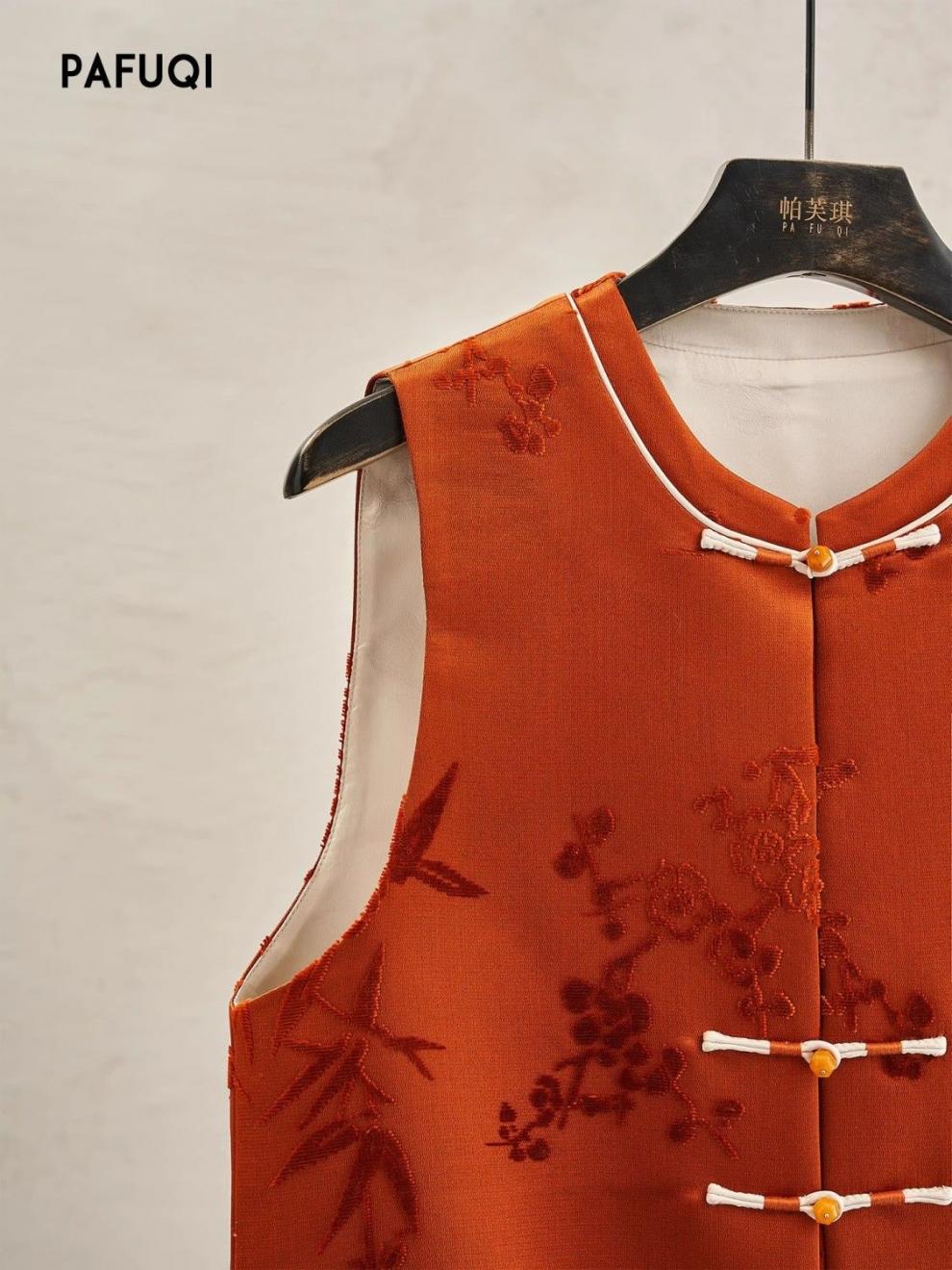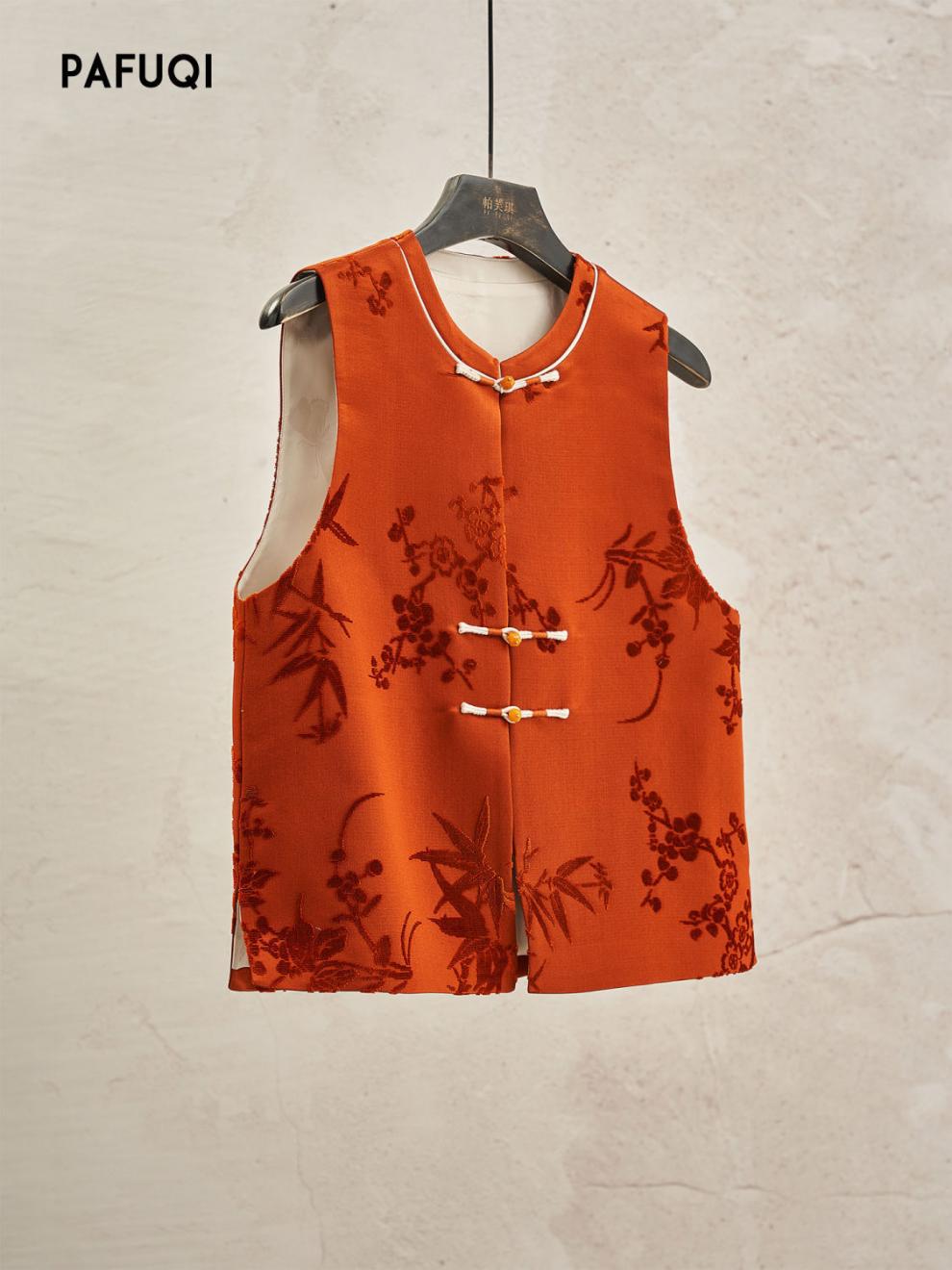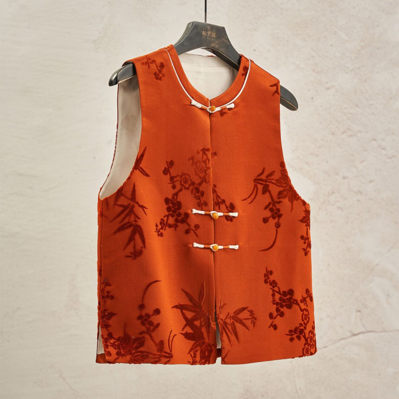 가게 주인은 새로운 중국 스타일의 빛 국가 스타일 2025 봄 여성의 아름다운 버클 양복 조끼 느슨한 프로필을 빨간색으로 접었습니다.
