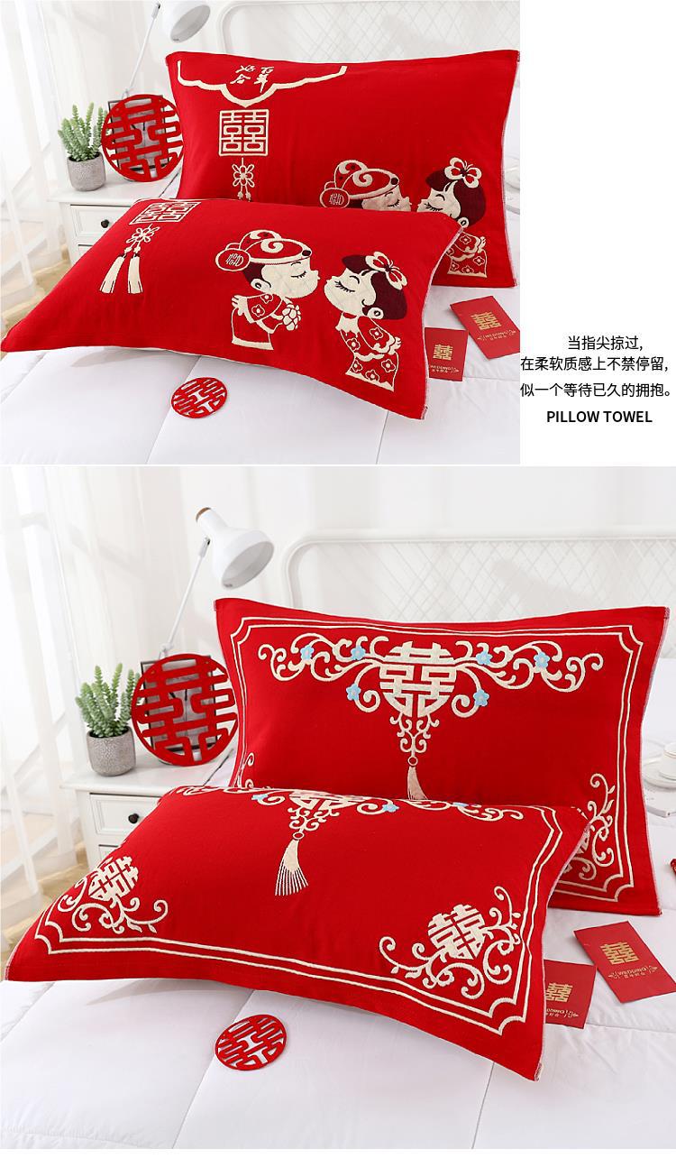 웨딩 레드 베개 타월 빨간면 거즈 커플 베개 터번 선물이 떨어지지 않음