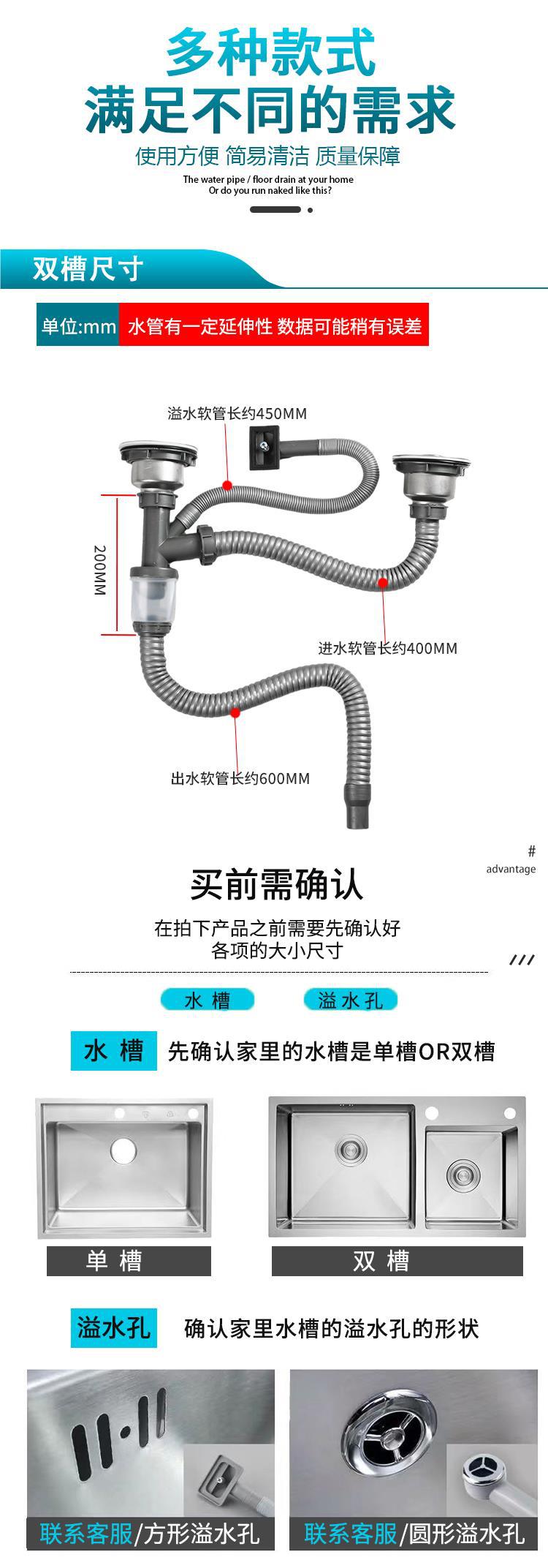 주방 스테인레스 스틸 야채 세척 분지 배수 파이프 액세서리 싱크 싱글 슬롯 더블 슬롯 탈취제 파이프 배수 세트스토어 가기