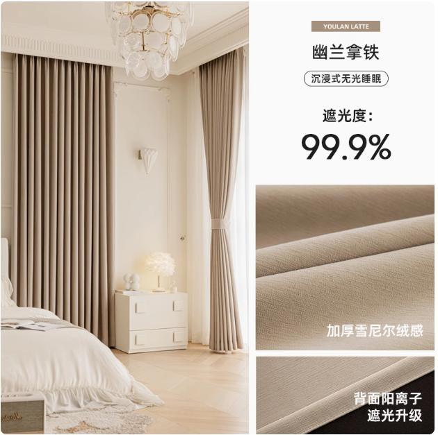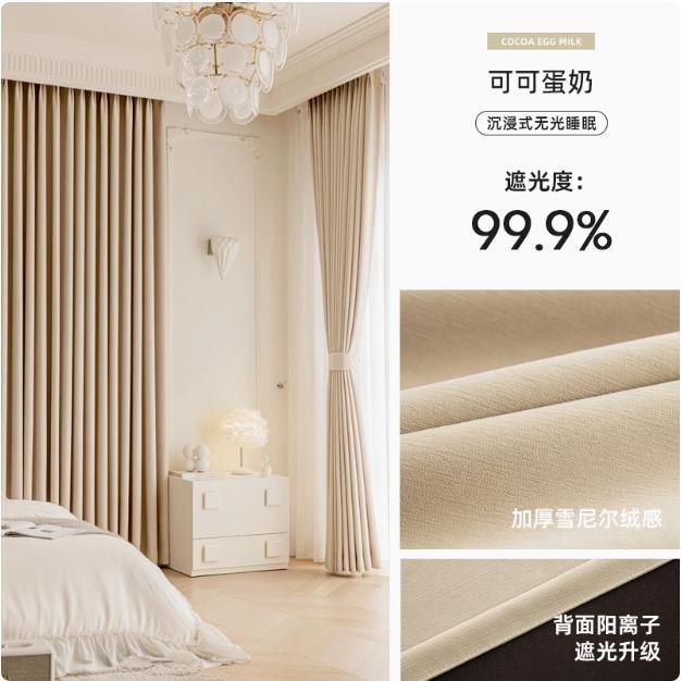 공장 직배송 침실 커튼, 완전 암막 셔닐 거실 커튼, 쇼핑 도매 크림 스타일 완전 암막 화이트 커튼스토어 가기