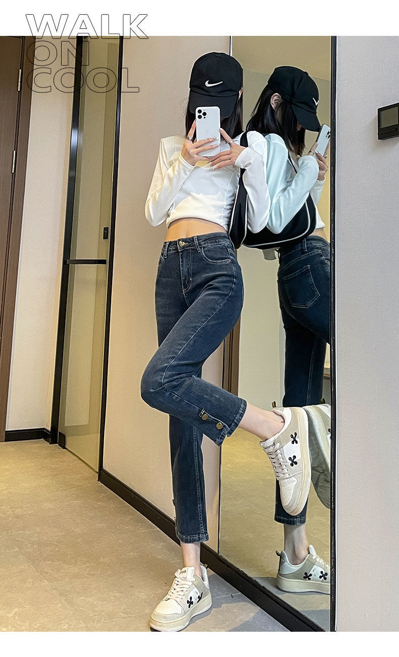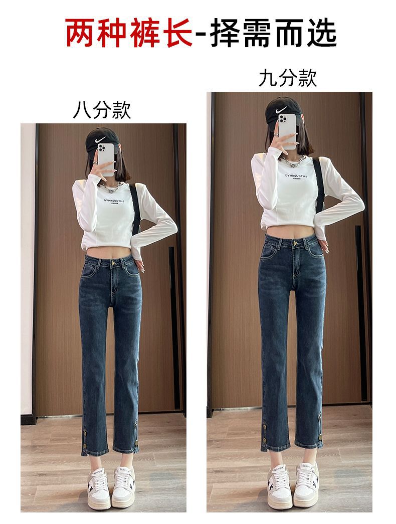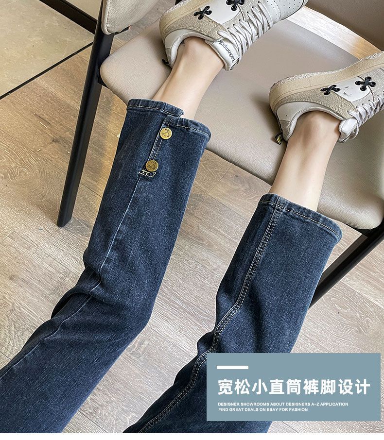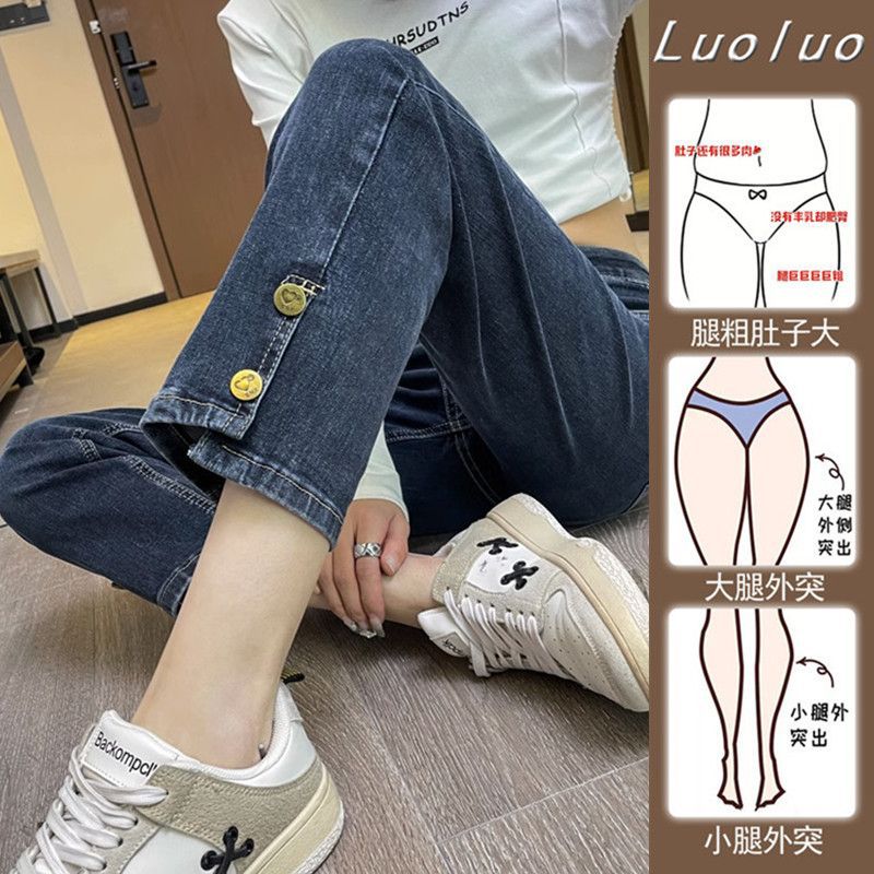 플러스 사이즈 통통녀 스트레이트 청바지 여성의 봄과 가을 2025 새로운 높은 허리 슬리밍 자른 연기 튜브 팬츠 트렌디스토어 가기