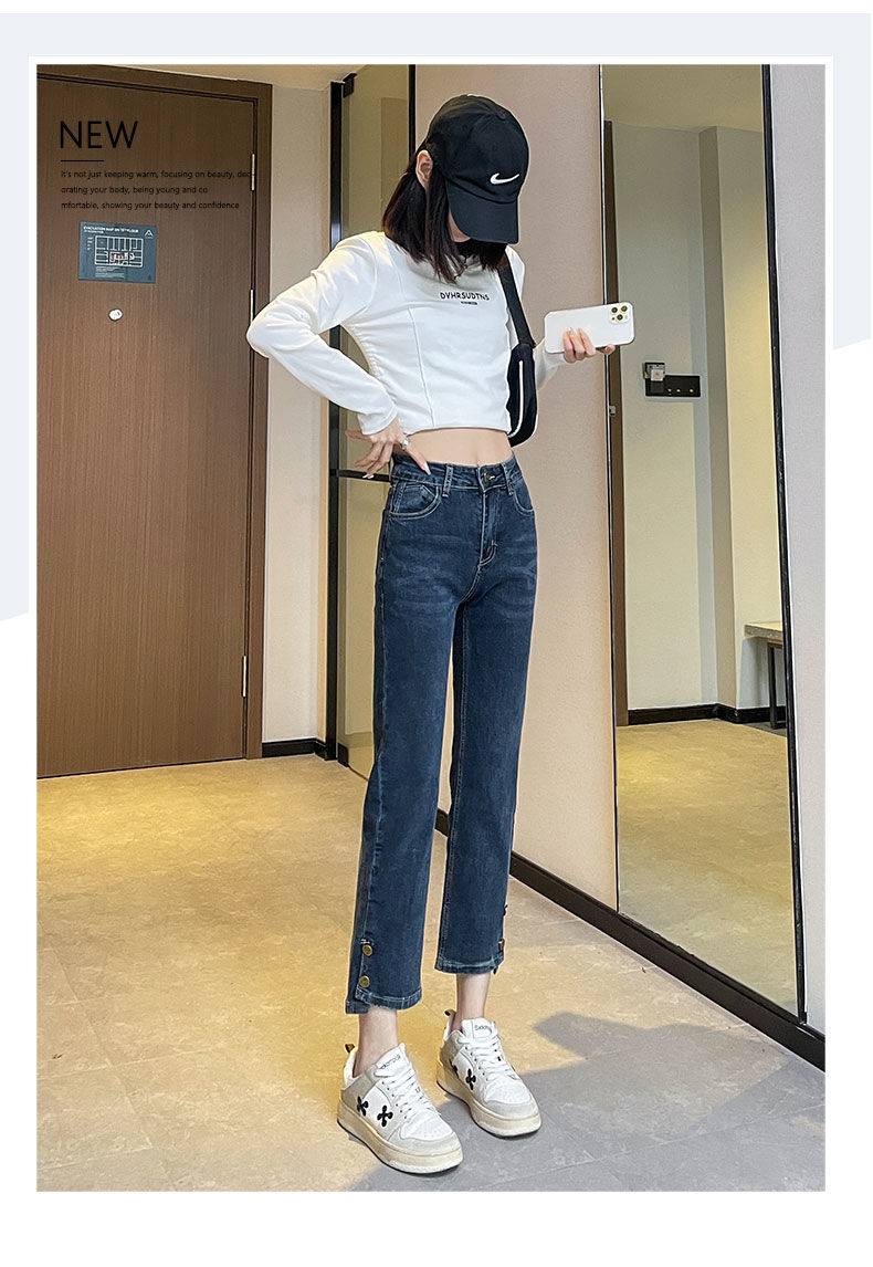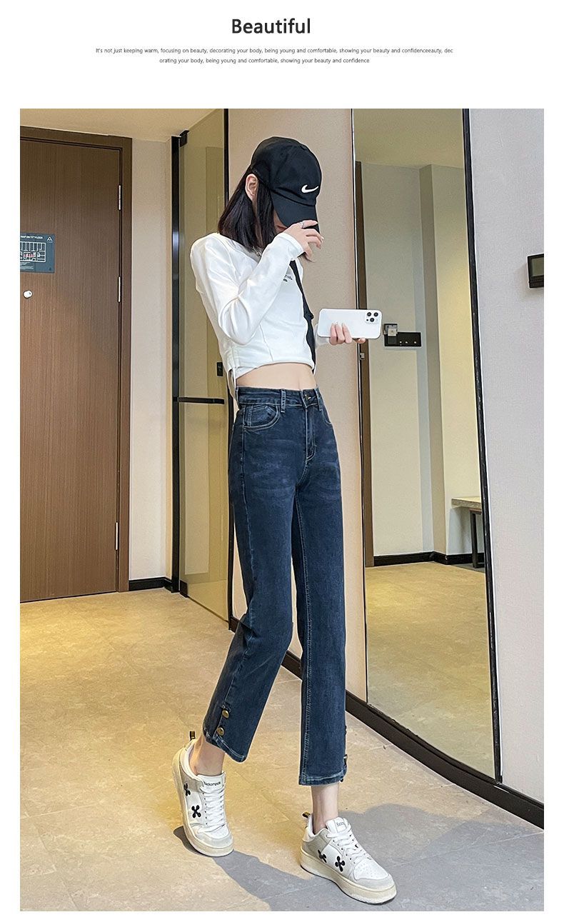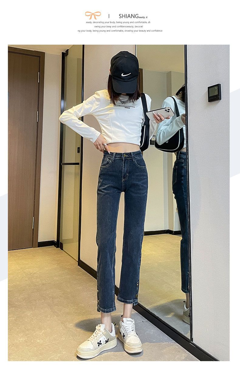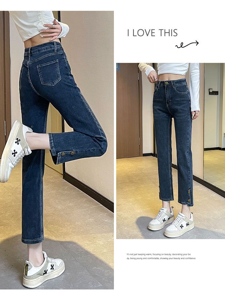 플러스 사이즈 통통녀 스트레이트 청바지 여성의 봄과 가을 2025 새로운 높은 허리 슬리밍 자른 연기 튜브 팬츠 트렌디스토어 가기