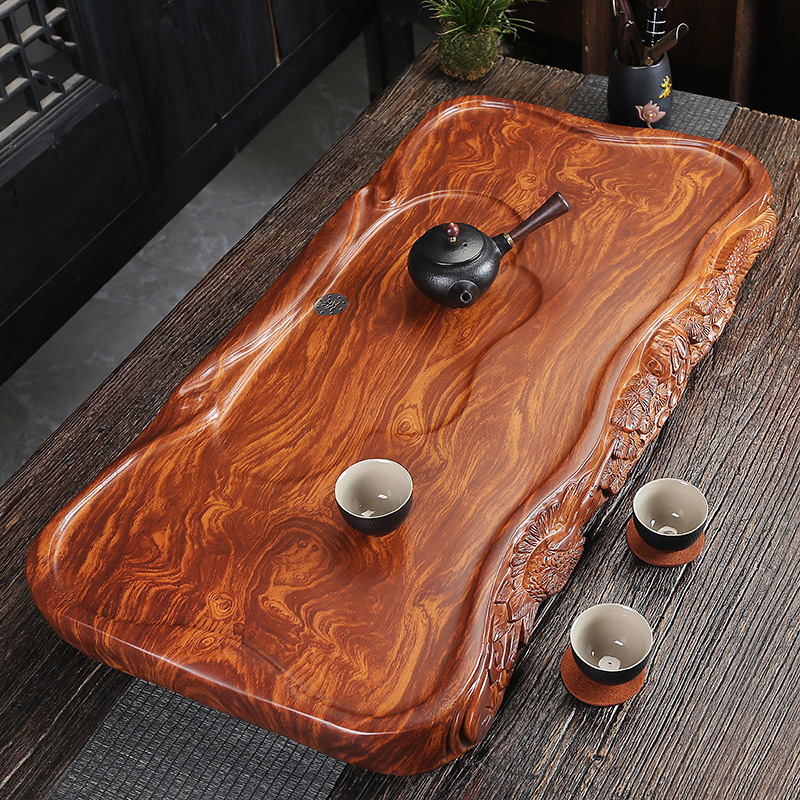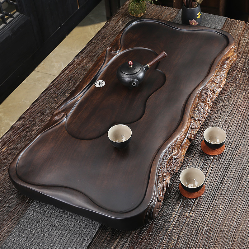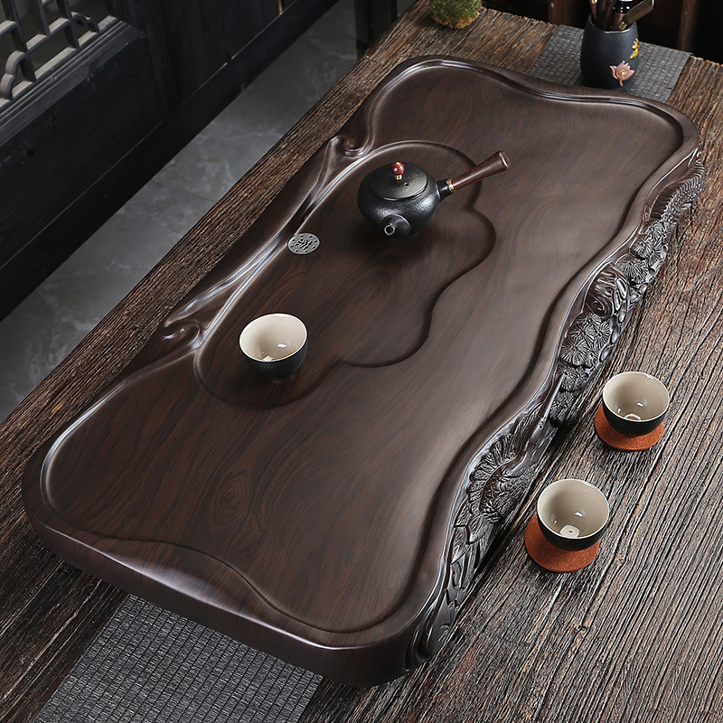 차 쟁반 홈 2024 새로운 스타일 빛 고급 고급 고급 전체 에보니 패턴 차 차 테이블 큰 단단한 나무 꽃 배 패턴 트레이