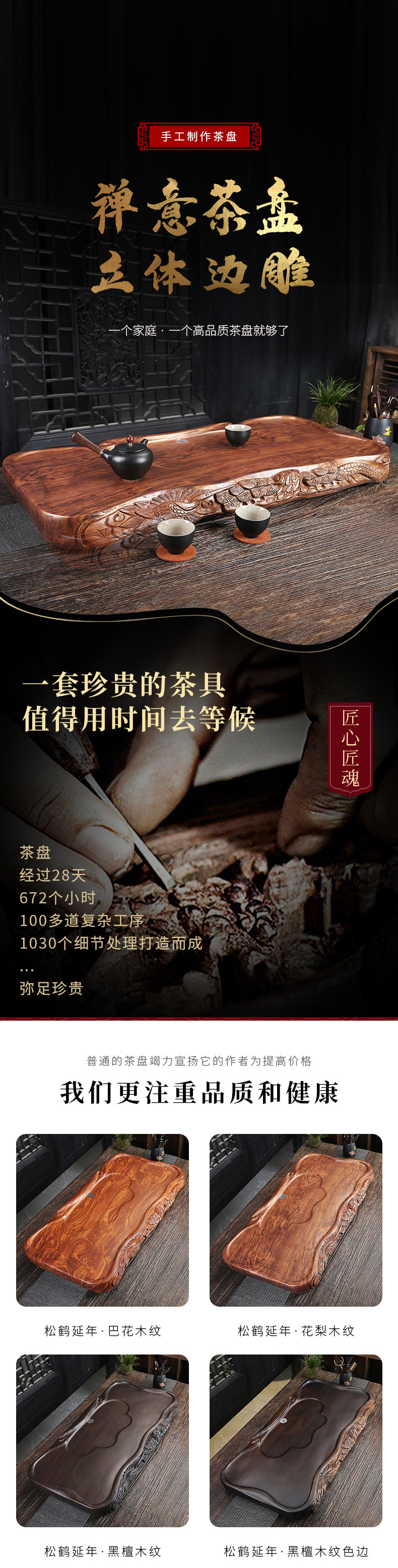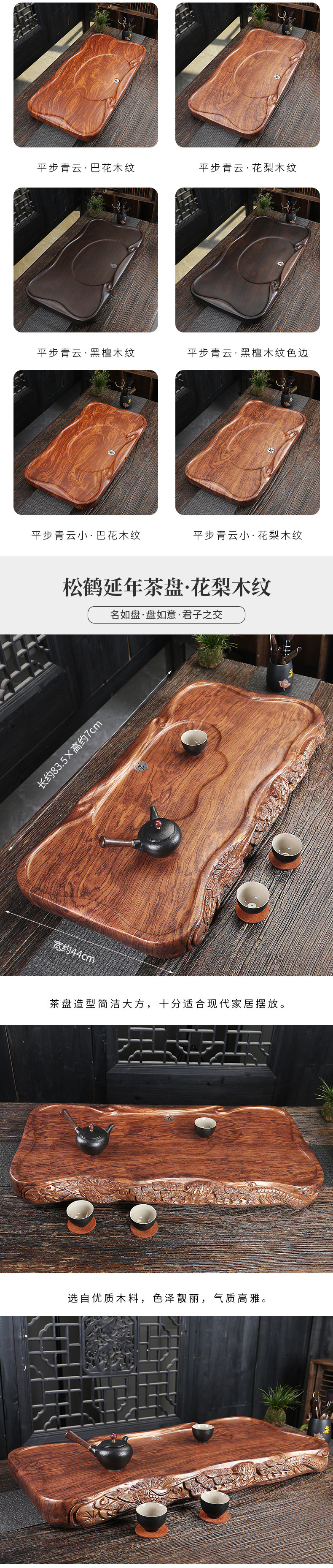 차 쟁반 홈 2024 새로운 스타일 빛 고급 고급 고급 전체 에보니 패턴 차 차 테이블 큰 단단한 나무 꽃 배 패턴 트레이스토어 가기