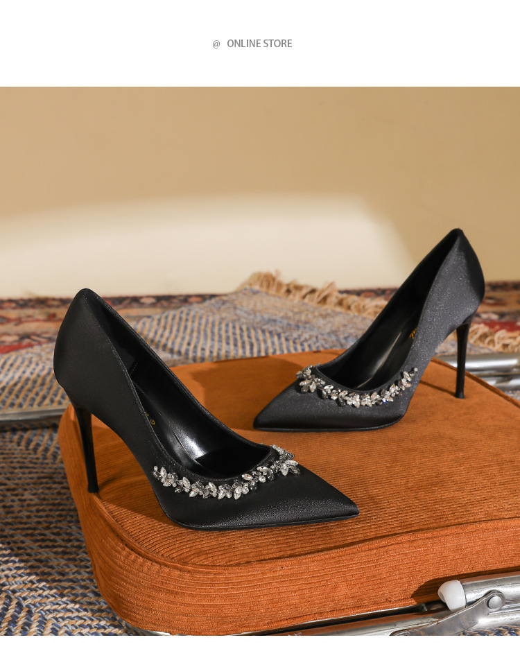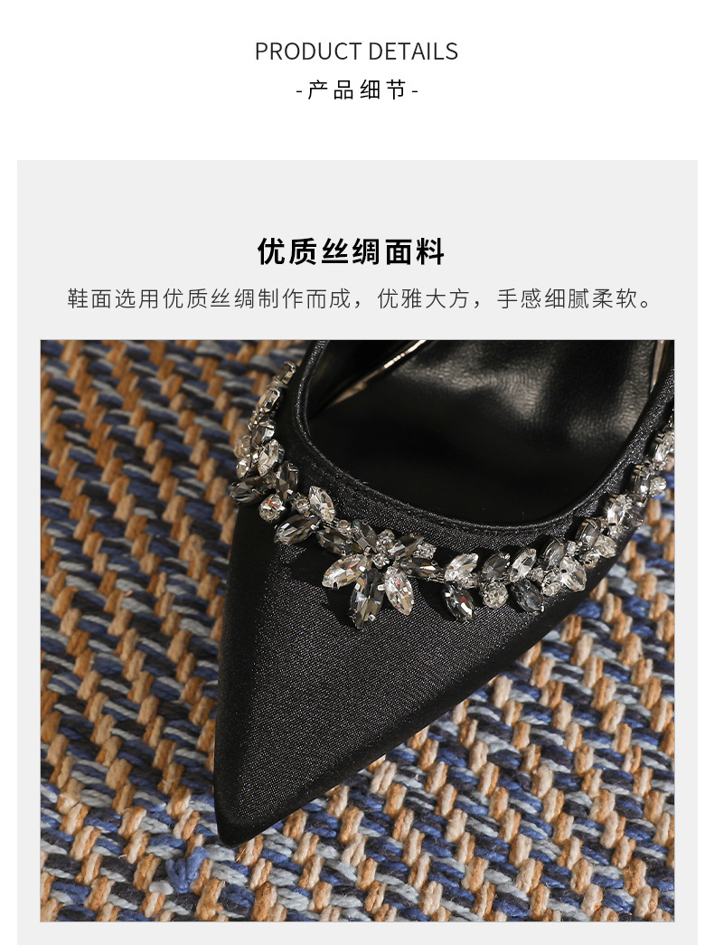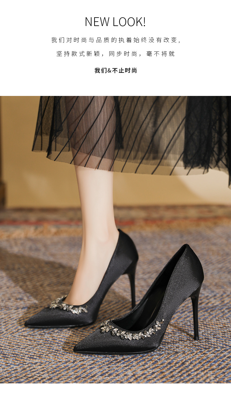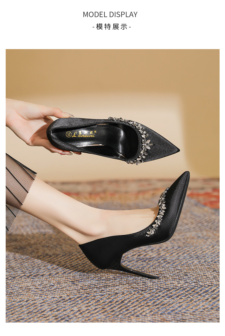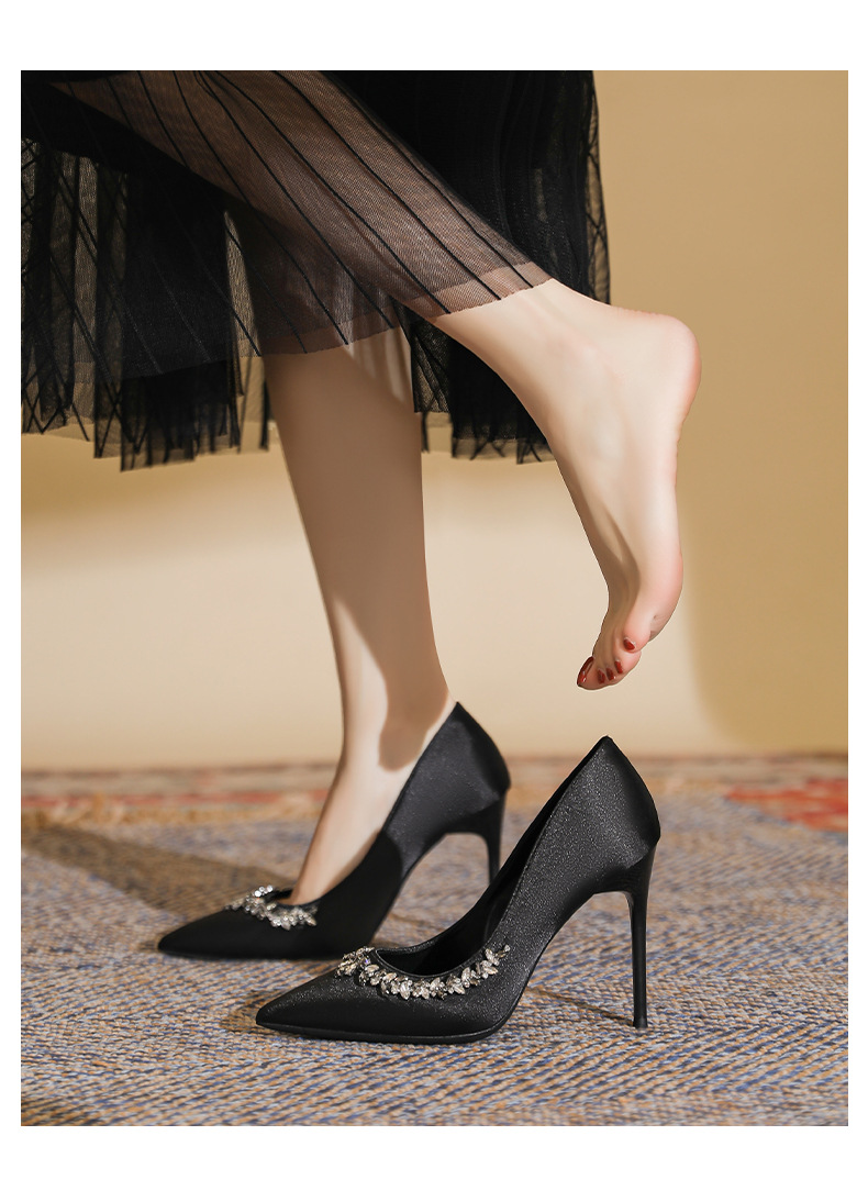 스몰 사이즈 313233 고급 모조 다이아몬드 뾰족한 굽 높은 신발 여성 다재다능한 프랑스 기질 사교계 블랙 플러스 사이즈 41-43스토어 가기
